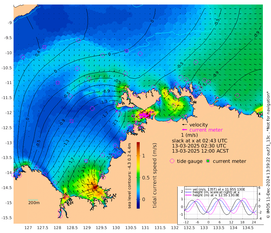 167cm/s -101T +4cm/s rms + 6cm/s 51T. Darwin_C1 52m 140cm/s -90T +4cm/s rms + 7cm/s -161T. Darwin_CW1 22m 101cm/s -106T +4cm/s rms + 8cm/s 61T. Darwin_CW2 34m 82cm/s -134T +3cm/s rms + 9cm/s 98T. Darwin_CW3 22m 156cm/s -91T +5cm/s rms + 7cm/s 88T. Darwin_C3 56m 89cm/s -115T +2cm/s rms + 9cm/s -126T. Darwin_CTbW 22m 4cm/s -94T +9cm/s rms + 2cm/s -110T. NWSLYN 196m 43cm/s -97T +1cm/s rms + 1cm/s -47T. DARBGF 30m 8cm/s 162T +7cm/s rms + 2cm/s -137T. ITFTIS 464m 4cm/s 148T +9cm/s rms + 1cm/s 74T. ITFMHB 146m 20cm/s -6T +4cm/s rms + 1cm/s -134T. ITFJBG 61m 5cm/s -3T +6cm/s rms + 4cm/s 121T. ITFFTB 108m 36cm/s -69T +4cm/s rms + 3cm/s 80T. NRSDAR 19m 62cm Carronade Island 64cm Guy Point 59cm Napier Broome Bay -54cm Lesueur Island -152cm Reveley Island -53cm Rocky Island -219cm Cape Domett -202cm Lacrosse Island -190cm Adolphus Island -127cm Pender Point -91cm Wyndham -47cm The Boxers -78cm Unnamed Shoal 27cm Loxton Shoal -248cm Pelican Island -31cm Calder Shoal 7cm Evans Shoal -229cm Quoin Island -257cm Port Keats -264cm Jones Point -190cm Catfish Island -209cm Cape Scott Offshore -256cm Cape Ford -239cm Anson Bay -17cm Goodrich Bank -211cm Peron Island North -209cm Point Jenny -208cm Native Point -226cm Fish Reef -237cm Tapa Bay -125cm Point Fawcett (Offshore) -249cm Burge Point -225cm Munkunuwa -179cm Beagle A -241cm Parsons Bank -233cm Fenton Patches -3cm Lynedoch Bank -233cm Hancox Shoal Area -245cm Nightcliff -269cm Darwin -251cm Charles Point Patches -186cm Glyde Point -131cm Chambers Bay -122cm Point Stuart -154cm Cape Hotham -109cm Christine Reef -125cm West Alligator Head -102cm East Field Island -118cm Two Hills Bay -111cm Newby Shoal -121cm Camp Point -234cm Medina Inlet South -100cm South Barlow Point -69cm St. Asaph Bay -24cm Cape Van Dieman -32cm Snake Bay -27cm Cache Point 52cm Echo Shoal -41cm Point Jahleel (Off) -86cm Cape Don -52cm Port Essington -46cm Smith Point - West -41cm NW Peacock Island -30cm North Of Jones Shoal -12cm Peacock Island -64cm Point David -48cm D'urville Point -38cm Money Shoal -64cm Copeland Island -83cm Cape Cockburn -62cm One Tree Point -79cm Hogmany Shoal -61cm New Year Island - West -65cm Grant Island -79cm Aurari Bay -88cm Cuthbert Point -82cm North Goulburn Island -105cm Paxie Shoal -107cm Entrance Island -117cm Yabooma Island