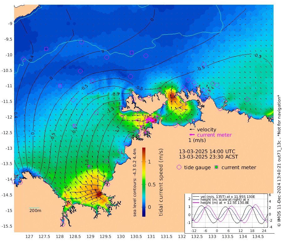 157cm/s -102T +4cm/s rms + 6cm/s 51T. Darwin_C1 52m 124cm/s -89T +4cm/s rms + 7cm/s -161T. Darwin_CW1 22m 95cm/s -107T +4cm/s rms + 8cm/s 61T. Darwin_CW2 34m 59cm/s -131T +3cm/s rms + 9cm/s 98T. Darwin_CW3 22m 120cm/s -91T +5cm/s rms + 7cm/s 88T. Darwin_C3 56m 90cm/s -115T +2cm/s rms + 9cm/s -126T. Darwin_CTbW 22m 2cm/s 178T +9cm/s rms + 2cm/s -110T. NWSLYN 196m 68cm/s -90T +1cm/s rms + 1cm/s -47T. DARBGF 30m 1cm/s -9T +7cm/s rms + 2cm/s -137T. ITFTIS 464m 12cm/s 0T +9cm/s rms + 1cm/s 74T. ITFMHB 146m 41cm/s -21T +4cm/s rms + 1cm/s -134T. ITFJBG 61m 29cm/s -37T +6cm/s rms + 4cm/s 121T. ITFFTB 108m 62cm/s -62T +4cm/s rms + 3cm/s 80T. NRSDAR 19m 105cm Carronade Island 114cm Guy Point 115cm Napier Broome Bay 9cm Lesueur Island -63cm Reveley Island -25cm Rocky Island -91cm Cape Domett -90cm Lacrosse Island -58cm Adolphus Island 60cm Pender Point 97cm Wyndham -32cm The Boxers -56cm Unnamed Shoal 27cm Loxton Shoal -129cm Pelican Island -30cm Calder Shoal -1cm Evans Shoal -53cm Quoin Island -175cm Port Keats -170cm Jones Point -32cm Catfish Island -163cm Cape Scott Offshore -213cm Cape Ford -192cm Anson Bay -25cm Goodrich Bank -178cm Peron Island North -182cm Point Jenny -180cm Native Point -200cm Fish Reef -195cm Tapa Bay -122cm Point Fawcett (Offshore) -205cm Burge Point -196cm Munkunuwa -173cm Beagle A -198cm Parsons Bank -204cm Fenton Patches -6cm Lynedoch Bank -183cm Hancox Shoal Area -205cm Nightcliff -208cm Darwin -199cm Charles Point Patches -120cm Glyde Point -44cm Chambers Bay -28cm Point Stuart -88cm Cape Hotham -37cm Christine Reef -22cm West Alligator Head 11cm East Field Island -50cm Two Hills Bay -106cm Newby Shoal -46cm Camp Point -197cm Medina Inlet South -107cm South Barlow Point -79cm St. Asaph Bay -33cm Cape Van Dieman -37cm Snake Bay -34cm Cache Point 47cm Echo Shoal -40cm Point Jahleel (Off) -62cm Cape Don -47cm Port Essington -51cm Smith Point - West -42cm NW Peacock Island -35cm North Of Jones Shoal -14cm Peacock Island -43cm Point David -51cm D'urville Point -31cm Money Shoal -45cm Copeland Island -63cm Cape Cockburn -45cm One Tree Point -40cm Hogmany Shoal -41cm New Year Island - West -42cm Grant Island -56cm Aurari Bay -49cm Cuthbert Point -52cm North Goulburn Island -38cm Paxie Shoal -44cm Entrance Island -42cm Yabooma Island