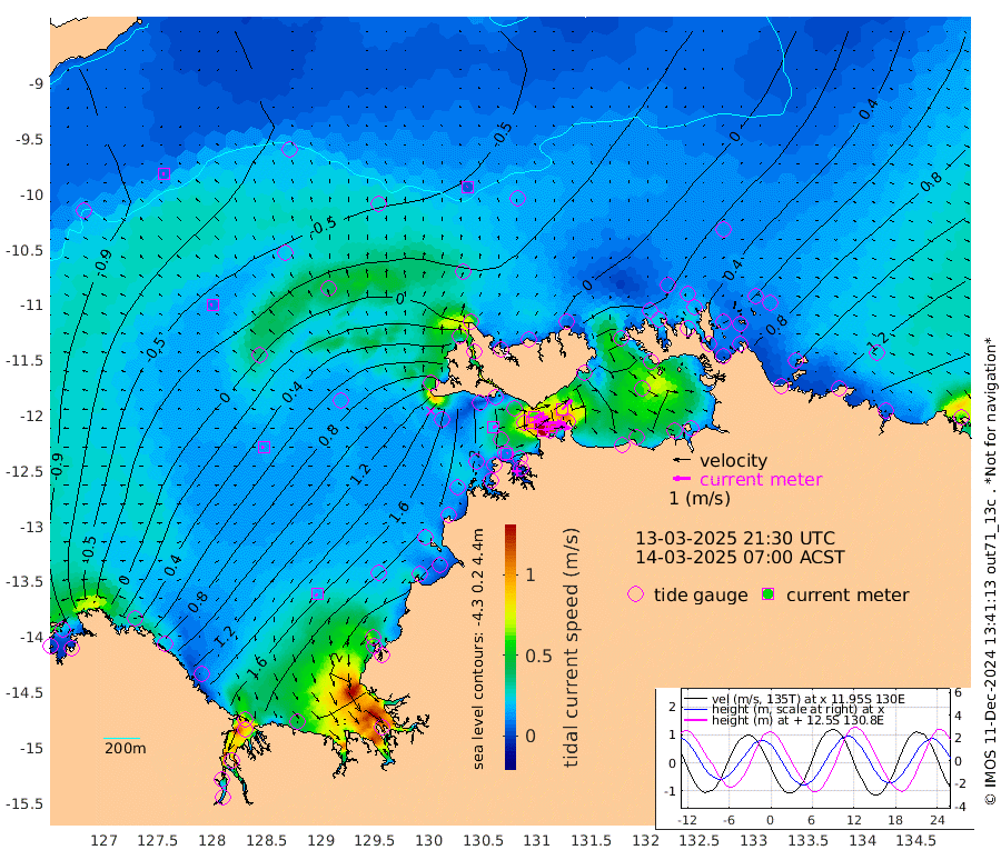 138cm/s 79T +4cm/s rms + 6cm/s 51T. Darwin_C1 52m 112cm/s 93T +4cm/s rms + 7cm/s -161T. Darwin_CW1 22m 95cm/s 71T +4cm/s rms + 8cm/s 61T. Darwin_CW2 34m 80cm/s 44T +3cm/s rms + 9cm/s 98T. Darwin_CW3 22m 147cm/s 89T +5cm/s rms + 7cm/s 88T. Darwin_C3 56m 62cm/s 65T +2cm/s rms + 9cm/s -126T. Darwin_CTbW 22m 4cm/s 7T +9cm/s rms + 2cm/s -110T. NWSLYN 196m 20cm/s 71T +1cm/s rms + 1cm/s -47T. DARBGF 30m 8cm/s -83T +7cm/s rms + 2cm/s -137T. ITFTIS 464m 9cm/s -71T +9cm/s rms + 1cm/s 74T. ITFMHB 146m 16cm/s -152T +4cm/s rms + 1cm/s -134T. ITFJBG 61m 14cm/s -86T +6cm/s rms + 4cm/s 121T. ITFFTB 108m 9cm/s 79T +4cm/s rms + 3cm/s 80T. NRSDAR 19m -107cm Carronade Island -108cm Guy Point -118cm Napier Broome Bay 11cm Lesueur Island 130cm Reveley Island 15cm Rocky Island 206cm Cape Domett 187cm Lacrosse Island 204cm Adolphus Island 133cm Pender Point 109cm Wyndham -17cm The Boxers 9cm Unnamed Shoal -81cm Loxton Shoal 240cm Pelican Island -29cm Calder Shoal -52cm Evans Shoal 263cm Quoin Island 232cm Port Keats 237cm Jones Point 218cm Catfish Island 167cm Cape Scott Offshore 186cm Cape Ford 195cm Anson Bay -31cm Goodrich Bank 172cm Peron Island North 156cm Point Jenny 152cm Native Point 181cm Fish Reef 186cm Tapa Bay 68cm Point Fawcett (Offshore) 206cm Burge Point 179cm Munkunuwa 126cm Beagle A 209cm Parsons Bank 190cm Fenton Patches -40cm Lynedoch Bank 205cm Hancox Shoal Area 210cm Nightcliff 233cm Darwin 206cm Charles Point Patches 169cm Glyde Point 140cm Chambers Bay 139cm Point Stuart 153cm Cape Hotham 116cm Christine Reef 148cm West Alligator Head 134cm East Field Island 122cm Two Hills Bay 49cm Newby Shoal 116cm Camp Point 187cm Medina Inlet South 48cm South Barlow Point 16cm St. Asaph Bay -25cm Cape Van Dieman -17cm Snake Bay -18cm Cache Point -99cm Echo Shoal 4cm Point Jahleel (Off) 61cm Cape Don 21cm Port Essington 17cm Smith Point - West 15cm NW Peacock Island 0cm North Of Jones Shoal 3cm Peacock Island 50cm Point David 23cm D'urville Point 15cm Money Shoal 55cm Copeland Island 73cm Cape Cockburn 47cm One Tree Point 67cm Hogmany Shoal 44cm New Year Island - West 50cm Grant Island 79cm Aurari Bay 95cm Cuthbert Point 78cm North Goulburn Island 111cm Paxie Shoal 129cm Entrance Island 166cm Yabooma Island