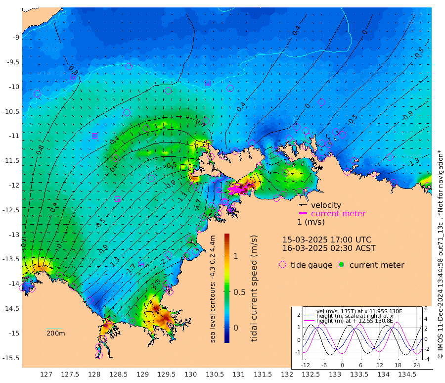 166cm/s -101T +4cm/s rms + 6cm/s 51T. Darwin_C1 52m 149cm/s -92T +4cm/s rms + 7cm/s -161T. Darwin_CW1 22m 89cm/s -106T +4cm/s rms + 8cm/s 61T. Darwin_CW2 34m 96cm/s -136T +3cm/s rms + 9cm/s 98T. Darwin_CW3 22m 164cm/s -91T +5cm/s rms + 7cm/s 88T. Darwin_C3 56m 82cm/s -116T +2cm/s rms + 9cm/s -126T. Darwin_CTbW 22m 12cm/s 168T +9cm/s rms + 2cm/s -110T. NWSLYN 196m 9cm/s 176T +1cm/s rms + 1cm/s -47T. DARBGF 30m 10cm/s 85T +7cm/s rms + 2cm/s -137T. ITFTIS 464m 13cm/s 114T +9cm/s rms + 1cm/s 74T. ITFMHB 146m 18cm/s 85T +4cm/s rms + 1cm/s -134T. ITFJBG 61m 29cm/s 111T +6cm/s rms + 4cm/s 121T. ITFFTB 108m 16cm/s 163T +4cm/s rms + 3cm/s 80T. NRSDAR 19m 66cm Carronade Island 69cm Guy Point 69cm Napier Broome Bay -56cm Lesueur Island -174cm Reveley Island -93cm Rocky Island -287cm Cape Domett -255cm Lacrosse Island -318cm Adolphus Island -256cm Pender Point -247cm Wyndham 8cm The Boxers -3cm Unnamed Shoal 70cm Loxton Shoal -304cm Pelican Island 25cm Calder Shoal 51cm Evans Shoal -397cm Quoin Island -278cm Port Keats -270cm Jones Point -334cm Catfish Island -178cm Cape Scott Offshore -161cm Cape Ford -199cm Anson Bay 37cm Goodrich Bank -180cm Peron Island North -155cm Point Jenny -151cm Native Point -185cm Fish Reef -186cm Tapa Bay -57cm Point Fawcett (Offshore) -217cm Burge Point -176cm Munkunuwa -129cm Beagle A -218cm Parsons Bank -204cm Fenton Patches 39cm Lynedoch Bank -216cm Hancox Shoal Area -224cm Nightcliff -252cm Darwin -214cm Charles Point Patches -200cm Glyde Point -187cm Chambers Bay -194cm Point Stuart -185cm Cape Hotham -166cm Christine Reef -212cm West Alligator Head -211cm East Field Island -162cm Two Hills Bay -71cm Newby Shoal -152cm Camp Point -194cm Medina Inlet South -40cm South Barlow Point -6cm St. Asaph Bay 36cm Cape Van Dieman 24cm Snake Bay 25cm Cache Point 89cm Echo Shoal -3cm Point Jahleel (Off) -69cm Cape Don -15cm Port Essington -13cm Smith Point - West -11cm NW Peacock Island 5cm North Of Jones Shoal -1cm Peacock Island -38cm Point David -17cm D'urville Point -7cm Money Shoal -43cm Copeland Island -65cm Cape Cockburn -40cm One Tree Point -50cm Hogmany Shoal -39cm New Year Island - West -45cm Grant Island -74cm Aurari Bay -96cm Cuthbert Point -72cm North Goulburn Island -106cm Paxie Shoal -129cm Entrance Island -164cm Yabooma Island