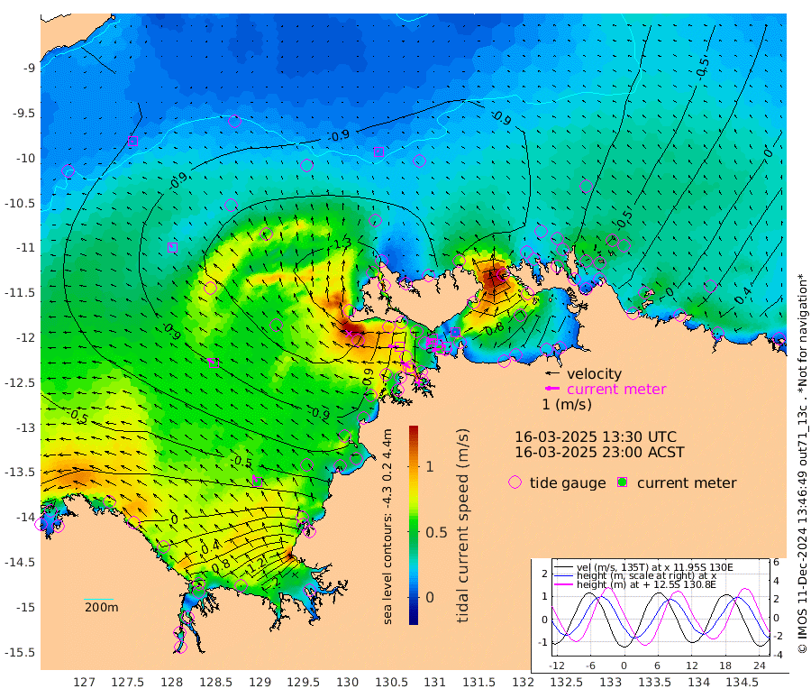 56cm/s -103T +4cm/s rms + 6cm/s 51T. Darwin_C1 52m 27cm/s -86T +4cm/s rms + 7cm/s -161T. Darwin_CW1 22m 40cm/s -110T +4cm/s rms + 8cm/s 61T. Darwin_CW2 34m 8cm/s -25T +3cm/s rms + 9cm/s 98T. Darwin_CW3 22m 18cm/s -104T +5cm/s rms + 7cm/s 88T. Darwin_C3 56m 42cm/s -117T +2cm/s rms + 9cm/s -126T. Darwin_CTbW 22m 11cm/s -37T +9cm/s rms + 2cm/s -110T. NWSLYN 196m 79cm/s -87T +1cm/s rms + 1cm/s -47T. DARBGF 30m 10cm/s -108T +7cm/s rms + 2cm/s -137T. ITFTIS 464m 22cm/s -34T +9cm/s rms + 1cm/s 74T. ITFMHB 146m 54cm/s -33T +4cm/s rms + 1cm/s -134T. ITFJBG 61m 56cm/s -54T +6cm/s rms + 4cm/s 121T. ITFFTB 108m 83cm/s -55T +4cm/s rms + 3cm/s 80T. NRSDAR 19m 31cm Carronade Island 33cm Guy Point 41cm Napier Broome Bay 13cm Lesueur Island 40cm Reveley Island 54cm Rocky Island 105cm Cape Domett 77cm Lacrosse Island 174cm Adolphus Island 265cm Pender Point 302cm Wyndham -83cm The Boxers -101cm Unnamed Shoal -76cm Loxton Shoal 83cm Pelican Island -104cm Calder Shoal -84cm Evans Shoal 249cm Quoin Island -3cm Port Keats 12cm Jones Point 289cm Catfish Island -76cm Cape Scott Offshore -154cm Cape Ford -93cm Anson Bay -98cm Goodrich Bank -90cm Peron Island North -112cm Point Jenny -115cm Native Point -101cm Fish Reef -106cm Tapa Bay -132cm Point Fawcett (Offshore) -89cm Burge Point -113cm Munkunuwa -123cm Beagle A -77cm Parsons Bank -94cm Fenton Patches -77cm Lynedoch Bank -63cm Hancox Shoal Area -89cm Nightcliff -64cm Darwin -89cm Charles Point Patches 13cm Glyde Point 106cm Chambers Bay 140cm Point Stuart 42cm Cape Hotham 91cm Christine Reef 165cm West Alligator Head 208cm East Field Island 75cm Two Hills Bay -108cm Newby Shoal 62cm Camp Point -100cm Medina Inlet South -131cm South Barlow Point -129cm St. Asaph Bay -107cm Cape Van Dieman -106cm Snake Bay -96cm Cache Point -63cm Echo Shoal -77cm Point Jahleel (Off) -35cm Cape Don -68cm Port Essington -75cm Smith Point - West -67cm NW Peacock Island -79cm North Of Jones Shoal -27cm Peacock Island -41cm Point David -70cm D'urville Point -57cm Money Shoal -36cm Copeland Island -44cm Cape Cockburn -42cm One Tree Point -29cm Hogmany Shoal -40cm New Year Island - West -35cm Grant Island -13cm Aurari Bay 20cm Cuthbert Point -15cm North Goulburn Island 35cm Paxie Shoal 58cm Entrance Island 99cm Yabooma Island