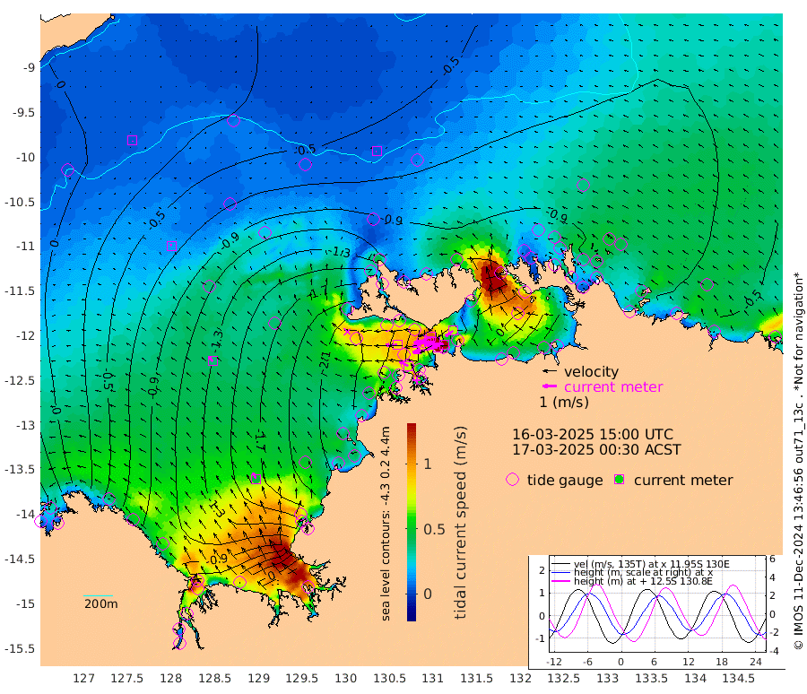183cm/s -102T +4cm/s rms + 6cm/s 51T. Darwin_C1 52m 141cm/s -90T +4cm/s rms + 7cm/s -161T. Darwin_CW1 22m 124cm/s -108T +4cm/s rms + 8cm/s 61T. Darwin_CW2 34m 68cm/s -127T +3cm/s rms + 9cm/s 98T. Darwin_CW3 22m 152cm/s -92T +5cm/s rms + 7cm/s 88T. Darwin_C3 56m 109cm/s -115T +2cm/s rms + 9cm/s -126T. Darwin_CTbW 22m 5cm/s -81T +9cm/s rms + 2cm/s -110T. NWSLYN 196m 84cm/s -91T +1cm/s rms + 1cm/s -47T. DARBGF 30m 4cm/s -139T +7cm/s rms + 2cm/s -137T. ITFTIS 464m 14cm/s -13T +9cm/s rms + 1cm/s 74T. ITFMHB 146m 48cm/s -22T +4cm/s rms + 1cm/s -134T. ITFJBG 61m 36cm/s -44T +6cm/s rms + 4cm/s 121T. ITFFTB 108m 71cm/s -62T +4cm/s rms + 3cm/s 80T. NRSDAR 19m 89cm Carronade Island 91cm Guy Point 97cm Napier Broome Bay -22cm Lesueur Island -87cm Reveley Island -16cm Rocky Island -105cm Cape Domett -107cm Lacrosse Island -57cm Adolphus Island 76cm Pender Point 124cm Wyndham -78cm The Boxers -107cm Unnamed Shoal -24cm Loxton Shoal -143cm Pelican Island -84cm Calder Shoal -45cm Evans Shoal -43cm Quoin Island -207cm Port Keats -188cm Jones Point 45cm Catfish Island -209cm Cape Scott Offshore -263cm Cape Ford -243cm Anson Bay -72cm Goodrich Bank -222cm Peron Island North -227cm Point Jenny -228cm Native Point -236cm Fish Reef -246cm Tapa Bay -173cm Point Fawcett (Offshore) -247cm Burge Point -245cm Munkunuwa -215cm Beagle A -239cm Parsons Bank -242cm Fenton Patches -49cm Lynedoch Bank -225cm Hancox Shoal Area -255cm Nightcliff -252cm Darwin -250cm Charles Point Patches -134cm Glyde Point -29cm Chambers Bay 2cm Point Stuart -90cm Cape Hotham -27cm Christine Reef 15cm West Alligator Head 61cm East Field Island -41cm Two Hills Bay -155cm Newby Shoal -48cm Camp Point -245cm Medina Inlet South -162cm South Barlow Point -133cm St. Asaph Bay -81cm Cape Van Dieman -90cm Snake Bay -77cm Cache Point 6cm Echo Shoal -79cm Point Jahleel (Off) -86cm Cape Don -80cm Port Essington -85cm Smith Point - West -75cm NW Peacock Island -75cm North Of Jones Shoal -27cm Peacock Island -72cm Point David -84cm D'urville Point -64cm Money Shoal -70cm Copeland Island -92cm Cape Cockburn -74cm One Tree Point -69cm Hogmany Shoal -71cm New Year Island - West -70cm Grant Island -71cm Aurari Bay -53cm Cuthbert Point -71cm North Goulburn Island -49cm Paxie Shoal -40cm Entrance Island -24cm Yabooma Island