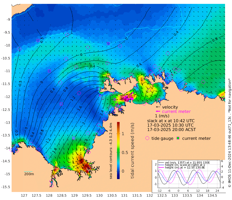 192cm/s 78T +4cm/s rms + 6cm/s 51T. Darwin_C1 52m 150cm/s 91T +4cm/s rms + 7cm/s -161T. Darwin_CW1 22m 122cm/s 74T +4cm/s rms + 8cm/s 61T. Darwin_CW2 34m 108cm/s 44T +3cm/s rms + 9cm/s 98T. Darwin_CW3 22m 191cm/s 89T +5cm/s rms + 7cm/s 88T. Darwin_C3 56m 97cm/s 66T +2cm/s rms + 9cm/s -126T. Darwin_CTbW 22m 7cm/s 1T +9cm/s rms + 2cm/s -110T. NWSLYN 196m 41cm/s 81T +1cm/s rms + 1cm/s -47T. DARBGF 30m 6cm/s -53T +7cm/s rms + 2cm/s -137T. ITFTIS 464m 6cm/s -64T +9cm/s rms + 1cm/s 74T. ITFMHB 146m 20cm/s -161T +4cm/s rms + 1cm/s -134T. ITFJBG 61m 8cm/s -115T +6cm/s rms + 4cm/s 121T. ITFFTB 108m 37cm/s 104T +4cm/s rms + 3cm/s 80T. NRSDAR 19m -107cm Carronade Island -112cm Guy Point -104cm Napier Broome Bay 24cm Lesueur Island 136cm Reveley Island 81cm Rocky Island 220cm Cape Domett 192cm Lacrosse Island 219cm Adolphus Island 118cm Pender Point 82cm Wyndham 30cm The Boxers 57cm Unnamed Shoal -37cm Loxton Shoal 249cm Pelican Island 17cm Calder Shoal -19cm Evans Shoal 256cm Quoin Island 268cm Port Keats 254cm Jones Point 152cm Catfish Island 202cm Cape Scott Offshore 200cm Cape Ford 236cm Anson Bay 9cm Goodrich Bank 208cm Peron Island North 200cm Point Jenny 200cm Native Point 219cm Fish Reef 230cm Tapa Bay 107cm Point Fawcett (Offshore) 250cm Burge Point 225cm Munkunuwa 175cm Beagle A 252cm Parsons Bank 238cm Fenton Patches -1cm Lynedoch Bank 240cm Hancox Shoal Area 258cm Nightcliff 279cm Darwin 252cm Charles Point Patches 184cm Glyde Point 119cm Chambers Bay 104cm Point Stuart 146cm Cape Hotham 107cm Christine Reef 106cm West Alligator Head 81cm East Field Island 109cm Two Hills Bay 114cm Newby Shoal 111cm Camp Point 236cm Medina Inlet South 102cm South Barlow Point 60cm St. Asaph Bay 15cm Cape Van Dieman 29cm Snake Bay 15cm Cache Point -71cm Echo Shoal 34cm Point Jahleel (Off) 82cm Cape Don 48cm Port Essington 47cm Smith Point - West 43cm NW Peacock Island 28cm North Of Jones Shoal 12cm Peacock Island 62cm Point David 52cm D'urville Point 38cm Money Shoal 64cm Copeland Island 86cm Cape Cockburn 63cm One Tree Point 63cm Hogmany Shoal 62cm New Year Island - West 66cm Grant Island 84cm Aurari Bay 93cm Cuthbert Point 83cm North Goulburn Island 96cm Paxie Shoal 107cm Entrance Island 116cm Yabooma Island