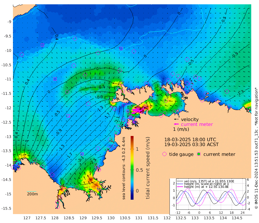 199cm/s -101T +4cm/s rms + 6cm/s 51T. Darwin_C1 52m 160cm/s -91T +4cm/s rms + 7cm/s -161T. Darwin_CW1 22m 104cm/s -106T +4cm/s rms + 8cm/s 61T. Darwin_CW2 34m 99cm/s -136T +3cm/s rms + 9cm/s 98T. Darwin_CW3 22m 176cm/s -91T +5cm/s rms + 7cm/s 88T. Darwin_C3 56m 115cm/s -115T +2cm/s rms + 9cm/s -126T. Darwin_CTbW 22m 8cm/s -171T +9cm/s rms + 2cm/s -110T. NWSLYN 196m 16cm/s -119T +1cm/s rms + 1cm/s -47T. DARBGF 30m 8cm/s 101T +7cm/s rms + 2cm/s -137T. ITFTIS 464m 10cm/s 116T +9cm/s rms + 1cm/s 74T. ITFMHB 146m 14cm/s 80T +4cm/s rms + 1cm/s -134T. ITFJBG 61m 22cm/s 110T +6cm/s rms + 4cm/s 121T. ITFFTB 108m 11cm/s -144T +4cm/s rms + 3cm/s 80T. NRSDAR 19m 38cm Carronade Island 35cm Guy Point 37cm Napier Broome Bay -87cm Lesueur Island -188cm Reveley Island -82cm Rocky Island -286cm Cape Domett -261cm Lacrosse Island -308cm Adolphus Island -245cm Pender Point -236cm Wyndham -27cm The Boxers -48cm Unnamed Shoal 32cm Loxton Shoal -305cm Pelican Island -11cm Calder Shoal 19cm Evans Shoal -385cm Quoin Island -283cm Port Keats -267cm Jones Point -318cm Catfish Island -204cm Cape Scott Offshore -147cm Cape Ford -226cm Anson Bay 4cm Goodrich Bank -198cm Peron Island North -175cm Point Jenny -173cm Native Point -193cm Fish Reef -209cm Tapa Bay -86cm Point Fawcett (Offshore) -223cm Burge Point -190cm Munkunuwa -144cm Beagle A -229cm Parsons Bank -212cm Fenton Patches 7cm Lynedoch Bank -234cm Hancox Shoal Area -245cm Nightcliff -264cm Darwin -232cm Charles Point Patches -204cm Glyde Point -182cm Chambers Bay -181cm Point Stuart -185cm Cape Hotham -164cm Christine Reef -195cm West Alligator Head -187cm East Field Island -161cm Two Hills Bay -97cm Newby Shoal -154cm Camp Point -210cm Medina Inlet South -71cm South Barlow Point -38cm St. Asaph Bay 2cm Cape Van Dieman -14cm Snake Bay -6cm Cache Point 55cm Echo Shoal -32cm Point Jahleel (Off) -88cm Cape Don -40cm Port Essington -41cm Smith Point - West -39cm NW Peacock Island -26cm North Of Jones Shoal -11cm Peacock Island -67cm Point David -45cm D'urville Point -34cm Money Shoal -70cm Copeland Island -93cm Cape Cockburn -67cm One Tree Point -85cm Hogmany Shoal -69cm New Year Island - West -74cm Grant Island -97cm Aurari Bay -111cm Cuthbert Point -95cm North Goulburn Island -127cm Paxie Shoal -138cm Entrance Island -163cm Yabooma Island