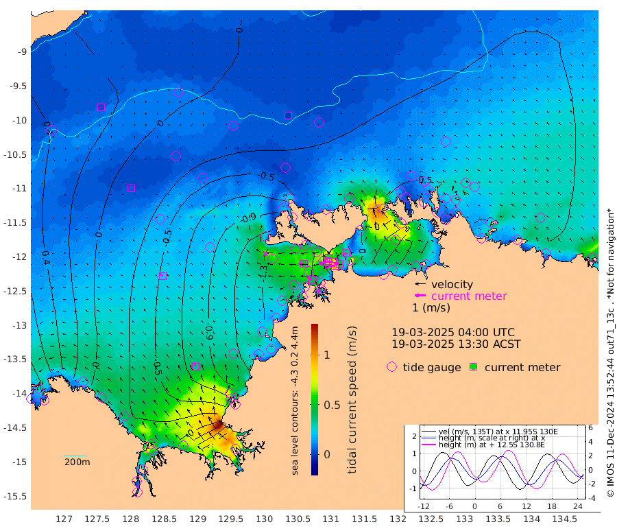 98cm/s -103T +4cm/s rms + 6cm/s 51T. Darwin_C1 52m 49cm/s -88T +4cm/s rms + 7cm/s -161T. Darwin_CW1 22m 82cm/s -110T +4cm/s rms + 8cm/s 61T. Darwin_CW2 34m 34cm/s -116T +3cm/s rms + 9cm/s 98T. Darwin_CW3 22m 86cm/s -93T +5cm/s rms + 7cm/s 88T. Darwin_C3 56m 58cm/s -117T +2cm/s rms + 9cm/s -126T. Darwin_CTbW 22m 1cm/s -14T +9cm/s rms + 2cm/s -110T. NWSLYN 196m 52cm/s -92T +1cm/s rms + 1cm/s -47T. DARBGF 30m 2cm/s -140T +7cm/s rms + 2cm/s -137T. ITFTIS 464m 5cm/s -4T +9cm/s rms + 1cm/s 74T. ITFMHB 146m 34cm/s -20T +4cm/s rms + 1cm/s -134T. ITFJBG 61m 23cm/s -39T +6cm/s rms + 4cm/s 121T. ITFFTB 108m 46cm/s -63T +4cm/s rms + 3cm/s 80T. NRSDAR 19m 138cm Carronade Island 141cm Guy Point 141cm Napier Broome Bay 70cm Lesueur Island -6cm Reveley Island -1cm Rocky Island -11cm Cape Domett 2cm Lacrosse Island 21cm Adolphus Island 116cm Pender Point 166cm Wyndham -10cm The Boxers -34cm Unnamed Shoal 21cm Loxton Shoal -42cm Pelican Island -15cm Calder Shoal 3cm Evans Shoal 52cm Quoin Island -95cm Port Keats -86cm Jones Point 181cm Catfish Island -92cm Cape Scott Offshore -148cm Cape Ford -121cm Anson Bay -24cm Goodrich Bank -104cm Peron Island North -119cm Point Jenny -122cm Native Point -118cm Fish Reef -132cm Tapa Bay -72cm Point Fawcett (Offshore) -137cm Burge Point -146cm Munkunuwa -106cm Beagle A -141cm Parsons Bank -129cm Fenton Patches -9cm Lynedoch Bank -122cm Hancox Shoal Area -135cm Nightcliff -139cm Darwin -134cm Charles Point Patches -50cm Glyde Point 33cm Chambers Bay 59cm Point Stuart -12cm Cape Hotham 27cm Christine Reef 74cm West Alligator Head 112cm East Field Island 23cm Two Hills Bay -57cm Newby Shoal 10cm Camp Point -133cm Medina Inlet South -85cm South Barlow Point -57cm St. Asaph Bay -31cm Cape Van Dieman -37cm Snake Bay -19cm Cache Point 51cm Echo Shoal -22cm Point Jahleel (Off) -27cm Cape Don -32cm Port Essington -34cm Smith Point - West -29cm NW Peacock Island -19cm North Of Jones Shoal -8cm Peacock Island -33cm Point David -37cm D'urville Point -23cm Money Shoal -32cm Copeland Island -37cm Cape Cockburn -29cm One Tree Point -22cm Hogmany Shoal -26cm New Year Island - West -30cm Grant Island -27cm Aurari Bay -22cm Cuthbert Point -29cm North Goulburn Island -14cm Paxie Shoal -19cm Entrance Island -5cm Yabooma Island