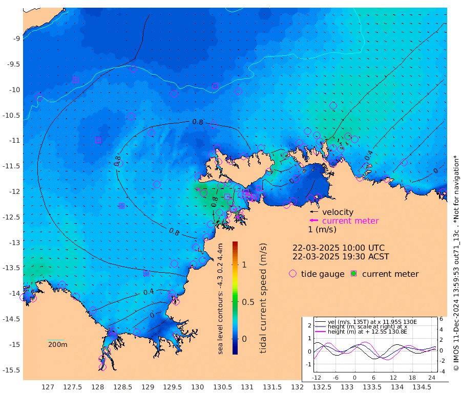 1cm/s 97T +4cm/s rms + 6cm/s 51T. Darwin_C1 52m 14cm/s 87T +4cm/s rms + 7cm/s -161T. Darwin_CW1 22m 19cm/s 77T +4cm/s rms + 8cm/s 61T. Darwin_CW2 34m 10cm/s -137T +3cm/s rms + 9cm/s 98T. Darwin_CW3 22m 30cm/s 88T +5cm/s rms + 7cm/s 88T. Darwin_C3 56m 3cm/s -107T +2cm/s rms + 9cm/s -126T. Darwin_CTbW 22m 6cm/s 111T +9cm/s rms + 2cm/s -110T. NWSLYN 196m 25cm/s 91T +1cm/s rms + 1cm/s -47T. DARBGF 30m 9cm/s 25T +7cm/s rms + 2cm/s -137T. ITFTIS 464m 8cm/s 44T +9cm/s rms + 1cm/s 74T. ITFMHB 146m 11cm/s 135T +4cm/s rms + 1cm/s -134T. ITFJBG 61m 12cm/s 95T +6cm/s rms + 4cm/s 121T. ITFFTB 108m 24cm/s 125T +4cm/s rms + 3cm/s 80T. NRSDAR 19m 9cm Carronade Island 9cm Guy Point 11cm Napier Broome Bay 39cm Lesueur Island 26cm Reveley Island 5cm Rocky Island 16cm Cape Domett 15cm Lacrosse Island -11cm Adolphus Island -37cm Pender Point -60cm Wyndham 71cm The Boxers 85cm Unnamed Shoal 66cm Loxton Shoal 17cm Pelican Island 77cm Calder Shoal 63cm Evans Shoal -46cm Quoin Island 49cm Port Keats 51cm Jones Point -133cm Catfish Island 58cm Cape Scott Offshore 175cm Cape Ford 64cm Anson Bay 74cm Goodrich Bank 75cm Peron Island North 74cm Point Jenny 78cm Native Point 76cm Fish Reef 79cm Tapa Bay 82cm Point Fawcett (Offshore) 82cm Burge Point 81cm Munkunuwa 79cm Beagle A 74cm Parsons Bank 75cm Fenton Patches 64cm Lynedoch Bank 61cm Hancox Shoal Area 59cm Nightcliff 78cm Darwin 89cm Charles Point Patches 34cm Glyde Point -23cm Chambers Bay -30cm Point Stuart 15cm Cape Hotham -19cm Christine Reef -42cm West Alligator Head -59cm East Field Island -3cm Two Hills Bay 83cm Newby Shoal 8cm Camp Point 81cm Medina Inlet South 87cm South Barlow Point 81cm St. Asaph Bay 77cm Cape Van Dieman 81cm Snake Bay 71cm Cache Point 49cm Echo Shoal 62cm Point Jahleel (Off) 44cm Cape Don 62cm Port Essington 58cm Smith Point - West 59cm NW Peacock Island 58cm North Of Jones Shoal 20cm Peacock Island 52cm Point David 58cm D'urville Point 57cm Money Shoal 46cm Copeland Island 59cm Cape Cockburn 50cm One Tree Point 60cm Hogmany Shoal 51cm New Year Island - West 52cm Grant Island 30cm Aurari Bay 23cm Cuthbert Point 39cm North Goulburn Island 18cm Paxie Shoal 9cm Entrance Island -18cm Yabooma Island