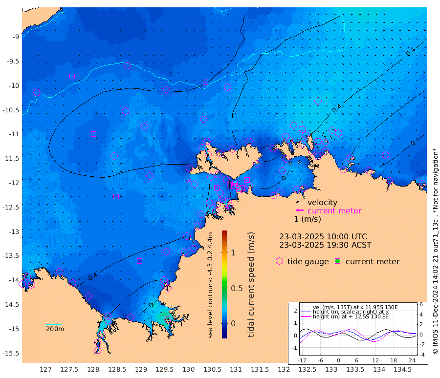 29cm/s -102T +4cm/s rms + 6cm/s 51T. Darwin_C1 52m 6cm/s 82T +4cm/s rms + 7cm/s -161T. Darwin_CW1 22m 5cm/s 91T +4cm/s rms + 8cm/s 61T. Darwin_CW2 34m 14cm/s -127T +3cm/s rms + 9cm/s 98T. Darwin_CW3 22m 20cm/s 89T +5cm/s rms + 7cm/s 88T. Darwin_C3 56m 23cm/s -115T +2cm/s rms + 9cm/s -126T. Darwin_CTbW 22m 6cm/s 109T +9cm/s rms + 2cm/s -110T. NWSLYN 196m 8cm/s 87T +1cm/s rms + 1cm/s -47T. DARBGF 30m 9cm/s 21T +7cm/s rms + 2cm/s -137T. ITFTIS 464m 10cm/s 30T +9cm/s rms + 1cm/s 74T. ITFMHB 146m 3cm/s 39T +4cm/s rms + 1cm/s -134T. ITFJBG 61m 8cm/s 44T +6cm/s rms + 4cm/s 121T. ITFFTB 108m 8cm/s 132T +4cm/s rms + 3cm/s 80T. NRSDAR 19m 33cm Carronade Island 34cm Guy Point 38cm Napier Broome Bay 49cm Lesueur Island 25cm Reveley Island 13cm Rocky Island 25cm Cape Domett 21cm Lacrosse Island 12cm Adolphus Island 12cm Pender Point 0cm Wyndham 63cm The Boxers 62cm Unnamed Shoal 66cm Loxton Shoal 19cm Pelican Island 65cm Calder Shoal 58cm Evans Shoal -6cm Quoin Island 32cm Port Keats 37cm Jones Point -62cm Catfish Island 35cm Cape Scott Offshore 133cm Cape Ford 35cm Anson Bay 61cm Goodrich Bank 46cm Peron Island North 41cm Point Jenny 44cm Native Point 46cm Fish Reef 44cm Tapa Bay 58cm Point Fawcett (Offshore) 47cm Burge Point 43cm Munkunuwa 47cm Beagle A 38cm Parsons Bank 40cm Fenton Patches 56cm Lynedoch Bank 31cm Hancox Shoal Area 24cm Nightcliff 48cm Darwin 60cm Charles Point Patches 23cm Glyde Point -10cm Chambers Bay -12cm Point Stuart 11cm Cape Hotham -11cm Christine Reef -20cm West Alligator Head -26cm East Field Island 2cm Two Hills Bay 60cm Newby Shoal 13cm Camp Point 49cm Medina Inlet South 60cm South Barlow Point 60cm St. Asaph Bay 61cm Cape Van Dieman 63cm Snake Bay 58cm Cache Point 56cm Echo Shoal 49cm Point Jahleel (Off) 33cm Cape Don 50cm Port Essington 43cm Smith Point - West 44cm NW Peacock Island 46cm North Of Jones Shoal 15cm Peacock Island 35cm Point David 42cm D'urville Point 46cm Money Shoal 31cm Copeland Island 40cm Cape Cockburn 37cm One Tree Point 44cm Hogmany Shoal 37cm New Year Island - West 36cm Grant Island 17cm Aurari Bay 13cm Cuthbert Point 25cm North Goulburn Island 11cm Paxie Shoal 0cm Entrance Island -20cm Yabooma Island