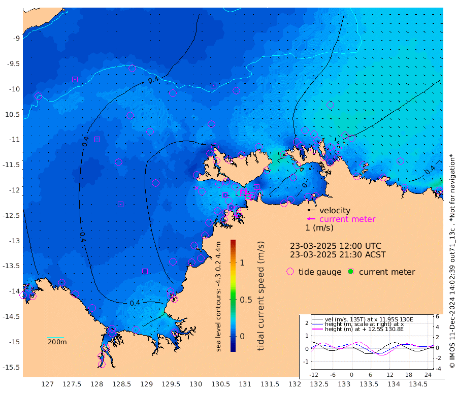29cm/s 80T +4cm/s rms + 6cm/s 51T. Darwin_C1 52m 15cm/s 80T +4cm/s rms + 7cm/s -161T. Darwin_CW1 22m 16cm/s 78T +4cm/s rms + 8cm/s 61T. Darwin_CW2 34m 6cm/s 70T +3cm/s rms + 9cm/s 98T. Darwin_CW3 22m 31cm/s 89T +5cm/s rms + 7cm/s 88T. Darwin_C3 56m 16cm/s 59T +2cm/s rms + 9cm/s -126T. Darwin_CTbW 22m 5cm/s 110T +9cm/s rms + 2cm/s -110T. NWSLYN 196m 8cm/s 83T +1cm/s rms + 1cm/s -47T. DARBGF 30m 6cm/s -1T +7cm/s rms + 2cm/s -137T. ITFTIS 464m 8cm/s 8T +9cm/s rms + 1cm/s 74T. ITFMHB 146m 1cm/s -91T +4cm/s rms + 1cm/s -134T. ITFJBG 61m 4cm/s -4T +6cm/s rms + 4cm/s 121T. ITFFTB 108m 4cm/s 100T +4cm/s rms + 3cm/s 80T. NRSDAR 19m -6cm Carronade Island -5cm Guy Point -4cm Napier Broome Bay 23cm Lesueur Island 29cm Reveley Island 4cm Rocky Island 29cm Cape Domett 21cm Lacrosse Island 20cm Adolphus Island 2cm Pender Point -12cm Wyndham 40cm The Boxers 58cm Unnamed Shoal 36cm Loxton Shoal 33cm Pelican Island 41cm Calder Shoal 37cm Evans Shoal 3cm Quoin Island 43cm Port Keats 46cm Jones Point -70cm Catfish Island 41cm Cape Scott Offshore 105cm Cape Ford 46cm Anson Bay 47cm Goodrich Bank 55cm Peron Island North 48cm Point Jenny 51cm Native Point 48cm Fish Reef 56cm Tapa Bay 47cm Point Fawcett (Offshore) 56cm Burge Point 55cm Munkunuwa 43cm Beagle A 64cm Parsons Bank 47cm Fenton Patches 42cm Lynedoch Bank 56cm Hancox Shoal Area 45cm Nightcliff 65cm Darwin 67cm Charles Point Patches 37cm Glyde Point 2cm Chambers Bay 2cm Point Stuart 27cm Cape Hotham 5cm Christine Reef -4cm West Alligator Head -18cm East Field Island 18cm Two Hills Bay 47cm Newby Shoal 20cm Camp Point 57cm Medina Inlet South 55cm South Barlow Point 45cm St. Asaph Bay 49cm Cape Van Dieman 56cm Snake Bay 46cm Cache Point 17cm Echo Shoal 44cm Point Jahleel (Off) 42cm Cape Don 52cm Port Essington 50cm Smith Point - West 54cm NW Peacock Island 44cm North Of Jones Shoal 16cm Peacock Island 63cm Point David 55cm D'urville Point 52cm Money Shoal 59cm Copeland Island 73cm Cape Cockburn 57cm One Tree Point 79cm Hogmany Shoal 59cm New Year Island - West 64cm Grant Island 51cm Aurari Bay 56cm Cuthbert Point 59cm North Goulburn Island 53cm Paxie Shoal 53cm Entrance Island 41cm Yabooma Island