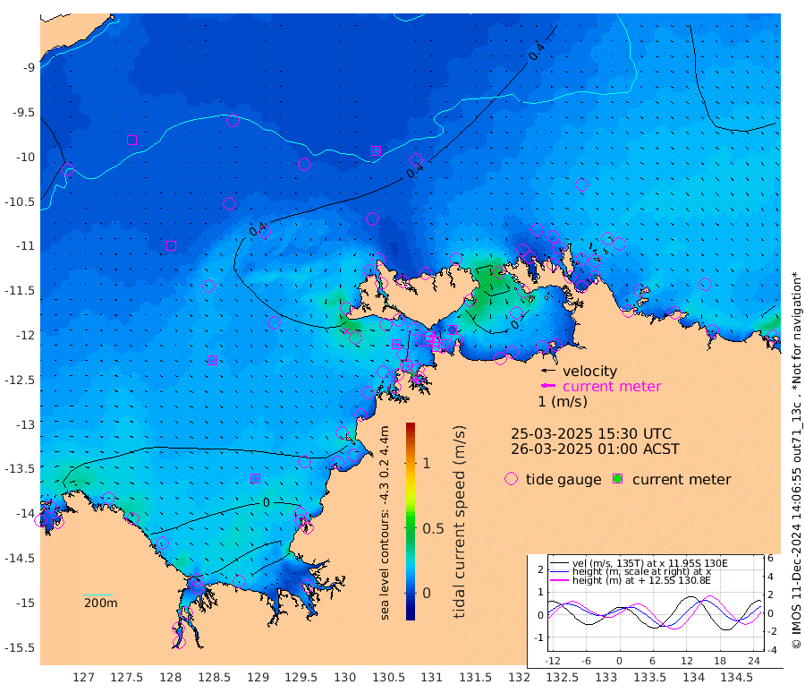 23cm/s 78T +4cm/s rms + 6cm/s 51T. Darwin_C1 52m 11cm/s -83T +4cm/s rms + 7cm/s -161T. Darwin_CW1 22m 10cm/s -112T +4cm/s rms + 8cm/s 61T. Darwin_CW2 34m 5cm/s -163T +3cm/s rms + 9cm/s 98T. Darwin_CW3 22m 24cm/s -92T +5cm/s rms + 7cm/s 88T. Darwin_C3 56m 23cm/s 60T +2cm/s rms + 9cm/s -126T. Darwin_CTbW 22m 7cm/s 149T +9cm/s rms + 2cm/s -110T. NWSLYN 196m 15cm/s 102T +1cm/s rms + 1cm/s -47T. DARBGF 30m 3cm/s 25T +7cm/s rms + 2cm/s -137T. ITFTIS 464m 3cm/s 83T +9cm/s rms + 1cm/s 74T. ITFMHB 146m 12cm/s 127T +4cm/s rms + 1cm/s -134T. ITFJBG 61m 13cm/s 122T +6cm/s rms + 4cm/s 121T. ITFFTB 108m 16cm/s 130T +4cm/s rms + 3cm/s 80T. NRSDAR 19m 4cm Carronade Island 3cm Guy Point 3cm Napier Broome Bay -7cm Lesueur Island -28cm Reveley Island -40cm Rocky Island -63cm Cape Domett -55cm Lacrosse Island -83cm Adolphus Island -96cm Pender Point -99cm Wyndham 22cm The Boxers 43cm Unnamed Shoal 16cm Loxton Shoal -50cm Pelican Island 20cm Calder Shoal 23cm Evans Shoal -119cm Quoin Island -38cm Port Keats -30cm Jones Point -81cm Catfish Island -6cm Cape Scott Offshore 14cm Cape Ford -1cm Anson Bay 33cm Goodrich Bank 4cm Peron Island North 13cm Point Jenny 13cm Native Point 1cm Fish Reef 8cm Tapa Bay 24cm Point Fawcett (Offshore) -6cm Burge Point 0cm Munkunuwa 10cm Beagle A 4cm Parsons Bank -4cm Fenton Patches 27cm Lynedoch Bank 2cm Hancox Shoal Area -6cm Nightcliff -10cm Darwin -1cm Charles Point Patches -10cm Glyde Point -23cm Chambers Bay -25cm Point Stuart -10cm Cape Hotham -17cm Christine Reef -33cm West Alligator Head -45cm East Field Island -8cm Two Hills Bay 16cm Newby Shoal -13cm Camp Point -3cm Medina Inlet South 26cm South Barlow Point 26cm St. Asaph Bay 36cm Cape Van Dieman 37cm Snake Bay 36cm Cache Point 11cm Echo Shoal 31cm Point Jahleel (Off) 24cm Cape Don 39cm Port Essington 43cm Smith Point - West 46cm NW Peacock Island 36cm North Of Jones Shoal 14cm Peacock Island 56cm Point David 49cm D'urville Point 44cm Money Shoal 55cm Copeland Island 65cm Cape Cockburn 48cm One Tree Point 73cm Hogmany Shoal 52cm New Year Island - West 55cm Grant Island 50cm Aurari Bay 56cm Cuthbert Point 54cm North Goulburn Island 47cm Paxie Shoal 49cm Entrance Island 42cm Yabooma Island
