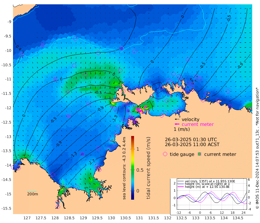 83cm/s -102T +4cm/s rms + 6cm/s 51T. Darwin_C1 52m 71cm/s -91T +4cm/s rms + 7cm/s -161T. Darwin_CW1 22m 46cm/s -106T +4cm/s rms + 8cm/s 61T. Darwin_CW2 34m 56cm/s -139T +3cm/s rms + 9cm/s 98T. Darwin_CW3 22m 75cm/s -90T +5cm/s rms + 7cm/s 88T. Darwin_C3 56m 45cm/s -116T +2cm/s rms + 9cm/s -126T. Darwin_CTbW 22m 4cm/s -118T +9cm/s rms + 2cm/s -110T. NWSLYN 196m 7cm/s -126T +1cm/s rms + 1cm/s -47T. DARBGF 30m 9cm/s 157T +7cm/s rms + 2cm/s -137T. ITFTIS 464m 13cm/s 170T +9cm/s rms + 1cm/s 74T. ITFMHB 146m 5cm/s 96T +4cm/s rms + 1cm/s -134T. ITFJBG 61m 12cm/s 136T +6cm/s rms + 4cm/s 121T. ITFFTB 108m 4cm/s -139T +4cm/s rms + 3cm/s 80T. NRSDAR 19m 5cm Carronade Island 4cm Guy Point 4cm Napier Broome Bay -67cm Lesueur Island -116cm Reveley Island -25cm Rocky Island -180cm Cape Domett -165cm Lacrosse Island -188cm Adolphus Island -163cm Pender Point -159cm Wyndham -23cm The Boxers -36cm Unnamed Shoal 31cm Loxton Shoal -198cm Pelican Island -2cm Calder Shoal 24cm Evans Shoal -222cm Quoin Island -182cm Port Keats -182cm Jones Point -207cm Catfish Island -129cm Cape Scott Offshore -124cm Cape Ford -148cm Anson Bay 5cm Goodrich Bank -114cm Peron Island North -123cm Point Jenny -122cm Native Point -125cm Fish Reef -143cm Tapa Bay -52cm Point Fawcett (Offshore) -150cm Burge Point -113cm Munkunuwa -102cm Beagle A -140cm Parsons Bank -147cm Fenton Patches 10cm Lynedoch Bank -152cm Hancox Shoal Area -158cm Nightcliff -167cm Darwin -155cm Charles Point Patches -137cm Glyde Point -134cm Chambers Bay -121cm Point Stuart -119cm Cape Hotham -117cm Christine Reef -128cm West Alligator Head -131cm East Field Island -100cm Two Hills Bay -64cm Newby Shoal -116cm Camp Point -130cm Medina Inlet South -36cm South Barlow Point -20cm St. Asaph Bay 4cm Cape Van Dieman 1cm Snake Bay -1cm Cache Point 38cm Echo Shoal -14cm Point Jahleel (Off) -55cm Cape Don -23cm Port Essington -19cm Smith Point - West -20cm NW Peacock Island -7cm North Of Jones Shoal -4cm Peacock Island -44cm Point David -23cm D'urville Point -27cm Money Shoal -46cm Copeland Island -54cm Cape Cockburn -39cm One Tree Point -59cm Hogmany Shoal -46cm New Year Island - West -46cm Grant Island -66cm Aurari Bay -81cm Cuthbert Point -64cm North Goulburn Island -100cm Paxie Shoal -108cm Entrance Island -131cm Yabooma Island
