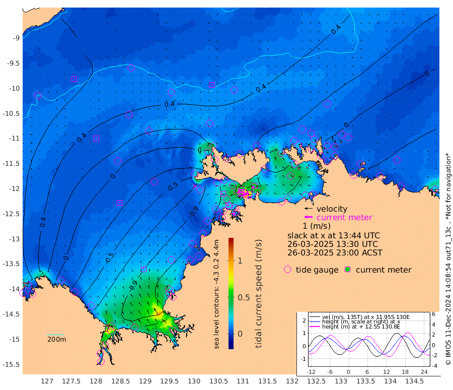 95cm/s -101T +4cm/s rms + 6cm/s 51T. Darwin_C1 52m 74cm/s -89T +4cm/s rms + 7cm/s -161T. Darwin_CW1 22m 57cm/s -108T +4cm/s rms + 8cm/s 61T. Darwin_CW2 34m 46cm/s -136T +3cm/s rms + 9cm/s 98T. Darwin_CW3 22m 73cm/s -91T +5cm/s rms + 7cm/s 88T. Darwin_C3 56m 54cm/s -115T +2cm/s rms + 9cm/s -126T. Darwin_CTbW 22m 8cm/s 151T +9cm/s rms + 2cm/s -110T. NWSLYN 196m 25cm/s -95T +1cm/s rms + 1cm/s -47T. DARBGF 30m 4cm/s 46T +7cm/s rms + 2cm/s -137T. ITFTIS 464m 7cm/s 33T +9cm/s rms + 1cm/s 74T. ITFMHB 146m 18cm/s -7T +4cm/s rms + 1cm/s -134T. ITFJBG 61m 8cm/s 2T +6cm/s rms + 4cm/s 121T. ITFFTB 108m 23cm/s -68T +4cm/s rms + 3cm/s 80T. NRSDAR 19m 68cm Carronade Island 72cm Guy Point 76cm Napier Broome Bay -3cm Lesueur Island -73cm Reveley Island -27cm Rocky Island -113cm Cape Domett -110cm Lacrosse Island -107cm Adolphus Island -47cm Pender Point -32cm Wyndham 15cm The Boxers -3cm Unnamed Shoal 61cm Loxton Shoal -131cm Pelican Island 20cm Calder Shoal 47cm Evans Shoal -125cm Quoin Island -143cm Port Keats -135cm Jones Point -79cm Catfish Island -103cm Cape Scott Offshore -91cm Cape Ford -121cm Anson Bay 31cm Goodrich Bank -96cm Peron Island North -106cm Point Jenny -105cm Native Point -113cm Fish Reef -121cm Tapa Bay -36cm Point Fawcett (Offshore) -133cm Burge Point -117cm Munkunuwa -96cm Beagle A -122cm Parsons Bank -136cm Fenton Patches 39cm Lynedoch Bank -123cm Hancox Shoal Area -147cm Nightcliff -135cm Darwin -114cm Charles Point Patches -92cm Glyde Point -69cm Chambers Bay -59cm Point Stuart -76cm Cape Hotham -63cm Christine Reef -65cm West Alligator Head -57cm East Field Island -50cm Two Hills Bay -42cm Newby Shoal -55cm Camp Point -114cm Medina Inlet South -25cm South Barlow Point -7cm St. Asaph Bay 28cm Cape Van Dieman 25cm Snake Bay 27cm Cache Point 67cm Echo Shoal 12cm Point Jahleel (Off) -14cm Cape Don 17cm Port Essington 13cm Smith Point - West 18cm NW Peacock Island 26cm North Of Jones Shoal 8cm Peacock Island 9cm Point David 14cm D'urville Point 24cm Money Shoal 6cm Copeland Island 7cm Cape Cockburn 11cm One Tree Point 19cm Hogmany Shoal 8cm New Year Island - West 9cm Grant Island -12cm Aurari Bay -7cm Cuthbert Point -3cm North Goulburn Island -14cm Paxie Shoal -27cm Entrance Island -40cm Yabooma Island