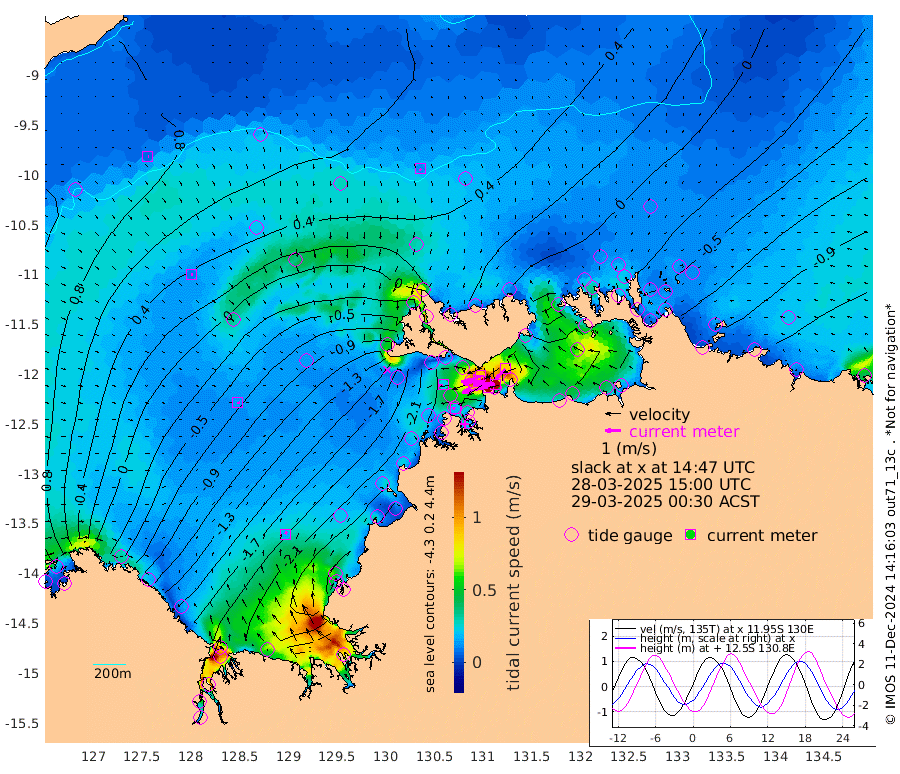 168cm/s -101T +4cm/s rms + 6cm/s 51T. Darwin_C1 52m 142cm/s -91T +4cm/s rms + 7cm/s -161T. Darwin_CW1 22m 99cm/s -107T +4cm/s rms + 8cm/s 61T. Darwin_CW2 34m 86cm/s -136T +3cm/s rms + 9cm/s 98T. Darwin_CW3 22m 153cm/s -91T +5cm/s rms + 7cm/s 88T. Darwin_C3 56m 91cm/s -115T +2cm/s rms + 9cm/s -126T. Darwin_CTbW 22m 12cm/s 165T +9cm/s rms + 2cm/s -110T. NWSLYN 196m 24cm/s -105T +1cm/s rms + 1cm/s -47T. DARBGF 30m 7cm/s 93T +7cm/s rms + 2cm/s -137T. ITFTIS 464m 8cm/s 103T +9cm/s rms + 1cm/s 74T. ITFMHB 146m 17cm/s 24T +4cm/s rms + 1cm/s -134T. ITFJBG 61m 13cm/s 90T +6cm/s rms + 4cm/s 121T. ITFFTB 108m 18cm/s -88T +4cm/s rms + 3cm/s 80T. NRSDAR 19m 90cm Carronade Island 93cm Guy Point 99cm Napier Broome Bay -44cm Lesueur Island -165cm Reveley Island -69cm Rocky Island -252cm Cape Domett -231cm Lacrosse Island -258cm Adolphus Island -170cm Pender Point -147cm Wyndham 1cm The Boxers -28cm Unnamed Shoal 76cm Loxton Shoal -280cm Pelican Island 15cm Calder Shoal 56cm Evans Shoal -299cm Quoin Island -280cm Port Keats -272cm Jones Point -186cm Catfish Island -192cm Cape Scott Offshore -210cm Cape Ford -220cm Anson Bay 27cm Goodrich Bank -189cm Peron Island North -191cm Point Jenny -190cm Native Point -206cm Fish Reef -223cm Tapa Bay -74cm Point Fawcett (Offshore) -247cm Burge Point -210cm Munkunuwa -168cm Beagle A -239cm Parsons Bank -243cm Fenton Patches 39cm Lynedoch Bank -239cm Hancox Shoal Area -259cm Nightcliff -266cm Darwin -231cm Charles Point Patches -195cm Glyde Point -154cm Chambers Bay -147cm Point Stuart -166cm Cape Hotham -142cm Christine Reef -158cm West Alligator Head -146cm East Field Island -127cm Two Hills Bay -92cm Newby Shoal -133cm Camp Point -216cm Medina Inlet South -61cm South Barlow Point -25cm St. Asaph Bay 23cm Cape Van Dieman 14cm Snake Bay 20cm Cache Point 98cm Echo Shoal -6cm Point Jahleel (Off) -59cm Cape Don -9cm Port Essington -12cm Smith Point - West -7cm NW Peacock Island 14cm North Of Jones Shoal 3cm Peacock Island -33cm Point David -15cm D'urville Point 0cm Money Shoal -37cm Copeland Island -47cm Cape Cockburn -27cm One Tree Point -39cm Hogmany Shoal -33cm New Year Island - West -37cm Grant Island -64cm Aurari Bay -74cm Cuthbert Point -57cm North Goulburn Island -82cm Paxie Shoal -108cm Entrance Island -130cm Yabooma Island