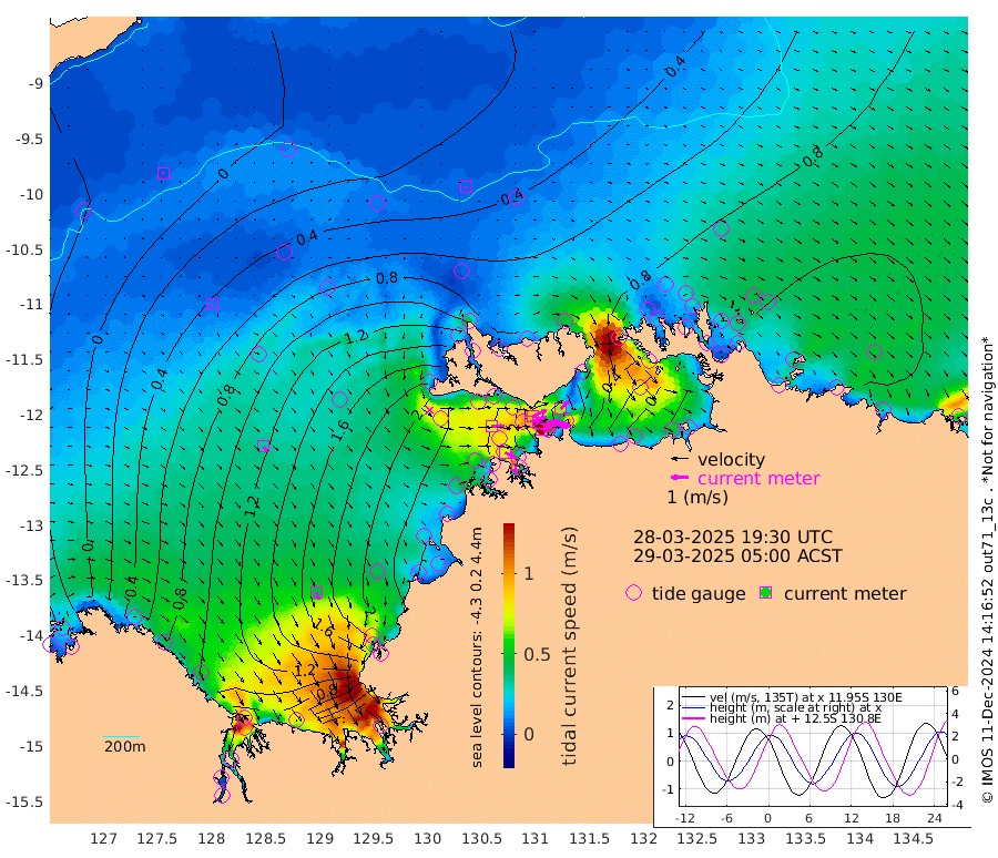 155cm/s 78T +4cm/s rms + 6cm/s 51T. Darwin_C1 52m 116cm/s 88T +4cm/s rms + 7cm/s -161T. Darwin_CW1 22m 94cm/s 74T +4cm/s rms + 8cm/s 61T. Darwin_CW2 34m 65cm/s 49T +3cm/s rms + 9cm/s 98T. Darwin_CW3 22m 123cm/s 88T +5cm/s rms + 7cm/s 88T. Darwin_C3 56m 86cm/s 64T +2cm/s rms + 9cm/s -126T. Darwin_CTbW 22m 7cm/s 129T +9cm/s rms + 2cm/s -110T. NWSLYN 196m 71cm/s 89T +1cm/s rms + 1cm/s -47T. DARBGF 30m 5cm/s 5T +7cm/s rms + 2cm/s -137T. ITFTIS 464m 10cm/s 169T +9cm/s rms + 1cm/s 74T. ITFMHB 146m 44cm/s 161T +4cm/s rms + 1cm/s -134T. ITFJBG 61m 32cm/s 138T +6cm/s rms + 4cm/s 121T. ITFFTB 108m 71cm/s 118T +4cm/s rms + 3cm/s 80T. NRSDAR 19m -92cm Carronade Island -94cm Guy Point -104cm Napier Broome Bay 5cm Lesueur Island 88cm Reveley Island -2cm Rocky Island 103cm Cape Domett 99cm Lacrosse Island 53cm Adolphus Island -64cm Pender Point -111cm Wyndham 55cm The Boxers 84cm Unnamed Shoal -14cm Loxton Shoal 150cm Pelican Island 51cm Calder Shoal 16cm Evans Shoal 25cm Quoin Island 198cm Port Keats 197cm Jones Point -33cm Catfish Island 191cm Cape Scott Offshore 295cm Cape Ford 226cm Anson Bay 50cm Goodrich Bank 204cm Peron Island North 226cm Point Jenny 225cm Native Point 226cm Fish Reef 242cm Tapa Bay 150cm Point Fawcett (Offshore) 244cm Burge Point 232cm Munkunuwa 204cm Beagle A 237cm Parsons Bank 238cm Fenton Patches 23cm Lynedoch Bank 225cm Hancox Shoal Area 240cm Nightcliff 242cm Darwin 239cm Charles Point Patches 141cm Glyde Point 54cm Chambers Bay 26cm Point Stuart 100cm Cape Hotham 52cm Christine Reef 16cm West Alligator Head -26cm East Field Island 55cm Two Hills Bay 130cm Newby Shoal 62cm Camp Point 228cm Medina Inlet South 134cm South Barlow Point 105cm St. Asaph Bay 60cm Cape Van Dieman 61cm Snake Bay 59cm Cache Point -41cm Echo Shoal 62cm Point Jahleel (Off) 84cm Cape Don 73cm Port Essington 77cm Smith Point - West 70cm NW Peacock Island 53cm North Of Jones Shoal 21cm Peacock Island 81cm Point David 80cm D'urville Point 60cm Money Shoal 81cm Copeland Island 100cm Cape Cockburn 74cm One Tree Point 96cm Hogmany Shoal 74cm New Year Island - West 79cm Grant Island 82cm Aurari Bay 87cm Cuthbert Point 87cm North Goulburn Island 81cm Paxie Shoal 91cm Entrance Island 87cm Yabooma Island