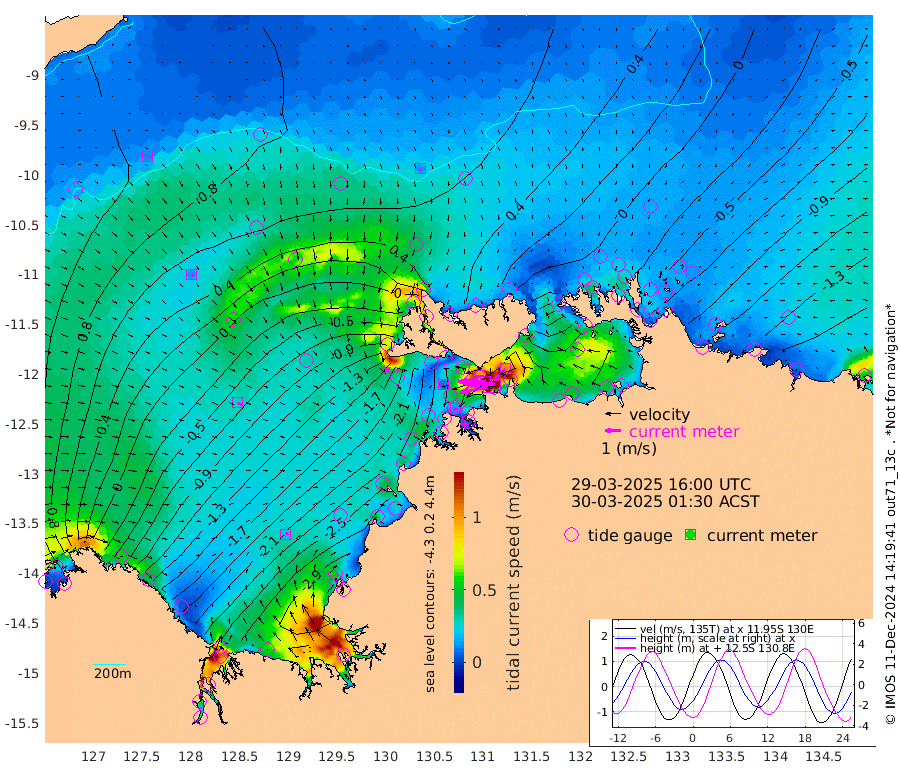 184cm/s -101T +4cm/s rms + 6cm/s 51T. Darwin_C1 52m 159cm/s -91T +4cm/s rms + 7cm/s -161T. Darwin_CW1 22m 101cm/s -106T +4cm/s rms + 8cm/s 61T. Darwin_CW2 34m 102cm/s -137T +3cm/s rms + 9cm/s 98T. Darwin_CW3 22m 172cm/s -91T +5cm/s rms + 7cm/s 88T. Darwin_C3 56m 97cm/s -116T +2cm/s rms + 9cm/s -126T. Darwin_CTbW 22m 14cm/s 167T +9cm/s rms + 2cm/s -110T. NWSLYN 196m 10cm/s -156T +1cm/s rms + 1cm/s -47T. DARBGF 30m 11cm/s 95T +7cm/s rms + 2cm/s -137T. ITFTIS 464m 15cm/s 125T +9cm/s rms + 1cm/s 74T. ITFMHB 146m 18cm/s 75T +4cm/s rms + 1cm/s -134T. ITFJBG 61m 29cm/s 112T +6cm/s rms + 4cm/s 121T. ITFFTB 108m 13cm/s 179T +4cm/s rms + 3cm/s 80T. NRSDAR 19m 79cm Carronade Island 79cm Guy Point 85cm Napier Broome Bay -69cm Lesueur Island -204cm Reveley Island -92cm Rocky Island -319cm Cape Domett -287cm Lacrosse Island -346cm Adolphus Island -269cm Pender Point -254cm Wyndham 7cm The Boxers -20cm Unnamed Shoal 87cm Loxton Shoal -343cm Pelican Island 29cm Calder Shoal 67cm Evans Shoal -409cm Quoin Island -322cm Port Keats -312cm Jones Point -285cm Catfish Island -205cm Cape Scott Offshore -209cm Cape Ford -231cm Anson Bay 40cm Goodrich Bank -200cm Peron Island North -192cm Point Jenny -192cm Native Point -211cm Fish Reef -231cm Tapa Bay -61cm Point Fawcett (Offshore) -261cm Burge Point -211cm Munkunuwa -164cm Beagle A -257cm Parsons Bank -253cm Fenton Patches 48cm Lynedoch Bank -261cm Hancox Shoal Area -273cm Nightcliff -292cm Darwin -249cm Charles Point Patches -229cm Glyde Point -204cm Chambers Bay -204cm Point Stuart -204cm Cape Hotham -189cm Christine Reef -222cm West Alligator Head -219cm East Field Island -169cm Two Hills Bay -90cm Newby Shoal -173cm Camp Point -224cm Medina Inlet South -48cm South Barlow Point -8cm St. Asaph Bay 38cm Cape Van Dieman 26cm Snake Bay 31cm Cache Point 111cm Echo Shoal -2cm Point Jahleel (Off) -70cm Cape Don -9cm Port Essington -10cm Smith Point - West -9cm NW Peacock Island 19cm North Of Jones Shoal 4cm Peacock Island -44cm Point David -16cm D'urville Point -3cm Money Shoal -50cm Copeland Island -63cm Cape Cockburn -37cm One Tree Point -60cm Hogmany Shoal -45cm New Year Island - West -51cm Grant Island -83cm Aurari Bay -104cm Cuthbert Point -77cm North Goulburn Island -117cm Paxie Shoal -149cm Entrance Island -182cm Yabooma Island