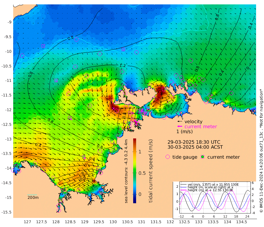 52cm/s 79T +4cm/s rms + 6cm/s 51T. Darwin_C1 52m 28cm/s 82T +4cm/s rms + 7cm/s -161T. Darwin_CW1 22m 38cm/s 74T +4cm/s rms + 8cm/s 61T. Darwin_CW2 34m 28cm/s -159T +3cm/s rms + 9cm/s 98T. Darwin_CW3 22m 14cm/s 76T +5cm/s rms + 7cm/s 88T. Darwin_C3 56m 51cm/s 62T +2cm/s rms + 9cm/s -126T. Darwin_CTbW 22m 16cm/s 152T +9cm/s rms + 2cm/s -110T. NWSLYN 196m 90cm/s 94T +1cm/s rms + 1cm/s -47T. DARBGF 30m 11cm/s 69T +7cm/s rms + 2cm/s -137T. ITFTIS 464m 25cm/s 148T +9cm/s rms + 1cm/s 74T. ITFMHB 146m 62cm/s 145T +4cm/s rms + 1cm/s -134T. ITFJBG 61m 64cm/s 128T +6cm/s rms + 4cm/s 121T. ITFFTB 108m 94cm/s 125T +4cm/s rms + 3cm/s 80T. NRSDAR 19m -48cm Carronade Island -52cm Guy Point -53cm Napier Broome Bay -44cm Lesueur Island -56cm Reveley Island -48cm Rocky Island -128cm Cape Domett -107cm Lacrosse Island -213cm Adolphus Island -298cm Pender Point -347cm Wyndham 83cm The Boxers 96cm Unnamed Shoal 69cm Loxton Shoal -98cm Pelican Island 100cm Calder Shoal 86cm Evans Shoal -299cm Quoin Island -13cm Port Keats -11cm Jones Point -291cm Catfish Island 72cm Cape Scott Offshore 202cm Cape Ford 90cm Anson Bay 101cm Goodrich Bank 96cm Peron Island North 123cm Point Jenny 124cm Native Point 115cm Fish Reef 111cm Tapa Bay 144cm Point Fawcett (Offshore) 95cm Burge Point 124cm Munkunuwa 126cm Beagle A 87cm Parsons Bank 92cm Fenton Patches 76cm Lynedoch Bank 63cm Hancox Shoal Area 76cm Nightcliff 66cm Darwin 95cm Charles Point Patches -15cm Glyde Point -113cm Chambers Bay -144cm Point Stuart -47cm Cape Hotham -101cm Christine Reef -172cm West Alligator Head -224cm East Field Island -76cm Two Hills Bay 102cm Newby Shoal -72cm Camp Point 107cm Medina Inlet South 137cm South Barlow Point 133cm St. Asaph Bay 112cm Cape Van Dieman 107cm Snake Bay 103cm Cache Point 51cm Echo Shoal 80cm Point Jahleel (Off) 45cm Cape Don 82cm Port Essington 86cm Smith Point - West 77cm NW Peacock Island 83cm North Of Jones Shoal 29cm Peacock Island 52cm Point David 82cm D'urville Point 66cm Money Shoal 47cm Copeland Island 60cm Cape Cockburn 53cm One Tree Point 50cm Hogmany Shoal 45cm New Year Island - West 45cm Grant Island 18cm Aurari Bay 0cm Cuthbert Point 29cm North Goulburn Island -21cm Paxie Shoal -40cm Entrance Island -83cm Yabooma Island