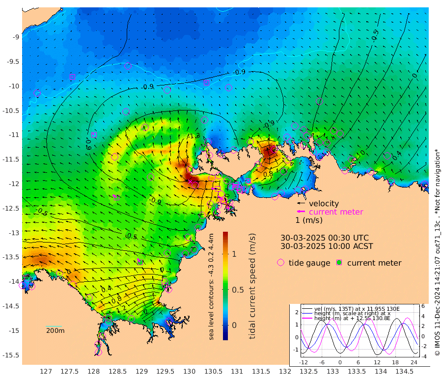 41cm/s -105T +4cm/s rms + 6cm/s 51T. Darwin_C1 52m 11cm/s -73T +4cm/s rms + 7cm/s -161T. Darwin_CW1 22m 34cm/s -108T +4cm/s rms + 8cm/s 61T. Darwin_CW2 34m 16cm/s 7T +3cm/s rms + 9cm/s 98T. Darwin_CW3 22m 14cm/s -106T +5cm/s rms + 7cm/s 88T. Darwin_C3 56m 32cm/s -118T +2cm/s rms + 9cm/s -126T. Darwin_CTbW 22m 11cm/s -24T +9cm/s rms + 2cm/s -110T. NWSLYN 196m 83cm/s -86T +1cm/s rms + 1cm/s -47T. DARBGF 30m 12cm/s -107T +7cm/s rms + 2cm/s -137T. ITFTIS 464m 22cm/s -36T +9cm/s rms + 1cm/s 74T. ITFMHB 146m 57cm/s -34T +4cm/s rms + 1cm/s -134T. ITFJBG 61m 60cm/s -52T +6cm/s rms + 4cm/s 121T. ITFFTB 108m 92cm/s -55T +4cm/s rms + 3cm/s 80T. NRSDAR 19m 54cm Carronade Island 65cm Guy Point 49cm Napier Broome Bay 61cm Lesueur Island 85cm Reveley Island 22cm Rocky Island 157cm Cape Domett 138cm Lacrosse Island 246cm Adolphus Island 311cm Pender Point 362cm Wyndham -74cm The Boxers -97cm Unnamed Shoal -67cm Loxton Shoal 143cm Pelican Island -92cm Calder Shoal -76cm Evans Shoal 335cm Quoin Island 50cm Port Keats 45cm Jones Point 344cm Catfish Island -35cm Cape Scott Offshore -145cm Cape Ford -51cm Anson Bay -90cm Goodrich Bank -60cm Peron Island North -84cm Point Jenny -88cm Native Point -80cm Fish Reef -70cm Tapa Bay -116cm Point Fawcett (Offshore) -60cm Burge Point -96cm Munkunuwa -96cm Beagle A -50cm Parsons Bank -57cm Fenton Patches -70cm Lynedoch Bank -18cm Hancox Shoal Area -36cm Nightcliff -27cm Darwin -51cm Charles Point Patches 46cm Glyde Point 147cm Chambers Bay 170cm Point Stuart 77cm Cape Hotham 133cm Christine Reef 198cm West Alligator Head 247cm East Field Island 102cm Two Hills Bay -85cm Newby Shoal 98cm Camp Point -75cm Medina Inlet South -119cm South Barlow Point -114cm St. Asaph Bay -100cm Cape Van Dieman -98cm Snake Bay -86cm Cache Point -47cm Echo Shoal -63cm Point Jahleel (Off) -21cm Cape Don -59cm Port Essington -62cm Smith Point - West -53cm NW Peacock Island -63cm North Of Jones Shoal -21cm Peacock Island -24cm Point David -57cm D'urville Point -42cm Money Shoal -16cm Copeland Island -24cm Cape Cockburn -27cm One Tree Point -3cm Hogmany Shoal -20cm New Year Island - West -17cm Grant Island 11cm Aurari Bay 39cm Cuthbert Point 3cm North Goulburn Island 60cm Paxie Shoal 85cm Entrance Island 140cm Yabooma Island