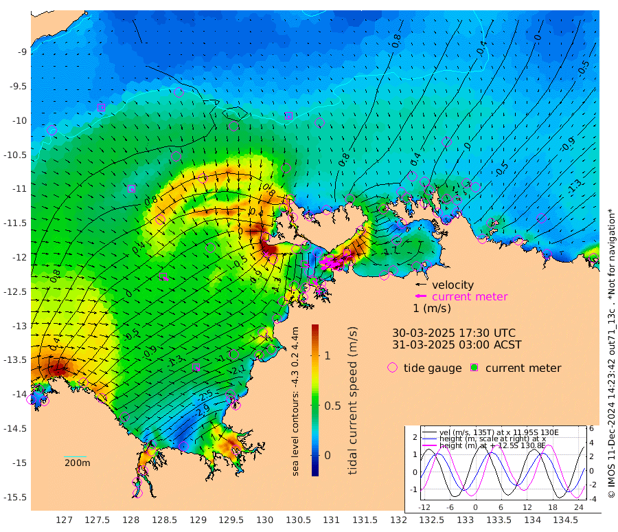 135cm/s -101T +4cm/s rms + 6cm/s 51T. Darwin_C1 52m 124cm/s -92T +4cm/s rms + 7cm/s -161T. Darwin_CW1 22m 58cm/s -106T +4cm/s rms + 8cm/s 61T. Darwin_CW2 34m 102cm/s -138T +3cm/s rms + 9cm/s 98T. Darwin_CW3 22m 129cm/s -90T +5cm/s rms + 7cm/s 88T. Darwin_C3 56m 62cm/s -116T +2cm/s rms + 9cm/s -126T. Darwin_CTbW 22m 17cm/s 164T +9cm/s rms + 2cm/s -110T. NWSLYN 196m 49cm/s 103T +1cm/s rms + 1cm/s -47T. DARBGF 30m 14cm/s 91T +7cm/s rms + 2cm/s -137T. ITFTIS 464m 25cm/s 139T +9cm/s rms + 1cm/s 74T. ITFMHB 146m 41cm/s 124T +4cm/s rms + 1cm/s -134T. ITFJBG 61m 57cm/s 122T +6cm/s rms + 4cm/s 121T. ITFFTB 108m 61cm/s 133T +4cm/s rms + 3cm/s 80T. NRSDAR 19m 25cm Carronade Island 22cm Guy Point 26cm Napier Broome Bay -88cm Lesueur Island -201cm Reveley Island -99cm Rocky Island -331cm Cape Domett -292cm Lacrosse Island -397cm Adolphus Island -382cm Pender Point -396cm Wyndham 39cm The Boxers 26cm Unnamed Shoal 98cm Loxton Shoal -336cm Pelican Island 68cm Calder Shoal 90cm Evans Shoal -491cm Quoin Island -272cm Port Keats -264cm Jones Point -402cm Catfish Island -135cm Cape Scott Offshore -79cm Cape Ford -146cm Anson Bay 75cm Goodrich Bank -120cm Peron Island North -101cm Point Jenny -99cm Native Point -118cm Fish Reef -137cm Tapa Bay 16cm Point Fawcett (Offshore) -168cm Burge Point -109cm Munkunuwa -73cm Beagle A -171cm Parsons Bank -161cm Fenton Patches 69cm Lynedoch Bank -188cm Hancox Shoal Area -186cm Nightcliff -209cm Darwin -161cm Charles Point Patches -203cm Glyde Point -236cm Chambers Bay -253cm Point Stuart -200cm Cape Hotham -218cm Christine Reef -281cm West Alligator Head -306cm East Field Island -189cm Two Hills Bay -30cm Newby Shoal -188cm Camp Point -132cm Medina Inlet South 25cm South Barlow Point 55cm St. Asaph Bay 79cm Cape Van Dieman 68cm Snake Bay 67cm Cache Point 110cm Echo Shoal 29cm Point Jahleel (Off) -48cm Cape Don 20cm Port Essington 21cm Smith Point - West 17cm NW Peacock Island 45cm North Of Jones Shoal 13cm Peacock Island -28cm Point David 13cm D'urville Point 15cm Money Shoal -35cm Copeland Island -45cm Cape Cockburn -21cm One Tree Point -51cm Hogmany Shoal -31cm New Year Island - West -38cm Grant Island -76cm Aurari Bay -110cm Cuthbert Point -68cm North Goulburn Island -130cm Paxie Shoal -166cm Entrance Island -217cm Yabooma Island