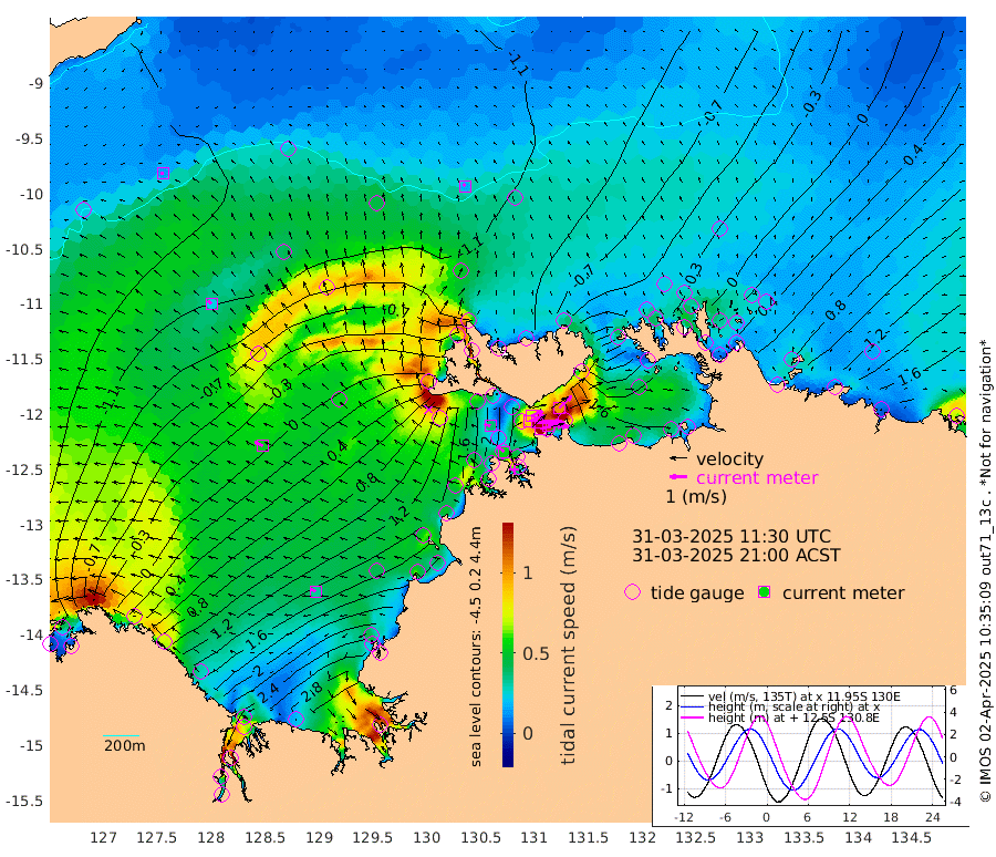 149cm/s 79T +4cm/s rms + 6cm/s 51T. Darwin_C1 52m 120cm/s 92T +4cm/s rms + 7cm/s -161T. Darwin_CW1 22m 89cm/s 70T +4cm/s rms + 8cm/s 61T. Darwin_CW2 34m 103cm/s 45T +3cm/s rms + 9cm/s 98T. Darwin_CW3 22m 156cm/s 90T +5cm/s rms + 7cm/s 88T. Darwin_C3 56m 69cm/s 65T +2cm/s rms + 9cm/s -126T. Darwin_CTbW 22m 17cm/s -23T +9cm/s rms + 2cm/s -110T. NWSLYN 196m 36cm/s -73T +1cm/s rms + 1cm/s -47T. DARBGF 30m 14cm/s -97T +7cm/s rms + 2cm/s -137T. ITFTIS 464m 24cm/s -48T +9cm/s rms + 1cm/s 74T. ITFMHB 146m 32cm/s -63T +4cm/s rms + 1cm/s -134T. ITFJBG 61m 51cm/s -63T +6cm/s rms + 4cm/s 121T. ITFFTB 108m 53cm/s -47T +4cm/s rms + 3cm/s 80T. NRSDAR 19m -93cm Carronade Island -94cm Guy Point -89cm Napier Broome Bay 21cm Lesueur Island 164cm Reveley Island 88cm Rocky Island 286cm Cape Domett 242cm Lacrosse Island 331cm Adolphus Island 314cm Pender Point 308cm Wyndham -68cm The Boxers -40cm Unnamed Shoal -130cm Loxton Shoal 298cm Pelican Island -95cm Calder Shoal -115cm Evans Shoal 420cm Quoin Island 245cm Port Keats 248cm Jones Point 314cm Catfish Island 119cm Cape Scott Offshore 65cm Cape Ford 137cm Anson Bay -95cm Goodrich Bank 108cm Peron Island North 92cm Point Jenny 91cm Native Point 110cm Fish Reef 129cm Tapa Bay -30cm Point Fawcett (Offshore) 161cm Burge Point 119cm Munkunuwa 55cm Beagle A 172cm Parsons Bank 146cm Fenton Patches -90cm Lynedoch Bank 176cm Hancox Shoal Area 173cm Nightcliff 200cm Darwin 148cm Charles Point Patches 179cm Glyde Point 196cm Chambers Bay 212cm Point Stuart 171cm Cape Hotham 177cm Christine Reef 237cm West Alligator Head 249cm East Field Island 157cm Two Hills Bay -4cm Newby Shoal 153cm Camp Point 128cm Medina Inlet South -33cm South Barlow Point -71cm St. Asaph Bay -96cm Cape Van Dieman -83cm Snake Bay -89cm Cache Point -152cm Echo Shoal -50cm Point Jahleel (Off) 30cm Cape Don -35cm Port Essington -39cm Smith Point - West -35cm NW Peacock Island -66cm North Of Jones Shoal -20cm Peacock Island 16cm Point David -29cm D'urville Point -34cm Money Shoal 23cm Copeland Island 27cm Cape Cockburn 7cm One Tree Point 29cm Hogmany Shoal 13cm New Year Island - West 23cm Grant Island 61cm Aurari Bay 95cm Cuthbert Point 55cm North Goulburn Island 117cm Paxie Shoal 153cm Entrance Island 200cm Yabooma Island