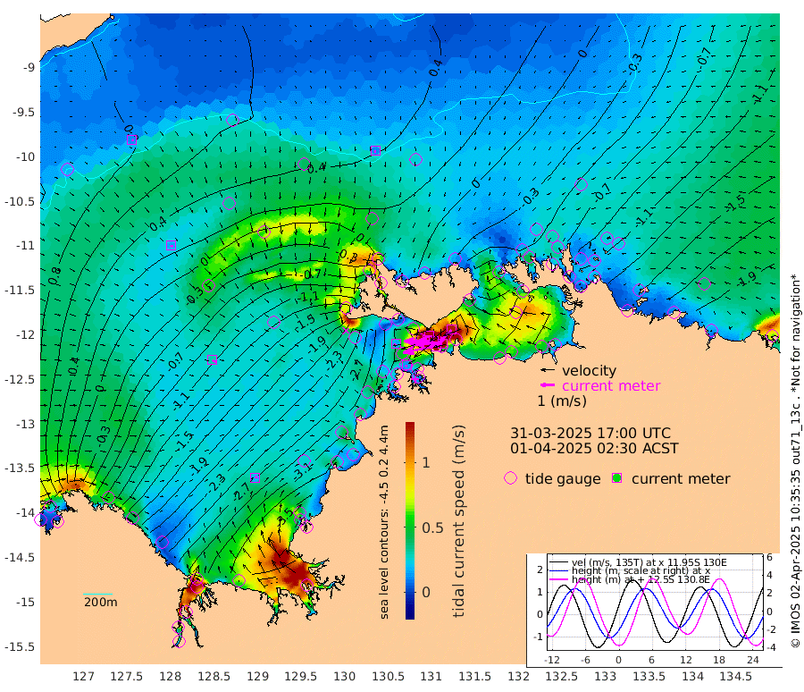 240cm/s -101T +4cm/s rms + 6cm/s 51T. Darwin_C1 52m 197cm/s -91T +4cm/s rms + 7cm/s -161T. Darwin_CW1 22m 125cm/s -106T +4cm/s rms + 8cm/s 61T. Darwin_CW2 34m 125cm/s -136T +3cm/s rms + 9cm/s 98T. Darwin_CW3 22m 209cm/s -91T +5cm/s rms + 7cm/s 88T. Darwin_C3 56m 133cm/s -115T +2cm/s rms + 9cm/s -126T. Darwin_CTbW 22m 12cm/s 180T +9cm/s rms + 2cm/s -110T. NWSLYN 196m 16cm/s -128T +1cm/s rms + 1cm/s -47T. DARBGF 30m 12cm/s 106T +7cm/s rms + 2cm/s -137T. ITFTIS 464m 15cm/s 126T +9cm/s rms + 1cm/s 74T. ITFMHB 146m 18cm/s 73T +4cm/s rms + 1cm/s -134T. ITFJBG 61m 30cm/s 111T +6cm/s rms + 4cm/s 121T. ITFFTB 108m 13cm/s -156T +4cm/s rms + 3cm/s 80T. NRSDAR 19m 60cm Carronade Island 60cm Guy Point 64cm Napier Broome Bay -102cm Lesueur Island -247cm Reveley Island -115cm Rocky Island -374cm Cape Domett -335cm Lacrosse Island -400cm Adolphus Island -311cm Pender Point -293cm Wyndham -27cm The Boxers -53cm Unnamed Shoal 65cm Loxton Shoal -401cm Pelican Island 0cm Calder Shoal 42cm Evans Shoal -467cm Quoin Island -381cm Port Keats -368cm Jones Point -348cm Catfish Island -256cm Cape Scott Offshore -283cm Cape Ford -285cm Anson Bay 12cm Goodrich Bank -258cm Peron Island North -246cm Point Jenny -244cm Native Point -267cm Fish Reef -287cm Tapa Bay -105cm Point Fawcett (Offshore) -319cm Burge Point -260cm Munkunuwa -210cm Beagle A -317cm Parsons Bank -305cm Fenton Patches 23cm Lynedoch Bank -319cm Hancox Shoal Area -325cm Nightcliff -356cm Darwin -313cm Charles Point Patches -279cm Glyde Point -242cm Chambers Bay -245cm Point Stuart -249cm Cape Hotham -228cm Christine Reef -262cm West Alligator Head -254cm East Field Island -213cm Two Hills Bay -138cm Newby Shoal -210cm Camp Point -281cm Medina Inlet South -88cm South Barlow Point -42cm St. Asaph Bay 8cm Cape Van Dieman -5cm Snake Bay -2cm Cache Point 98cm Echo Shoal -35cm Point Jahleel (Off) -114cm Cape Don -50cm Port Essington -51cm Smith Point - West -49cm NW Peacock Island -17cm North Of Jones Shoal -9cm Peacock Island -89cm Point David -59cm D'urville Point -42cm Money Shoal -93cm Copeland Island -123cm Cape Cockburn -82cm One Tree Point -120cm Hogmany Shoal -88cm New Year Island - West -99cm Grant Island -127cm Aurari Bay -160cm Cuthbert Point -127cm North Goulburn Island -169cm Paxie Shoal -200cm Entrance Island -233cm Yabooma Island