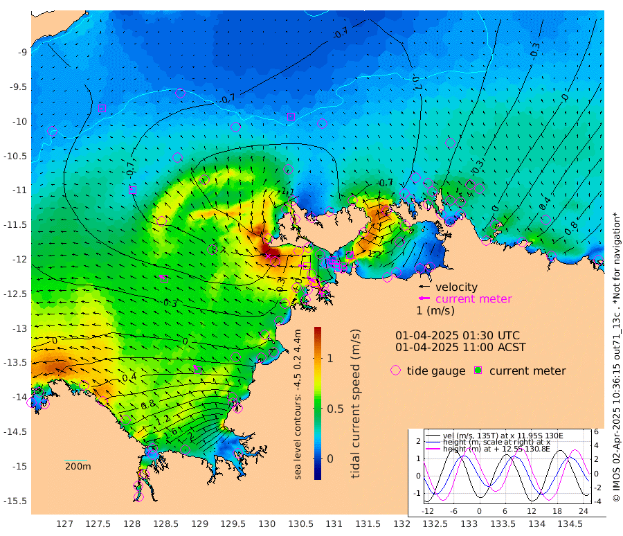 18cm/s 84T +4cm/s rms + 6cm/s 51T. Darwin_C1 52m 37cm/s 86T +4cm/s rms + 7cm/s -161T. Darwin_CW1 22m 9cm/s -107T +4cm/s rms + 8cm/s 61T. Darwin_CW2 34m 40cm/s 37T +3cm/s rms + 9cm/s 98T. Darwin_CW3 22m 25cm/s 98T +5cm/s rms + 7cm/s 88T. Darwin_C3 56m 4cm/s 87T +2cm/s rms + 9cm/s -126T. Darwin_CTbW 22m 9cm/s -16T +9cm/s rms + 2cm/s -110T. NWSLYN 196m 75cm/s -84T +1cm/s rms + 1cm/s -47T. DARBGF 30m 12cm/s -103T +7cm/s rms + 2cm/s -137T. ITFTIS 464m 19cm/s -44T +9cm/s rms + 1cm/s 74T. ITFMHB 146m 54cm/s -36T +4cm/s rms + 1cm/s -134T. ITFJBG 61m 57cm/s -53T +6cm/s rms + 4cm/s 121T. ITFFTB 108m 90cm/s -54T +4cm/s rms + 3cm/s 80T. NRSDAR 19m 94cm Carronade Island 107cm Guy Point 94cm Napier Broome Bay 101cm Lesueur Island 134cm Reveley Island 56cm Rocky Island 218cm Cape Domett 196cm Lacrosse Island 299cm Adolphus Island 364cm Pender Point 414cm Wyndham -42cm The Boxers -73cm Unnamed Shoal -51cm Loxton Shoal 200cm Pelican Island -65cm Calder Shoal -59cm Evans Shoal 388cm Quoin Island 112cm Port Keats 99cm Jones Point 409cm Catfish Island 17cm Cape Scott Offshore -82cm Cape Ford 3cm Anson Bay -74cm Goodrich Bank -10cm Peron Island North -25cm Point Jenny -30cm Native Point -25cm Fish Reef -13cm Tapa Bay -76cm Point Fawcett (Offshore) 2cm Burge Point -46cm Munkunuwa -44cm Beagle A 3cm Parsons Bank 0cm Fenton Patches -58cm Lynedoch Bank 35cm Hancox Shoal Area 22cm Nightcliff 28cm Darwin 2cm Charles Point Patches 92cm Glyde Point 189cm Chambers Bay 210cm Point Stuart 117cm Cape Hotham 180cm Christine Reef 241cm West Alligator Head 287cm East Field Island 140cm Two Hills Bay -33cm Newby Shoal 134cm Camp Point -22cm Medina Inlet South -89cm South Barlow Point -87cm St. Asaph Bay -83cm Cape Van Dieman -83cm Snake Bay -65cm Cache Point -35cm Echo Shoal -42cm Point Jahleel (Off) 10cm Cape Don -40cm Port Essington -41cm Smith Point - West -35cm NW Peacock Island -46cm North Of Jones Shoal -15cm Peacock Island -9cm Point David -38cm D'urville Point -26cm Money Shoal -2cm Copeland Island 0cm Cape Cockburn -10cm One Tree Point 20cm Hogmany Shoal -3cm New Year Island - West 2cm Grant Island 26cm Aurari Bay 63cm Cuthbert Point 24cm North Goulburn Island 85cm Paxie Shoal 107cm Entrance Island 160cm Yabooma Island