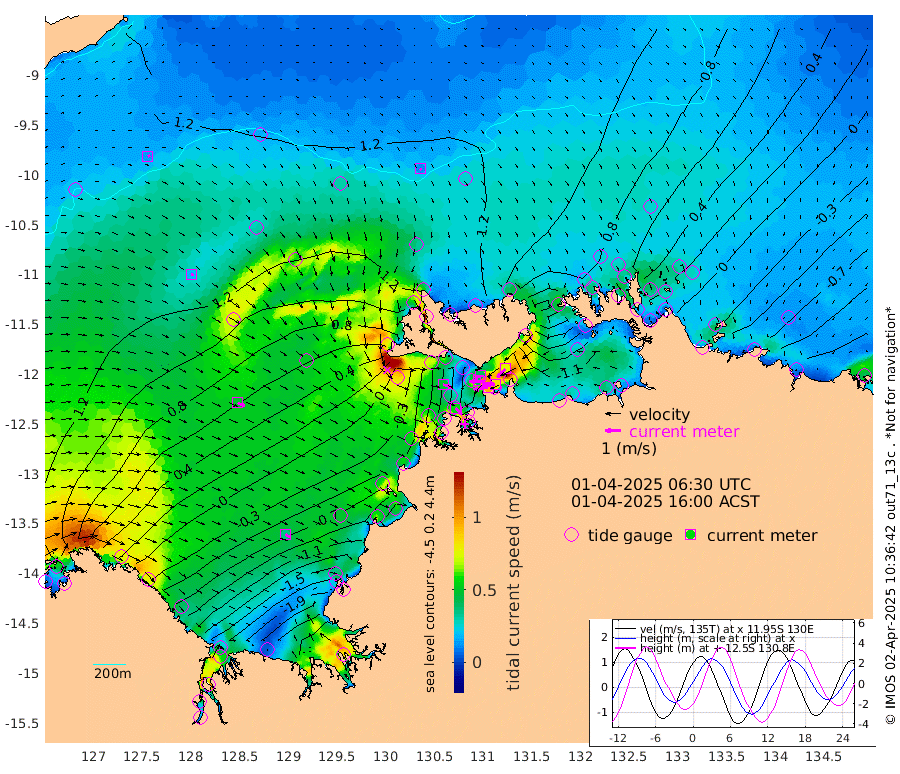 93cm/s -100T +4cm/s rms + 6cm/s 51T. Darwin_C1 52m 82cm/s -92T +4cm/s rms + 7cm/s -161T. Darwin_CW1 22m 43cm/s -107T +4cm/s rms + 8cm/s 61T. Darwin_CW2 34m 74cm/s -136T +3cm/s rms + 9cm/s 98T. Darwin_CW3 22m 100cm/s -90T +5cm/s rms + 7cm/s 88T. Darwin_C3 56m 39cm/s -116T +2cm/s rms + 9cm/s -126T. Darwin_CTbW 22m 11cm/s 146T +9cm/s rms + 2cm/s -110T. NWSLYN 196m 48cm/s 101T +1cm/s rms + 1cm/s -47T. DARBGF 30m 15cm/s 63T +7cm/s rms + 2cm/s -137T. ITFTIS 464m 18cm/s 106T +9cm/s rms + 1cm/s 74T. ITFMHB 146m 36cm/s 122T +4cm/s rms + 1cm/s -134T. ITFJBG 61m 48cm/s 113T +6cm/s rms + 4cm/s 121T. ITFFTB 108m 56cm/s 133T +4cm/s rms + 3cm/s 80T. NRSDAR 19m 60cm Carronade Island 52cm Guy Point 61cm Napier Broome Bay 4cm Lesueur Island -125cm Reveley Island -55cm Rocky Island -218cm Cape Domett -183cm Lacrosse Island -267cm Adolphus Island -287cm Pender Point -293cm Wyndham 94cm The Boxers 97cm Unnamed Shoal 127cm Loxton Shoal -226cm Pelican Island 112cm Calder Shoal 114cm Evans Shoal -360cm Quoin Island -155cm Port Keats -157cm Jones Point -310cm Catfish Island -57cm Cape Scott Offshore 27cm Cape Ford -63cm Anson Bay 113cm Goodrich Bank -37cm Peron Island North -24cm Point Jenny -20cm Native Point -31cm Fish Reef -50cm Tapa Bay 69cm Point Fawcett (Offshore) -69cm Burge Point -43cm Munkunuwa 17cm Beagle A -83cm Parsons Bank -54cm Fenton Patches 105cm Lynedoch Bank -96cm Hancox Shoal Area -87cm Nightcliff -100cm Darwin -57cm Charles Point Patches -110cm Glyde Point -163cm Chambers Bay -178cm Point Stuart -117cm Cape Hotham -147cm Christine Reef -205cm West Alligator Head -222cm East Field Island -119cm Two Hills Bay 64cm Newby Shoal -109cm Camp Point -45cm Medina Inlet South 79cm South Barlow Point 99cm St. Asaph Bay 116cm Cape Van Dieman 112cm Snake Bay 107cm Cache Point 132cm Echo Shoal 74cm Point Jahleel (Off) 5cm Cape Don 64cm Port Essington 66cm Smith Point - West 64cm NW Peacock Island 84cm North Of Jones Shoal 27cm Peacock Island 23cm Point David 61cm D'urville Point 62cm Money Shoal 15cm Copeland Island 23cm Cape Cockburn 29cm One Tree Point 10cm Hogmany Shoal 30cm New Year Island - West 19cm Grant Island -13cm Aurari Bay -49cm Cuthbert Point -11cm North Goulburn Island -75cm Paxie Shoal -105cm Entrance Island -157cm Yabooma Island