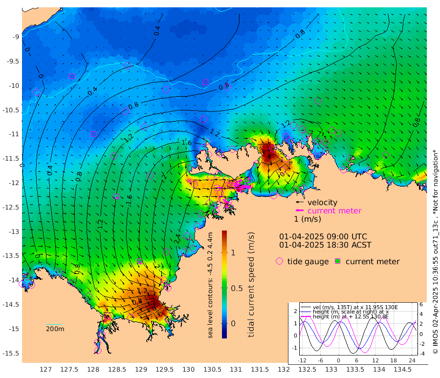 166cm/s 78T +4cm/s rms + 6cm/s 51T. Darwin_C1 52m 118cm/s 86T +4cm/s rms + 7cm/s -161T. Darwin_CW1 22m 95cm/s 75T +4cm/s rms + 8cm/s 61T. Darwin_CW2 34m 53cm/s 54T +3cm/s rms + 9cm/s 98T. Darwin_CW3 22m 117cm/s 88T +5cm/s rms + 7cm/s 88T. Darwin_C3 56m 105cm/s 63T +2cm/s rms + 9cm/s -126T. Darwin_CTbW 22m 4cm/s 91T +9cm/s rms + 2cm/s -110T. NWSLYN 196m 82cm/s 90T +1cm/s rms + 1cm/s -47T. DARBGF 30m 8cm/s 25T +7cm/s rms + 2cm/s -137T. ITFTIS 464m 7cm/s 131T +9cm/s rms + 1cm/s 74T. ITFMHB 146m 50cm/s 157T +4cm/s rms + 1cm/s -134T. ITFJBG 61m 36cm/s 132T +6cm/s rms + 4cm/s 121T. ITFFTB 108m 80cm/s 119T +4cm/s rms + 3cm/s 80T. NRSDAR 19m -111cm Carronade Island -123cm Guy Point -112cm Napier Broome Bay 2cm Lesueur Island 58cm Reveley Island 34cm Rocky Island 69cm Cape Domett 64cm Lacrosse Island 12cm Adolphus Island -119cm Pender Point -176cm Wyndham 85cm The Boxers 132cm Unnamed Shoal 26cm Loxton Shoal 105cm Pelican Island 86cm Calder Shoal 49cm Evans Shoal -29cm Quoin Island 179cm Port Keats 179cm Jones Point -127cm Catfish Island 182cm Cape Scott Offshore 307cm Cape Ford 216cm Anson Bay 85cm Goodrich Bank 213cm Peron Island North 216cm Point Jenny 220cm Native Point 233cm Fish Reef 233cm Tapa Bay 170cm Point Fawcett (Offshore) 242cm Burge Point 240cm Munkunuwa 212cm Beagle A 237cm Parsons Bank 235cm Fenton Patches 61cm Lynedoch Bank 208cm Hancox Shoal Area 224cm Nightcliff 245cm Darwin 243cm Charles Point Patches 126cm Glyde Point 0cm Chambers Bay -18cm Point Stuart 78cm Cape Hotham 0cm Christine Reef -37cm West Alligator Head -87cm East Field Island 30cm Two Hills Bay 159cm Newby Shoal 34cm Camp Point 238cm Medina Inlet South 170cm South Barlow Point 135cm St. Asaph Bay 96cm Cape Van Dieman 107cm Snake Bay 88cm Cache Point -14cm Echo Shoal 87cm Point Jahleel (Off) 91cm Cape Don 97cm Port Essington 98cm Smith Point - West 92cm NW Peacock Island 79cm North Of Jones Shoal 30cm Peacock Island 93cm Point David 102cm D'urville Point 79cm Money Shoal 89cm Copeland Island 116cm Cape Cockburn 90cm One Tree Point 94cm Hogmany Shoal 90cm New Year Island - West 92cm Grant Island 86cm Aurari Bay 75cm Cuthbert Point 88cm North Goulburn Island 56cm Paxie Shoal 55cm Entrance Island 24cm Yabooma Island