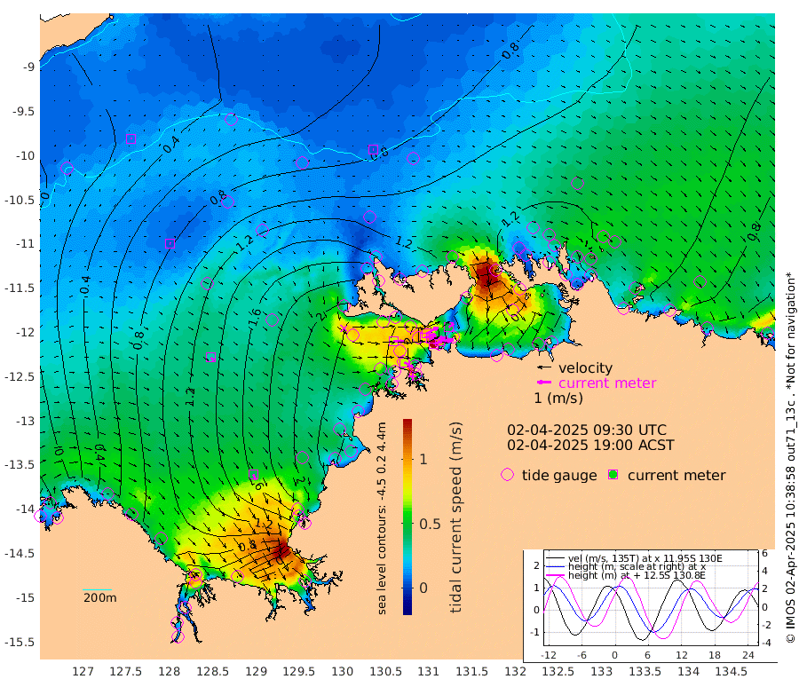 147cm/s 78T +4cm/s rms + 6cm/s 51T. Darwin_C1 52m 101cm/s 86T +4cm/s rms + 7cm/s -161T. Darwin_CW1 22m 83cm/s 75T +4cm/s rms + 8cm/s 61T. Darwin_CW2 34m 44cm/s 56T +3cm/s rms + 9cm/s 98T. Darwin_CW3 22m 103cm/s 88T +5cm/s rms + 7cm/s 88T. Darwin_C3 56m 94cm/s 63T +2cm/s rms + 9cm/s -126T. Darwin_CTbW 22m 5cm/s 103T +9cm/s rms + 2cm/s -110T. NWSLYN 196m 73cm/s 90T +1cm/s rms + 1cm/s -47T. DARBGF 30m 9cm/s 22T +7cm/s rms + 2cm/s -137T. ITFTIS 464m 6cm/s 105T +9cm/s rms + 1cm/s 74T. ITFMHB 146m 43cm/s 156T +4cm/s rms + 1cm/s -134T. ITFJBG 61m 31cm/s 129T +6cm/s rms + 4cm/s 121T. ITFFTB 108m 70cm/s 119T +4cm/s rms + 3cm/s 80T. NRSDAR 19m -98cm Carronade Island -108cm Guy Point -99cm Napier Broome Bay 5cm Lesueur Island 50cm Reveley Island 24cm Rocky Island 60cm Cape Domett 54cm Lacrosse Island 12cm Adolphus Island -109cm Pender Point -159cm Wyndham 85cm The Boxers 126cm Unnamed Shoal 35cm Loxton Shoal 94cm Pelican Island 85cm Calder Shoal 55cm Evans Shoal -23cm Quoin Island 159cm Port Keats 159cm Jones Point -114cm Catfish Island 166cm Cape Scott Offshore 278cm Cape Ford 197cm Anson Bay 88cm Goodrich Bank 195cm Peron Island North 194cm Point Jenny 197cm Native Point 210cm Fish Reef 210cm Tapa Bay 160cm Point Fawcett (Offshore) 216cm Burge Point 215cm Munkunuwa 190cm Beagle A 215cm Parsons Bank 208cm Fenton Patches 67cm Lynedoch Bank 188cm Hancox Shoal Area 200cm Nightcliff 224cm Darwin 226cm Charles Point Patches 114cm Glyde Point -2cm Chambers Bay -20cm Point Stuart 70cm Cape Hotham -3cm Christine Reef -38cm West Alligator Head -84cm East Field Island 28cm Two Hills Bay 147cm Newby Shoal 32cm Camp Point 217cm Medina Inlet South 162cm South Barlow Point 130cm St. Asaph Bay 97cm Cape Van Dieman 109cm Snake Bay 91cm Cache Point -2cm Echo Shoal 88cm Point Jahleel (Off) 90cm Cape Don 101cm Port Essington 101cm Smith Point - West 96cm NW Peacock Island 86cm North Of Jones Shoal 32cm Peacock Island 97cm Point David 105cm D'urville Point 86cm Money Shoal 93cm Copeland Island 122cm Cape Cockburn 96cm One Tree Point 102cm Hogmany Shoal 95cm New Year Island - West 97cm Grant Island 90cm Aurari Bay 80cm Cuthbert Point 93cm North Goulburn Island 64cm Paxie Shoal 59cm Entrance Island 32cm Yabooma Island