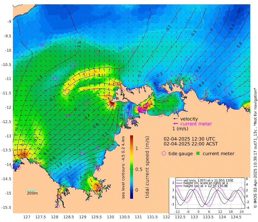 148cm/s 79T +4cm/s rms + 6cm/s 51T. Darwin_C1 52m 102cm/s 92T +4cm/s rms + 7cm/s -161T. Darwin_CW1 22m 73cm/s 71T +4cm/s rms + 8cm/s 61T. Darwin_CW2 34m 98cm/s 43T +3cm/s rms + 9cm/s 98T. Darwin_CW3 22m 127cm/s 90T +5cm/s rms + 7cm/s 88T. Darwin_C3 56m 72cm/s 65T +2cm/s rms + 9cm/s -126T. Darwin_CTbW 22m 14cm/s -24T +9cm/s rms + 2cm/s -110T. NWSLYN 196m 31cm/s -74T +1cm/s rms + 1cm/s -47T. DARBGF 30m 14cm/s -97T +7cm/s rms + 2cm/s -137T. ITFTIS 464m 22cm/s -47T +9cm/s rms + 1cm/s 74T. ITFMHB 146m 27cm/s -64T +4cm/s rms + 1cm/s -134T. ITFJBG 61m 45cm/s -64T +6cm/s rms + 4cm/s 121T. ITFFTB 108m 44cm/s -46T +4cm/s rms + 3cm/s 80T. NRSDAR 19m -93cm Carronade Island -97cm Guy Point -93cm Napier Broome Bay 8cm Lesueur Island 132cm Reveley Island 65cm Rocky Island 234cm Cape Domett 196cm Lacrosse Island 276cm Adolphus Island 252cm Pender Point 250cm Wyndham -65cm The Boxers -31cm Unnamed Shoal -124cm Loxton Shoal 253cm Pelican Island -92cm Calder Shoal -103cm Evans Shoal 351cm Quoin Island 202cm Port Keats 212cm Jones Point 295cm Catfish Island 96cm Cape Scott Offshore 51cm Cape Ford 113cm Anson Bay -82cm Goodrich Bank 95cm Peron Island North 75cm Point Jenny 73cm Native Point 94cm Fish Reef 107cm Tapa Bay -28cm Point Fawcett (Offshore) 132cm Burge Point 95cm Munkunuwa 42cm Beagle A 151cm Parsons Bank 121cm Fenton Patches -79cm Lynedoch Bank 154cm Hancox Shoal Area 142cm Nightcliff 172cm Darwin 126cm Charles Point Patches 161cm Glyde Point 177cm Chambers Bay 199cm Point Stuart 158cm Cape Hotham 159cm Christine Reef 219cm West Alligator Head 228cm East Field Island 151cm Two Hills Bay -10cm Newby Shoal 137cm Camp Point 106cm Medina Inlet South -31cm South Barlow Point -66cm St. Asaph Bay -82cm Cape Van Dieman -69cm Snake Bay -73cm Cache Point -144cm Echo Shoal -38cm Point Jahleel (Off) 38cm Cape Don -16cm Port Essington -18cm Smith Point - West -13cm NW Peacock Island -48cm North Of Jones Shoal -12cm Peacock Island 41cm Point David -5cm D'urville Point -13cm Money Shoal 48cm Copeland Island 60cm Cape Cockburn 30cm One Tree Point 63cm Hogmany Shoal 36cm New Year Island - West 48cm Grant Island 86cm Aurari Bay 122cm Cuthbert Point 80cm North Goulburn Island 135cm Paxie Shoal 173cm Entrance Island 219cm Yabooma Island
