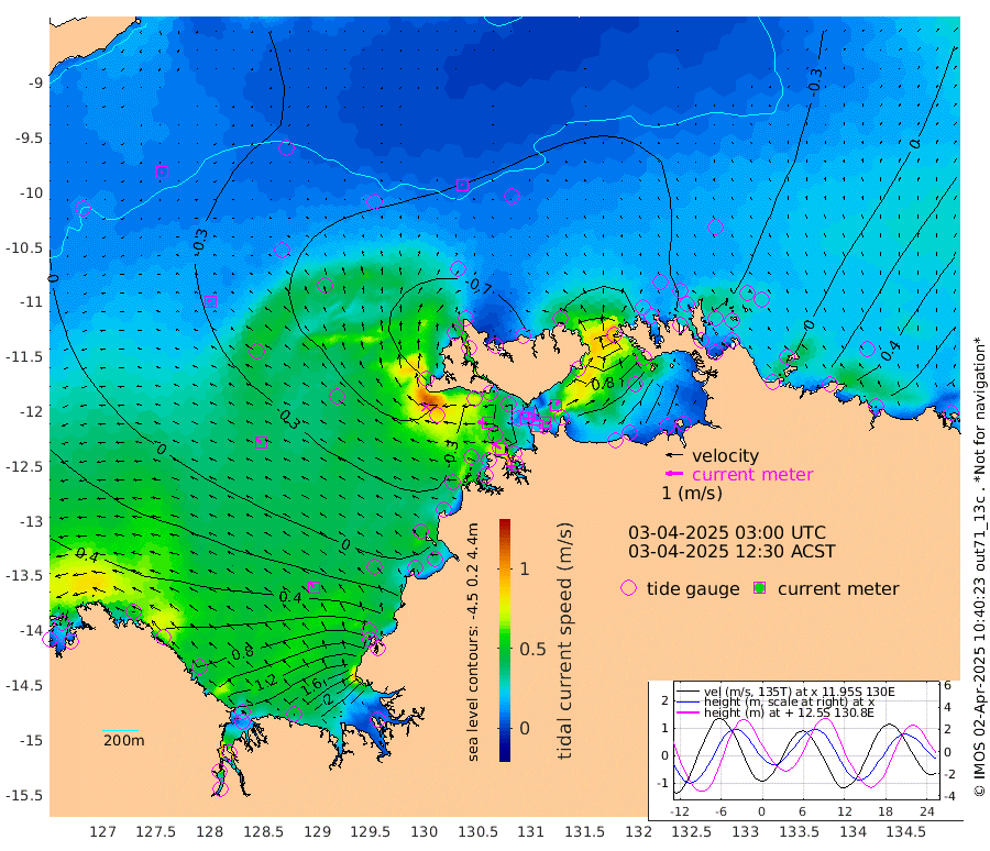 22cm/s 81T +4cm/s rms + 6cm/s 51T. Darwin_C1 52m 37cm/s 87T +4cm/s rms + 7cm/s -161T. Darwin_CW1 22m 13cm/s -111T +4cm/s rms + 8cm/s 61T. Darwin_CW2 34m 35cm/s 36T +3cm/s rms + 9cm/s 98T. Darwin_CW3 22m 10cm/s 110T +5cm/s rms + 7cm/s 88T. Darwin_C3 56m 12cm/s 74T +2cm/s rms + 9cm/s -126T. Darwin_CTbW 22m 4cm/s -3T +9cm/s rms + 2cm/s -110T. NWSLYN 196m 55cm/s -85T +1cm/s rms + 1cm/s -47T. DARBGF 30m 7cm/s -100T +7cm/s rms + 2cm/s -137T. ITFTIS 464m 11cm/s -48T +9cm/s rms + 1cm/s 74T. ITFMHB 146m 40cm/s -33T +4cm/s rms + 1cm/s -134T. ITFJBG 61m 39cm/s -52T +6cm/s rms + 4cm/s 121T. ITFFTB 108m 65cm/s -55T +4cm/s rms + 3cm/s 80T. NRSDAR 19m 132cm Carronade Island 142cm Guy Point 137cm Napier Broome Bay 113cm Lesueur Island 117cm Reveley Island 61cm Rocky Island 177cm Cape Domett 165cm Lacrosse Island 230cm Adolphus Island 302cm Pender Point 347cm Wyndham -8cm The Boxers -40cm Unnamed Shoal -15cm Loxton Shoal 150cm Pelican Island -26cm Calder Shoal -27cm Evans Shoal 293cm Quoin Island 86cm Port Keats 72cm Jones Point 348cm Catfish Island 18cm Cape Scott Offshore -55cm Cape Ford 2cm Anson Bay -45cm Goodrich Bank -6cm Peron Island North -10cm Point Jenny -15cm Native Point -15cm Fish Reef -8cm Tapa Bay -44cm Point Fawcett (Offshore) 4cm Burge Point -38cm Munkunuwa -22cm Beagle A -5cm Parsons Bank 2cm Fenton Patches -33cm Lynedoch Bank 20cm Hancox Shoal Area 16cm Nightcliff 12cm Darwin -5cm Charles Point Patches 72cm Glyde Point 157cm Chambers Bay 175cm Point Stuart 95cm Cape Hotham 153cm Christine Reef 200cm West Alligator Head 239cm East Field Island 118cm Two Hills Bay -1cm Newby Shoal 111cm Camp Point -18cm Medina Inlet South -63cm South Barlow Point -54cm St. Asaph Bay -52cm Cape Van Dieman -56cm Snake Bay -36cm Cache Point 1cm Echo Shoal -22cm Point Jahleel (Off) 16cm Cape Don -27cm Port Essington -27cm Smith Point - West -24cm NW Peacock Island -28cm North Of Jones Shoal -10cm Peacock Island -13cm Point David -28cm D'urville Point -18cm Money Shoal -8cm Copeland Island -5cm Cape Cockburn -10cm One Tree Point 10cm Hogmany Shoal -5cm New Year Island - West -3cm Grant Island 10cm Aurari Bay 39cm Cuthbert Point 13cm North Goulburn Island 58cm Paxie Shoal 69cm Entrance Island 103cm Yabooma Island