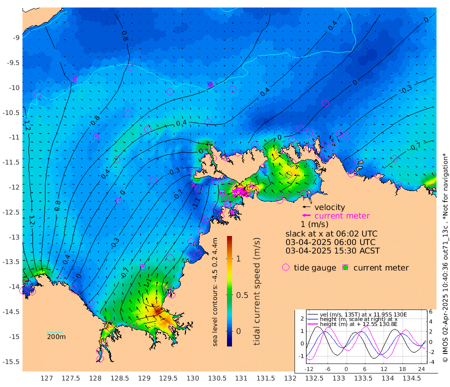 156cm/s -102T +4cm/s rms + 6cm/s 51T. Darwin_C1 52m 100cm/s -89T +4cm/s rms + 7cm/s -161T. Darwin_CW1 22m 89cm/s -107T +4cm/s rms + 8cm/s 61T. Darwin_CW2 34m 66cm/s -131T +3cm/s rms + 9cm/s 98T. Darwin_CW3 22m 126cm/s -91T +5cm/s rms + 7cm/s 88T. Darwin_C3 56m 88cm/s -115T +2cm/s rms + 9cm/s -126T. Darwin_CTbW 22m 7cm/s 134T +9cm/s rms + 2cm/s -110T. NWSLYN 196m 24cm/s -99T +1cm/s rms + 1cm/s -47T. DARBGF 30m 10cm/s 47T +7cm/s rms + 2cm/s -137T. ITFTIS 464m 13cm/s 55T +9cm/s rms + 1cm/s 74T. ITFMHB 146m 19cm/s 15T +4cm/s rms + 1cm/s -134T. ITFJBG 61m 16cm/s 55T +6cm/s rms + 4cm/s 121T. ITFFTB 108m 21cm/s -86T +4cm/s rms + 3cm/s 80T. NRSDAR 19m 160cm Carronade Island 163cm Guy Point 166cm Napier Broome Bay 69cm Lesueur Island -66cm Reveley Island -39cm Rocky Island -114cm Cape Domett -91cm Lacrosse Island -110cm Adolphus Island -44cm Pender Point -9cm Wyndham 57cm The Boxers 26cm Unnamed Shoal 101cm Loxton Shoal -150cm Pelican Island 63cm Calder Shoal 71cm Evans Shoal -149cm Quoin Island -141cm Port Keats -152cm Jones Point -82cm Catfish Island -97cm Cape Scott Offshore -88cm Cape Ford -119cm Anson Bay 53cm Goodrich Bank -106cm Peron Island North -93cm Point Jenny -92cm Native Point -110cm Fish Reef -118cm Tapa Bay -17cm Point Fawcett (Offshore) -128cm Burge Point -133cm Munkunuwa -61cm Beagle A -150cm Parsons Bank -115cm Fenton Patches 60cm Lynedoch Bank -137cm Hancox Shoal Area -135cm Nightcliff -153cm Darwin -122cm Charles Point Patches -97cm Glyde Point -62cm Chambers Bay -67cm Point Stuart -81cm Cape Hotham -52cm Christine Reef -73cm West Alligator Head -50cm East Field Island -61cm Two Hills Bay 10cm Newby Shoal -44cm Camp Point -121cm Medina Inlet South -14cm South Barlow Point 18cm St. Asaph Bay 47cm Cape Van Dieman 39cm Snake Bay 48cm Cache Point 126cm Echo Shoal 25cm Point Jahleel (Off) -18cm Cape Don 11cm Port Essington 9cm Smith Point - West 12cm NW Peacock Island 34cm North Of Jones Shoal 9cm Peacock Island -16cm Point David 3cm D'urville Point 24cm Money Shoal -20cm Copeland Island -23cm Cape Cockburn -9cm One Tree Point -20cm Hogmany Shoal -4cm New Year Island - West -15cm Grant Island -36cm Aurari Bay -51cm Cuthbert Point -33cm North Goulburn Island -51cm Paxie Shoal -74cm Entrance Island -92cm Yabooma Island