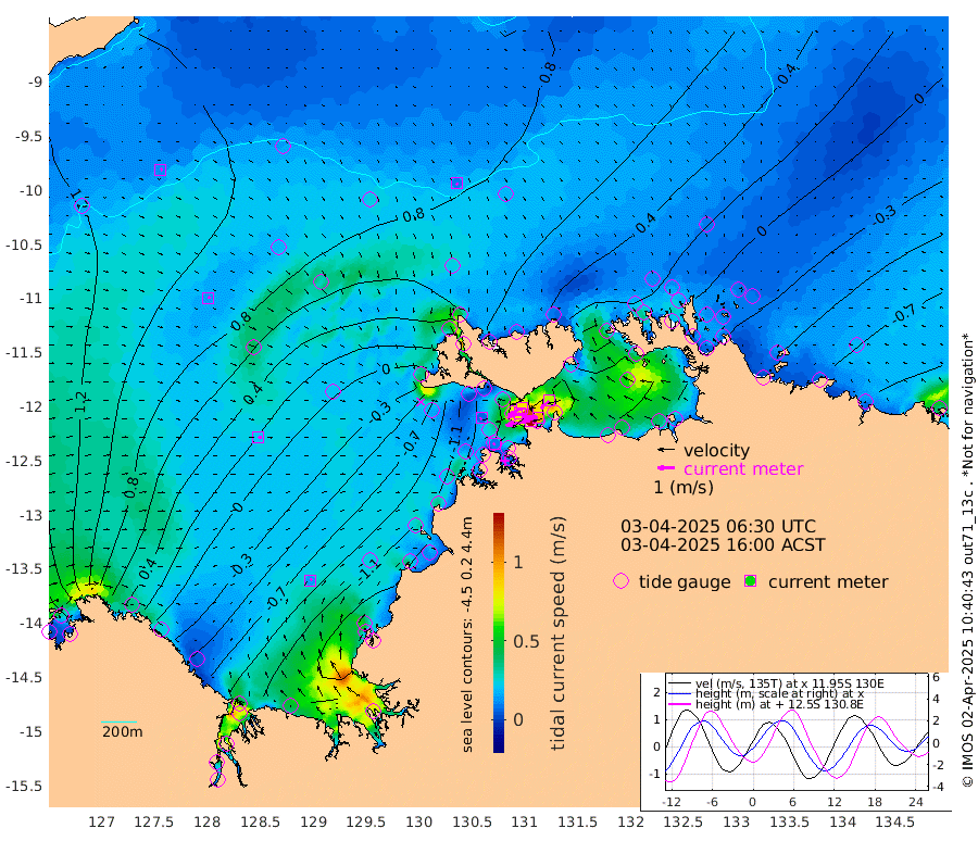 146cm/s -101T +4cm/s rms + 6cm/s 51T. Darwin_C1 52m 95cm/s -90T +4cm/s rms + 7cm/s -161T. Darwin_CW1 22m 74cm/s -107T +4cm/s rms + 8cm/s 61T. Darwin_CW2 34m 67cm/s -133T +3cm/s rms + 9cm/s 98T. Darwin_CW3 22m 115cm/s -91T +5cm/s rms + 7cm/s 88T. Darwin_C3 56m 82cm/s -115T +2cm/s rms + 9cm/s -126T. Darwin_CTbW 22m 9cm/s 135T +9cm/s rms + 2cm/s -110T. NWSLYN 196m 8cm/s -127T +1cm/s rms + 1cm/s -47T. DARBGF 30m 12cm/s 49T +7cm/s rms + 2cm/s -137T. ITFTIS 464m 14cm/s 65T +9cm/s rms + 1cm/s 74T. ITFMHB 146m 15cm/s 47T +4cm/s rms + 1cm/s -134T. ITFJBG 61m 21cm/s 80T +6cm/s rms + 4cm/s 121T. ITFFTB 108m 10cm/s -137T +4cm/s rms + 3cm/s 80T. NRSDAR 19m 137cm Carronade Island 139cm Guy Point 142cm Napier Broome Bay 57cm Lesueur Island -78cm Reveley Island -45cm Rocky Island -135cm Cape Domett -109cm Lacrosse Island -144cm Adolphus Island -100cm Pender Point -76cm Wyndham 71cm The Boxers 47cm Unnamed Shoal 114cm Loxton Shoal -164cm Pelican Island 81cm Calder Shoal 86cm Evans Shoal -196cm Quoin Island -138cm Port Keats -148cm Jones Point -146cm Catfish Island -81cm Cape Scott Offshore -50cm Cape Ford -98cm Anson Bay 73cm Goodrich Bank -84cm Peron Island North -70cm Point Jenny -68cm Native Point -86cm Fish Reef -95cm Tapa Bay 10cm Point Fawcett (Offshore) -107cm Burge Point -105cm Munkunuwa -37cm Beagle A -128cm Parsons Bank -95cm Fenton Patches 76cm Lynedoch Bank -121cm Hancox Shoal Area -117cm Nightcliff -133cm Darwin -97cm Charles Point Patches -98cm Glyde Point -87cm Chambers Bay -97cm Point Stuart -89cm Cape Hotham -75cm Christine Reef -110cm West Alligator Head -97cm East Field Island -76cm Two Hills Bay 29cm Newby Shoal -57cm Camp Point -96cm Medina Inlet South 15cm South Barlow Point 44cm St. Asaph Bay 69cm Cape Van Dieman 62cm Snake Bay 67cm Cache Point 132cm Echo Shoal 41cm Point Jahleel (Off) -10cm Cape Don 28cm Port Essington 26cm Smith Point - West 28cm NW Peacock Island 50cm North Of Jones Shoal 15cm Peacock Island -4cm Point David 20cm D'urville Point 38cm Money Shoal -10cm Copeland Island -10cm Cape Cockburn 3cm One Tree Point -11cm Hogmany Shoal 7cm New Year Island - West -5cm Grant Island -30cm Aurari Bay -50cm Cuthbert Point -26cm North Goulburn Island -55cm Paxie Shoal -82cm Entrance Island -108cm Yabooma Island