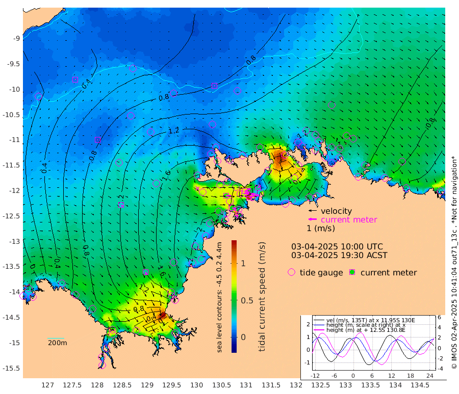 122cm/s 79T +4cm/s rms + 6cm/s 51T. Darwin_C1 52m 81cm/s 85T +4cm/s rms + 7cm/s -161T. Darwin_CW1 22m 68cm/s 75T +4cm/s rms + 8cm/s 61T. Darwin_CW2 34m 33cm/s 58T +3cm/s rms + 9cm/s 98T. Darwin_CW3 22m 87cm/s 88T +5cm/s rms + 7cm/s 88T. Darwin_C3 56m 78cm/s 62T +2cm/s rms + 9cm/s -126T. Darwin_CTbW 22m 6cm/s 111T +9cm/s rms + 2cm/s -110T. NWSLYN 196m 61cm/s 90T +1cm/s rms + 1cm/s -47T. DARBGF 30m 9cm/s 20T +7cm/s rms + 2cm/s -137T. ITFTIS 464m 6cm/s 74T +9cm/s rms + 1cm/s 74T. ITFMHB 146m 34cm/s 155T +4cm/s rms + 1cm/s -134T. ITFJBG 61m 25cm/s 125T +6cm/s rms + 4cm/s 121T. ITFFTB 108m 57cm/s 119T +4cm/s rms + 3cm/s 80T. NRSDAR 19m -78cm Carronade Island -85cm Guy Point -77cm Napier Broome Bay 9cm Lesueur Island 39cm Reveley Island 13cm Rocky Island 48cm Cape Domett 41cm Lacrosse Island 10cm Adolphus Island -93cm Pender Point -134cm Wyndham 81cm The Boxers 114cm Unnamed Shoal 45cm Loxton Shoal 76cm Pelican Island 82cm Calder Shoal 60cm Evans Shoal -18cm Quoin Island 132cm Port Keats 128cm Jones Point -98cm Catfish Island 141cm Cape Scott Offshore 231cm Cape Ford 168cm Anson Bay 87cm Goodrich Bank 167cm Peron Island North 161cm Point Jenny 164cm Native Point 175cm Fish Reef 175cm Tapa Bay 142cm Point Fawcett (Offshore) 179cm Burge Point 178cm Munkunuwa 157cm Beagle A 181cm Parsons Bank 170cm Fenton Patches 70cm Lynedoch Bank 159cm Hancox Shoal Area 166cm Nightcliff 190cm Darwin 195cm Charles Point Patches 95cm Glyde Point -6cm Chambers Bay -22cm Point Stuart 58cm Cape Hotham -6cm Christine Reef -39cm West Alligator Head -79cm East Field Island 23cm Two Hills Bay 129cm Newby Shoal 28cm Camp Point 184cm Medina Inlet South 145cm South Barlow Point 119cm St. Asaph Bay 94cm Cape Van Dieman 105cm Snake Bay 88cm Cache Point 11cm Echo Shoal 84cm Point Jahleel (Off) 85cm Cape Don 99cm Port Essington 97cm Smith Point - West 94cm NW Peacock Island 88cm North Of Jones Shoal 32cm Peacock Island 96cm Point David 101cm D'urville Point 89cm Money Shoal 92cm Copeland Island 120cm Cape Cockburn 96cm One Tree Point 102cm Hogmany Shoal 94cm New Year Island - West 96cm Grant Island 87cm Aurari Bay 80cm Cuthbert Point 92cm North Goulburn Island 66cm Paxie Shoal 58cm Entrance Island 36cm Yabooma Island
