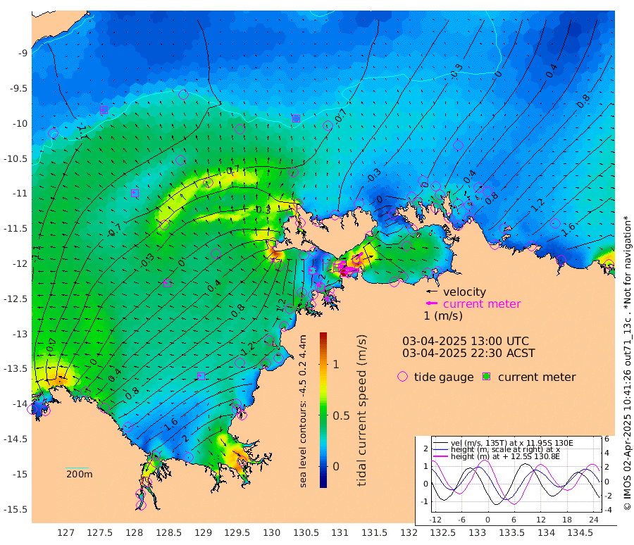 140cm/s 79T +4cm/s rms + 6cm/s 51T. Darwin_C1 52m 86cm/s 92T +4cm/s rms + 7cm/s -161T. Darwin_CW1 22m 60cm/s 71T +4cm/s rms + 8cm/s 61T. Darwin_CW2 34m 90cm/s 43T +3cm/s rms + 9cm/s 98T. Darwin_CW3 22m 104cm/s 90T +5cm/s rms + 7cm/s 88T. Darwin_C3 56m 70cm/s 65T +2cm/s rms + 9cm/s -126T. Darwin_CTbW 22m 11cm/s -23T +9cm/s rms + 2cm/s -110T. NWSLYN 196m 25cm/s -74T +1cm/s rms + 1cm/s -47T. DARBGF 30m 12cm/s -96T +7cm/s rms + 2cm/s -137T. ITFTIS 464m 19cm/s -46T +9cm/s rms + 1cm/s 74T. ITFMHB 146m 22cm/s -65T +4cm/s rms + 1cm/s -134T. ITFJBG 61m 38cm/s -65T +6cm/s rms + 4cm/s 121T. ITFFTB 108m 36cm/s -45T +4cm/s rms + 3cm/s 80T. NRSDAR 19m -83cm Carronade Island -88cm Guy Point -83cm Napier Broome Bay 4cm Lesueur Island 107cm Reveley Island 48cm Rocky Island 192cm Cape Domett 160cm Lacrosse Island 229cm Adolphus Island 202cm Pender Point 203cm Wyndham -54cm The Boxers -22cm Unnamed Shoal -107cm Loxton Shoal 212cm Pelican Island -79cm Calder Shoal -85cm Evans Shoal 292cm Quoin Island 168cm Port Keats 180cm Jones Point 270cm Catfish Island 82cm Cape Scott Offshore 40cm Cape Ford 98cm Anson Bay -66cm Goodrich Bank 86cm Peron Island North 65cm Point Jenny 62cm Native Point 84cm Fish Reef 91cm Tapa Bay -19cm Point Fawcett (Offshore) 112cm Burge Point 79cm Munkunuwa 36cm Beagle A 132cm Parsons Bank 102cm Fenton Patches -63cm Lynedoch Bank 133cm Hancox Shoal Area 119cm Nightcliff 148cm Darwin 110cm Charles Point Patches 141cm Glyde Point 155cm Chambers Bay 176cm Point Stuart 141cm Cape Hotham 138cm Christine Reef 193cm West Alligator Head 200cm East Field Island 137cm Two Hills Bay -8cm Newby Shoal 120cm Camp Point 91cm Medina Inlet South -23cm South Barlow Point -54cm St. Asaph Bay -65cm Cape Van Dieman -54cm Snake Bay -56cm Cache Point -124cm Echo Shoal -26cm Point Jahleel (Off) 42cm Cape Don -2cm Port Essington -4cm Smith Point - West 2cm NW Peacock Island -30cm North Of Jones Shoal -6cm Peacock Island 52cm Point David 10cm D'urville Point 3cm Money Shoal 59cm Copeland Island 75cm Cape Cockburn 43cm One Tree Point 76cm Hogmany Shoal 47cm New Year Island - West 58cm Grant Island 93cm Aurari Bay 128cm Cuthbert Point 89cm North Goulburn Island 135cm Paxie Shoal 169cm Entrance Island 212cm Yabooma Island