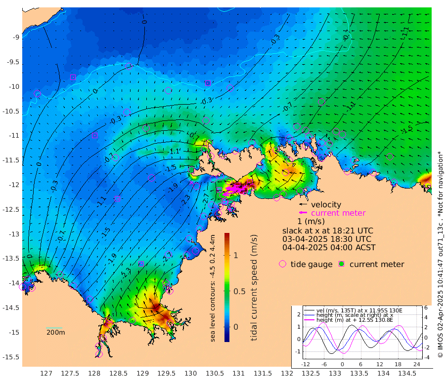 249cm/s -101T +4cm/s rms + 6cm/s 51T. Darwin_C1 52m 178cm/s -90T +4cm/s rms + 7cm/s -161T. Darwin_CW1 22m 116cm/s -106T +4cm/s rms + 8cm/s 61T. Darwin_CW2 34m 117cm/s -134T +3cm/s rms + 9cm/s 98T. Darwin_CW3 22m 185cm/s -90T +5cm/s rms + 7cm/s 88T. Darwin_C3 56m 143cm/s -115T +2cm/s rms + 9cm/s -126T. Darwin_CTbW 22m 6cm/s -117T +9cm/s rms + 2cm/s -110T. NWSLYN 196m 31cm/s -104T +1cm/s rms + 1cm/s -47T. DARBGF 30m 8cm/s 125T +7cm/s rms + 2cm/s -137T. ITFTIS 464m 7cm/s 104T +9cm/s rms + 1cm/s 74T. ITFMHB 146m 12cm/s 46T +4cm/s rms + 1cm/s -134T. ITFJBG 61m 12cm/s 100T +6cm/s rms + 4cm/s 121T. ITFFTB 108m 18cm/s -95T +4cm/s rms + 3cm/s 80T. NRSDAR 19m 7cm Carronade Island 5cm Guy Point 1cm Napier Broome Bay -111cm Lesueur Island -209cm Reveley Island -108cm Rocky Island -301cm Cape Domett -272cm Lacrosse Island -305cm Adolphus Island -236cm Pender Point -219cm Wyndham -72cm The Boxers -87cm Unnamed Shoal -2cm Loxton Shoal -319cm Pelican Island -52cm Calder Shoal -19cm Evans Shoal -358cm Quoin Island -315cm Port Keats -298cm Jones Point -308cm Catfish Island -238cm Cape Scott Offshore -259cm Cape Ford -262cm Anson Bay -37cm Goodrich Bank -246cm Peron Island North -231cm Point Jenny -228cm Native Point -248cm Fish Reef -258cm Tapa Bay -140cm Point Fawcett (Offshore) -278cm Burge Point -238cm Munkunuwa -198cm Beagle A -279cm Parsons Bank -259cm Fenton Patches -26cm Lynedoch Bank -273cm Hancox Shoal Area -278cm Nightcliff -308cm Darwin -283cm Charles Point Patches -234cm Glyde Point -190cm Chambers Bay -192cm Point Stuart -207cm Cape Hotham -181cm Christine Reef -202cm West Alligator Head -184cm East Field Island -182cm Two Hills Bay -157cm Newby Shoal -170cm Camp Point -259cm Medina Inlet South -119cm South Barlow Point -83cm St. Asaph Bay -41cm Cape Van Dieman -53cm Snake Bay -52cm Cache Point 31cm Echo Shoal -70cm Point Jahleel (Off) -129cm Cape Don -85cm Port Essington -85cm Smith Point - West -82cm NW Peacock Island -64cm North Of Jones Shoal -25cm Peacock Island -104cm Point David -89cm D'urville Point -75cm Money Shoal -105cm Copeland Island -145cm Cape Cockburn -106cm One Tree Point -138cm Hogmany Shoal -105cm New Year Island - West -114cm Grant Island -124cm Aurari Bay -152cm Cuthbert Point -133cm North Goulburn Island -157cm Paxie Shoal -164cm Entrance Island -178cm Yabooma Island