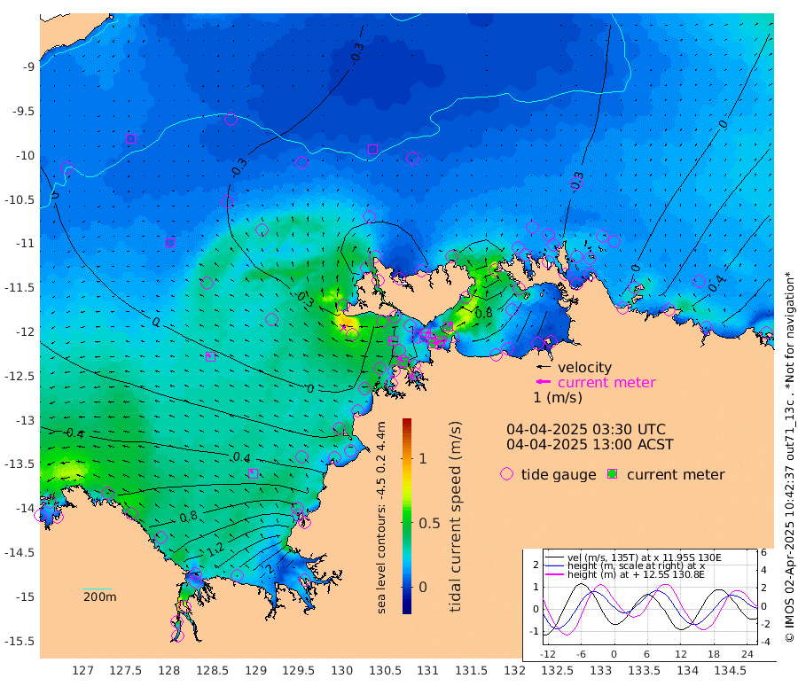 52cm/s 79T +4cm/s rms + 6cm/s 51T. Darwin_C1 52m 53cm/s 89T +4cm/s rms + 7cm/s -161T. Darwin_CW1 22m 5cm/s 76T +4cm/s rms + 8cm/s 61T. Darwin_CW2 34m 43cm/s 42T +3cm/s rms + 9cm/s 98T. Darwin_CW3 22m 27cm/s 95T +5cm/s rms + 7cm/s 88T. Darwin_C3 56m 31cm/s 68T +2cm/s rms + 9cm/s -126T. Darwin_CTbW 22m 3cm/s 7T +9cm/s rms + 2cm/s -110T. NWSLYN 196m 37cm/s -82T +1cm/s rms + 1cm/s -47T. DARBGF 30m 5cm/s -100T +7cm/s rms + 2cm/s -137T. ITFTIS 464m 6cm/s -71T +9cm/s rms + 1cm/s 74T. ITFMHB 146m 28cm/s -35T +4cm/s rms + 1cm/s -134T. ITFJBG 61m 27cm/s -54T +6cm/s rms + 4cm/s 121T. ITFFTB 108m 46cm/s -54T +4cm/s rms + 3cm/s 80T. NRSDAR 19m 120cm Carronade Island 127cm Guy Point 126cm Napier Broome Bay 110cm Lesueur Island 120cm Reveley Island 71cm Rocky Island 174cm Cape Domett 164cm Lacrosse Island 208cm Adolphus Island 265cm Pender Point 298cm Wyndham 9cm The Boxers -17cm Unnamed Shoal -8cm Loxton Shoal 152cm Pelican Island -8cm Calder Shoal -17cm Evans Shoal 260cm Quoin Island 104cm Port Keats 91cm Jones Point 315cm Catfish Island 45cm Cape Scott Offshore -6cm Cape Ford 33cm Anson Bay -31cm Goodrich Bank 25cm Peron Island North 25cm Point Jenny 21cm Native Point 22cm Fish Reef 27cm Tapa Bay -12cm Point Fawcett (Offshore) 38cm Burge Point 2cm Munkunuwa 12cm Beagle A 26cm Parsons Bank 36cm Fenton Patches -24cm Lynedoch Bank 45cm Hancox Shoal Area 46cm Nightcliff 41cm Darwin 26cm Charles Point Patches 82cm Glyde Point 146cm Chambers Bay 160cm Point Stuart 97cm Cape Hotham 142cm Christine Reef 183cm West Alligator Head 210cm East Field Island 113cm Two Hills Bay 24cm Newby Shoal 105cm Camp Point 17cm Medina Inlet South -35cm South Barlow Point -30cm St. Asaph Bay -36cm Cape Van Dieman -40cm Snake Bay -21cm Cache Point 3cm Echo Shoal -10cm Point Jahleel (Off) 25cm Cape Don -17cm Port Essington -16cm Smith Point - West -16cm NW Peacock Island -19cm North Of Jones Shoal -7cm Peacock Island -9cm Point David -19cm D'urville Point -14cm Money Shoal -6cm Copeland Island -1cm Cape Cockburn -6cm One Tree Point 11cm Hogmany Shoal -2cm New Year Island - West 0cm Grant Island 10cm Aurari Bay 34cm Cuthbert Point 13cm North Goulburn Island 50cm Paxie Shoal 57cm Entrance Island 81cm Yabooma Island