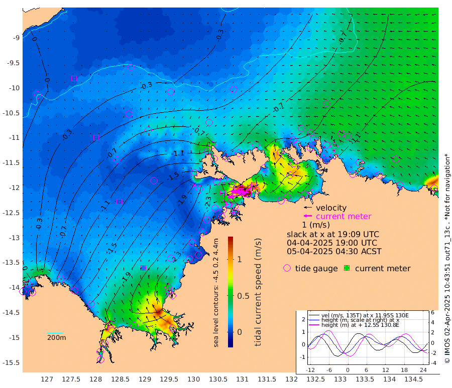 225cm/s -102T +4cm/s rms + 6cm/s 51T. Darwin_C1 52m 153cm/s -90T +4cm/s rms + 7cm/s -161T. Darwin_CW1 22m 100cm/s -106T +4cm/s rms + 8cm/s 61T. Darwin_CW2 34m 101cm/s -133T +3cm/s rms + 9cm/s 98T. Darwin_CW3 22m 158cm/s -90T +5cm/s rms + 7cm/s 88T. Darwin_C3 56m 130cm/s -115T +2cm/s rms + 9cm/s -126T. Darwin_CTbW 22m 6cm/s -84T +9cm/s rms + 2cm/s -110T. NWSLYN 196m 34cm/s -100T +1cm/s rms + 1cm/s -47T. DARBGF 30m 6cm/s 138T +7cm/s rms + 2cm/s -137T. ITFTIS 464m 4cm/s 68T +9cm/s rms + 1cm/s 74T. ITFMHB 146m 10cm/s 26T +4cm/s rms + 1cm/s -134T. ITFJBG 61m 5cm/s 74T +6cm/s rms + 4cm/s 121T. ITFFTB 108m 22cm/s -83T +4cm/s rms + 3cm/s 80T. NRSDAR 19m -10cm Carronade Island -12cm Guy Point -19cm Napier Broome Bay -100cm Lesueur Island -170cm Reveley Island -95cm Rocky Island -238cm Cape Domett -217cm Lacrosse Island -233cm Adolphus Island -178cm Pender Point -162cm Wyndham -79cm The Boxers -91cm Unnamed Shoal -25cm Loxton Shoal -251cm Pelican Island -64cm Calder Shoal -37cm Evans Shoal -276cm Quoin Island -254cm Port Keats -237cm Jones Point -253cm Catfish Island -205cm Cape Scott Offshore -213cm Cape Ford -224cm Anson Bay -48cm Goodrich Bank -212cm Peron Island North -197cm Point Jenny -195cm Native Point -211cm Fish Reef -218cm Tapa Bay -135cm Point Fawcett (Offshore) -229cm Burge Point -203cm Munkunuwa -169cm Beagle A -231cm Parsons Bank -212cm Fenton Patches -39cm Lynedoch Bank -224cm Hancox Shoal Area -230cm Nightcliff -254cm Darwin -238cm Charles Point Patches -189cm Glyde Point -146cm Chambers Bay -146cm Point Stuart -165cm Cape Hotham -140cm Christine Reef -153cm West Alligator Head -133cm East Field Island -147cm Two Hills Bay -144cm Newby Shoal -133cm Camp Point -221cm Medina Inlet South -115cm South Barlow Point -87cm St. Asaph Bay -52cm Cape Van Dieman -63cm Snake Bay -61cm Cache Point 5cm Echo Shoal -73cm Point Jahleel (Off) -116cm Cape Don -84cm Port Essington -84cm Smith Point - West -80cm NW Peacock Island -70cm North Of Jones Shoal -26cm Peacock Island -94cm Point David -86cm D'urville Point -73cm Money Shoal -93cm Copeland Island -129cm Cape Cockburn -98cm One Tree Point -121cm Hogmany Shoal -95cm New Year Island - West -102cm Grant Island -105cm Aurari Bay -125cm Cuthbert Point -114cm North Goulburn Island -128cm Paxie Shoal -126cm Entrance Island -129cm Yabooma Island