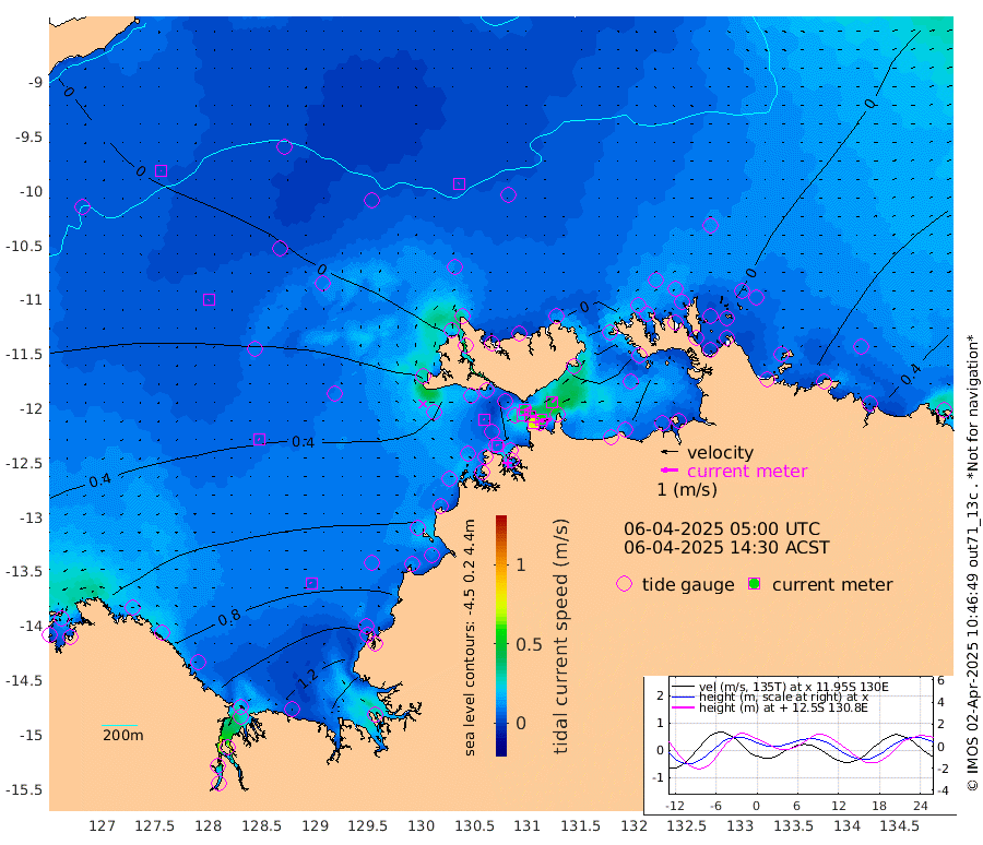 72cm/s 78T +4cm/s rms + 6cm/s 51T. Darwin_C1 52m 59cm/s 92T +4cm/s rms + 7cm/s -161T. Darwin_CW1 22m 26cm/s 74T +4cm/s rms + 8cm/s 61T. Darwin_CW2 34m 44cm/s 44T +3cm/s rms + 9cm/s 98T. Darwin_CW3 22m 43cm/s 91T +5cm/s rms + 7cm/s 88T. Darwin_C3 56m 43cm/s 67T +2cm/s rms + 9cm/s -126T. Darwin_CTbW 22m 2cm/s 55T +9cm/s rms + 2cm/s -110T. NWSLYN 196m 3cm/s -27T +1cm/s rms + 1cm/s -47T. DARBGF 30m 2cm/s -41T +7cm/s rms + 2cm/s -137T. ITFTIS 464m 3cm/s -155T +9cm/s rms + 1cm/s 74T. ITFMHB 146m 5cm/s -55T +4cm/s rms + 1cm/s -134T. ITFJBG 61m 5cm/s -60T +6cm/s rms + 4cm/s 121T. ITFFTB 108m 6cm/s -35T +4cm/s rms + 3cm/s 80T. NRSDAR 19m 85cm Carronade Island 86cm Guy Point 93cm Napier Broome Bay 94cm Lesueur Island 106cm Reveley Island 74cm Rocky Island 145cm Cape Domett 140cm Lacrosse Island 143cm Adolphus Island 168cm Pender Point 178cm Wyndham 37cm The Boxers 27cm Unnamed Shoal 7cm Loxton Shoal 131cm Pelican Island 23cm Calder Shoal 2cm Evans Shoal 168cm Quoin Island 116cm Port Keats 111cm Jones Point 211cm Catfish Island 79cm Cape Scott Offshore 80cm Cape Ford 76cm Anson Bay -2cm Goodrich Bank 67cm Peron Island North 76cm Point Jenny 74cm Native Point 76cm Fish Reef 78cm Tapa Bay 38cm Point Fawcett (Offshore) 88cm Burge Point 61cm Munkunuwa 68cm Beagle A 68cm Parsons Bank 85cm Fenton Patches -5cm Lynedoch Bank 75cm Hancox Shoal Area 84cm Nightcliff 81cm Darwin 71cm Charles Point Patches 87cm Glyde Point 107cm Chambers Bay 112cm Point Stuart 86cm Cape Hotham 101cm Christine Reef 125cm West Alligator Head 135cm East Field Island 86cm Two Hills Bay 64cm Newby Shoal 83cm Camp Point 69cm Medina Inlet South 14cm South Barlow Point 14cm St. Asaph Bay -3cm Cape Van Dieman -7cm Snake Bay 6cm Cache Point 9cm Echo Shoal 11cm Point Jahleel (Off) 34cm Cape Don 2cm Port Essington 2cm Smith Point - West -2cm NW Peacock Island -3cm North Of Jones Shoal -2cm Peacock Island -4cm Point David -4cm D'urville Point -5cm Money Shoal -4cm Copeland Island 1cm Cape Cockburn -1cm One Tree Point 6cm Hogmany Shoal 3cm New Year Island - West 2cm Grant Island 6cm Aurari Bay 16cm Cuthbert Point 9cm North Goulburn Island 26cm Paxie Shoal 27cm Entrance Island 30cm Yabooma Island