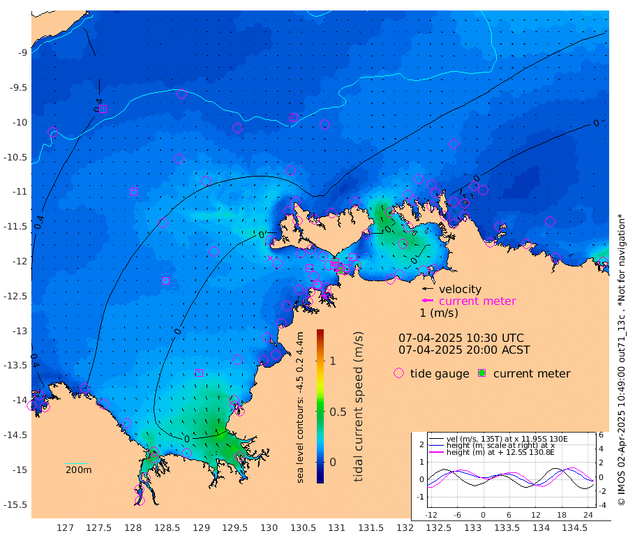56cm/s -102T +4cm/s rms + 6cm/s 51T. Darwin_C1 52m 19cm/s -86T +4cm/s rms + 7cm/s -161T. Darwin_CW1 22m 17cm/s -111T +4cm/s rms + 8cm/s 61T. Darwin_CW2 34m 22cm/s -129T +3cm/s rms + 9cm/s 98T. Darwin_CW3 22m 9cm/s -93T +5cm/s rms + 7cm/s 88T. Darwin_C3 56m 36cm/s -116T +2cm/s rms + 9cm/s -126T. Darwin_CTbW 22m 5cm/s 108T +9cm/s rms + 2cm/s -110T. NWSLYN 196m 17cm/s -87T +1cm/s rms + 1cm/s -47T. DARBGF 30m 7cm/s 14T +7cm/s rms + 2cm/s -137T. ITFTIS 464m 13cm/s 11T +9cm/s rms + 1cm/s 74T. ITFMHB 146m 18cm/s -17T +4cm/s rms + 1cm/s -134T. ITFJBG 61m 15cm/s -21T +6cm/s rms + 4cm/s 121T. ITFFTB 108m 18cm/s -61T +4cm/s rms + 3cm/s 80T. NRSDAR 19m 44cm Carronade Island 52cm Guy Point 53cm Napier Broome Bay 32cm Lesueur Island 4cm Reveley Island -12cm Rocky Island 5cm Cape Domett 0cm Lacrosse Island 13cm Adolphus Island 48cm Pender Point 51cm Wyndham 24cm The Boxers 16cm Unnamed Shoal 48cm Loxton Shoal -12cm Pelican Island 28cm Calder Shoal 31cm Evans Shoal 16cm Quoin Island -15cm Port Keats -23cm Jones Point -61cm Catfish Island -17cm Cape Scott Offshore -5cm Cape Ford -22cm Anson Bay 26cm Goodrich Bank -23cm Peron Island North -26cm Point Jenny -23cm Native Point -35cm Fish Reef -24cm Tapa Bay -5cm Point Fawcett (Offshore) -25cm Burge Point -25cm Munkunuwa -26cm Beagle A -27cm Parsons Bank -33cm Fenton Patches 31cm Lynedoch Bank -23cm Hancox Shoal Area -28cm Nightcliff -20cm Darwin -13cm Charles Point Patches -18cm Glyde Point -17cm Chambers Bay -20cm Point Stuart -19cm Cape Hotham -13cm Christine Reef -24cm West Alligator Head -18cm East Field Island -17cm Two Hills Bay 3cm Newby Shoal 0cm Camp Point -21cm Medina Inlet South 5cm South Barlow Point 11cm St. Asaph Bay 23cm Cape Van Dieman 26cm Snake Bay 18cm Cache Point 44cm Echo Shoal 13cm Point Jahleel (Off) 0cm Cape Don 11cm Port Essington 5cm Smith Point - West 9cm NW Peacock Island 17cm North Of Jones Shoal 5cm Peacock Island 8cm Point David 5cm D'urville Point 19cm Money Shoal 4cm Copeland Island 2cm Cape Cockburn 9cm One Tree Point 9cm Hogmany Shoal 9cm New Year Island - West 8cm Grant Island -7cm Aurari Bay -10cm Cuthbert Point -1cm North Goulburn Island 4cm Paxie Shoal -12cm Entrance Island -18cm Yabooma Island