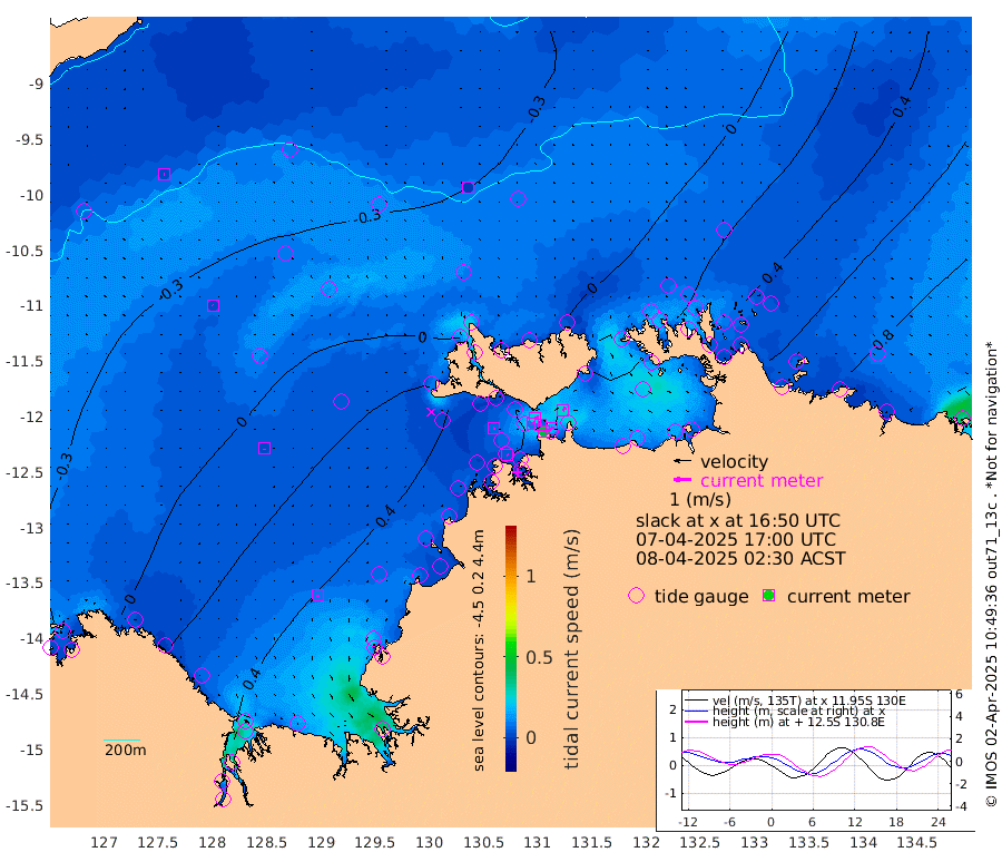 43cm/s 79T +4cm/s rms + 6cm/s 51T. Darwin_C1 52m 16cm/s 83T +4cm/s rms + 7cm/s -161T. Darwin_CW1 22m 9cm/s 74T +4cm/s rms + 8cm/s 61T. Darwin_CW2 34m 25cm/s 42T +3cm/s rms + 9cm/s 98T. Darwin_CW3 22m 7cm/s 93T +5cm/s rms + 7cm/s 88T. Darwin_C3 56m 24cm/s 64T +2cm/s rms + 9cm/s -126T. Darwin_CTbW 22m 0cm/s -156T +9cm/s rms + 2cm/s -110T. NWSLYN 196m 7cm/s 92T +1cm/s rms + 1cm/s -47T. DARBGF 30m 3cm/s -95T +7cm/s rms + 2cm/s -137T. ITFTIS 464m 3cm/s -57T +9cm/s rms + 1cm/s 74T. ITFMHB 146m 9cm/s 160T +4cm/s rms + 1cm/s -134T. ITFJBG 61m 3cm/s -170T +6cm/s rms + 4cm/s 121T. ITFFTB 108m 5cm/s 112T +4cm/s rms + 3cm/s 80T. NRSDAR 19m -36cm Carronade Island -43cm Guy Point -43cm Napier Broome Bay -15cm Lesueur Island 10cm Reveley Island -33cm Rocky Island 22cm Cape Domett 24cm Lacrosse Island 18cm Adolphus Island -5cm Pender Point -2cm Wyndham -23cm The Boxers -4cm Unnamed Shoal -55cm Loxton Shoal 43cm Pelican Island -33cm Calder Shoal -35cm Evans Shoal 30cm Quoin Island 35cm Port Keats 51cm Jones Point 115cm Catfish Island 29cm Cape Scott Offshore 16cm Cape Ford 40cm Anson Bay -25cm Goodrich Bank 36cm Peron Island North 33cm Point Jenny 28cm Native Point 42cm Fish Reef 35cm Tapa Bay 8cm Point Fawcett (Offshore) 39cm Burge Point 25cm Munkunuwa 24cm Beagle A 44cm Parsons Bank 38cm Fenton Patches -28cm Lynedoch Bank 44cm Hancox Shoal Area 42cm Nightcliff 44cm Darwin 36cm Charles Point Patches 46cm Glyde Point 57cm Chambers Bay 61cm Point Stuart 52cm Cape Hotham 43cm Christine Reef 65cm West Alligator Head 63cm East Field Island 50cm Two Hills Bay -6cm Newby Shoal 37cm Camp Point 31cm Medina Inlet South -6cm South Barlow Point -14cm St. Asaph Bay -21cm Cape Van Dieman -21cm Snake Bay -13cm Cache Point -52cm Echo Shoal -5cm Point Jahleel (Off) 23cm Cape Don 9cm Port Essington 9cm Smith Point - West 11cm NW Peacock Island 0cm North Of Jones Shoal 3cm Peacock Island 35cm Point David 16cm D'urville Point 14cm Money Shoal 39cm Copeland Island 53cm Cape Cockburn 31cm One Tree Point 48cm Hogmany Shoal 31cm New Year Island - West 34cm Grant Island 56cm Aurari Bay 69cm Cuthbert Point 54cm North Goulburn Island 71cm Paxie Shoal 87cm Entrance Island 113cm Yabooma Island