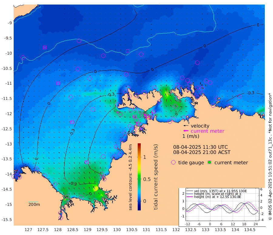 71cm/s -102T +4cm/s rms + 6cm/s 51T. Darwin_C1 52m 39cm/s -87T +4cm/s rms + 7cm/s -161T. Darwin_CW1 22m 37cm/s -109T +4cm/s rms + 8cm/s 61T. Darwin_CW2 34m 27cm/s -130T +3cm/s rms + 9cm/s 98T. Darwin_CW3 22m 35cm/s -92T +5cm/s rms + 7cm/s 88T. Darwin_C3 56m 43cm/s -116T +2cm/s rms + 9cm/s -126T. Darwin_CTbW 22m 3cm/s 116T +9cm/s rms + 2cm/s -110T. NWSLYN 196m 34cm/s -89T +1cm/s rms + 1cm/s -47T. DARBGF 30m 4cm/s 4T +7cm/s rms + 2cm/s -137T. ITFTIS 464m 12cm/s 2T +9cm/s rms + 1cm/s 74T. ITFMHB 146m 25cm/s -22T +4cm/s rms + 1cm/s -134T. ITFJBG 61m 21cm/s -34T +6cm/s rms + 4cm/s 121T. ITFFTB 108m 33cm/s -60T +4cm/s rms + 3cm/s 80T. NRSDAR 19m 46cm Carronade Island 56cm Guy Point 55cm Napier Broome Bay 14cm Lesueur Island -18cm Reveley Island -20cm Rocky Island -22cm Cape Domett -28cm Lacrosse Island -5cm Adolphus Island 53cm Pender Point 64cm Wyndham -3cm The Boxers -12cm Unnamed Shoal 33cm Loxton Shoal -43cm Pelican Island 1cm Calder Shoal 14cm Evans Shoal 4cm Quoin Island -61cm Port Keats -66cm Jones Point -54cm Catfish Island -62cm Cape Scott Offshore -78cm Cape Ford -73cm Anson Bay 4cm Goodrich Bank -71cm Peron Island North -77cm Point Jenny -75cm Native Point -88cm Fish Reef -77cm Tapa Bay -47cm Point Fawcett (Offshore) -82cm Burge Point -76cm Munkunuwa -78cm Beagle A -76cm Parsons Bank -89cm Fenton Patches 14cm Lynedoch Bank -69cm Hancox Shoal Area -82cm Nightcliff -75cm Darwin -69cm Charles Point Patches -49cm Glyde Point -26cm Chambers Bay -23cm Point Stuart -40cm Cape Hotham -21cm Christine Reef -23cm West Alligator Head -10cm East Field Island -27cm Two Hills Bay -41cm Newby Shoal -15cm Camp Point -75cm Medina Inlet South -33cm South Barlow Point -23cm St. Asaph Bay -1cm Cape Van Dieman 2cm Snake Bay -5cm Cache Point 33cm Echo Shoal -8cm Point Jahleel (Off) -21cm Cape Don -9cm Port Essington -15cm Smith Point - West -9cm NW Peacock Island -2cm North Of Jones Shoal -2cm Peacock Island -6cm Point David -14cm D'urville Point 1cm Money Shoal -9cm Copeland Island -17cm Cape Cockburn -7cm One Tree Point -4cm Hogmany Shoal -6cm New Year Island - West -6cm Grant Island -19cm Aurari Bay -18cm Cuthbert Point -14cm North Goulburn Island -4cm Paxie Shoal -17cm Entrance Island -18cm Yabooma Island