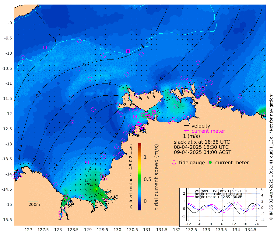 50cm/s 79T +4cm/s rms + 6cm/s 51T. Darwin_C1 52m 33cm/s 91T +4cm/s rms + 7cm/s -161T. Darwin_CW1 22m 32cm/s 73T +4cm/s rms + 8cm/s 61T. Darwin_CW2 34m 32cm/s 39T +3cm/s rms + 9cm/s 98T. Darwin_CW3 22m 43cm/s 89T +5cm/s rms + 7cm/s 88T. Darwin_C3 56m 23cm/s 65T +2cm/s rms + 9cm/s -126T. Darwin_CTbW 22m 1cm/s 2T +9cm/s rms + 2cm/s -110T. NWSLYN 196m 18cm/s 86T +1cm/s rms + 1cm/s -47T. DARBGF 30m 3cm/s -84T +7cm/s rms + 2cm/s -137T. ITFTIS 464m 3cm/s -88T +9cm/s rms + 1cm/s 74T. ITFMHB 146m 14cm/s 170T +4cm/s rms + 1cm/s -134T. ITFJBG 61m 5cm/s 179T +6cm/s rms + 4cm/s 121T. ITFFTB 108m 17cm/s 118T +4cm/s rms + 3cm/s 80T. NRSDAR 19m -57cm Carronade Island -63cm Guy Point -67cm Napier Broome Bay -8cm Lesueur Island 42cm Reveley Island -24cm Rocky Island 67cm Cape Domett 67cm Lacrosse Island 57cm Adolphus Island 15cm Pender Point 7cm Wyndham -18cm The Boxers 1cm Unnamed Shoal -60cm Loxton Shoal 92cm Pelican Island -24cm Calder Shoal -37cm Evans Shoal 73cm Quoin Island 91cm Port Keats 105cm Jones Point 113cm Catfish Island 73cm Cape Scott Offshore 92cm Cape Ford 89cm Anson Bay -23cm Goodrich Bank 80cm Peron Island North 78cm Point Jenny 74cm Native Point 92cm Fish Reef 87cm Tapa Bay 34cm Point Fawcett (Offshore) 97cm Burge Point 78cm Munkunuwa 66cm Beagle A 95cm Parsons Bank 93cm Fenton Patches -30cm Lynedoch Bank 93cm Hancox Shoal Area 97cm Nightcliff 101cm Darwin 90cm Charles Point Patches 79cm Glyde Point 72cm Chambers Bay 71cm Point Stuart 76cm Cape Hotham 56cm Christine Reef 74cm West Alligator Head 68cm East Field Island 61cm Two Hills Bay 18cm Newby Shoal 54cm Camp Point 83cm Medina Inlet South 16cm South Barlow Point 3cm St. Asaph Bay -18cm Cape Van Dieman -18cm Snake Bay -11cm Cache Point -61cm Echo Shoal -1cm Point Jahleel (Off) 31cm Cape Don 11cm Port Essington 10cm Smith Point - West 9cm NW Peacock Island -1cm North Of Jones Shoal 2cm Peacock Island 31cm Point David 15cm D'urville Point 11cm Money Shoal 36cm Copeland Island 49cm Cape Cockburn 28cm One Tree Point 42cm Hogmany Shoal 27cm New Year Island - West 30cm Grant Island 52cm Aurari Bay 62cm Cuthbert Point 50cm North Goulburn Island 67cm Paxie Shoal 85cm Entrance Island 112cm Yabooma Island