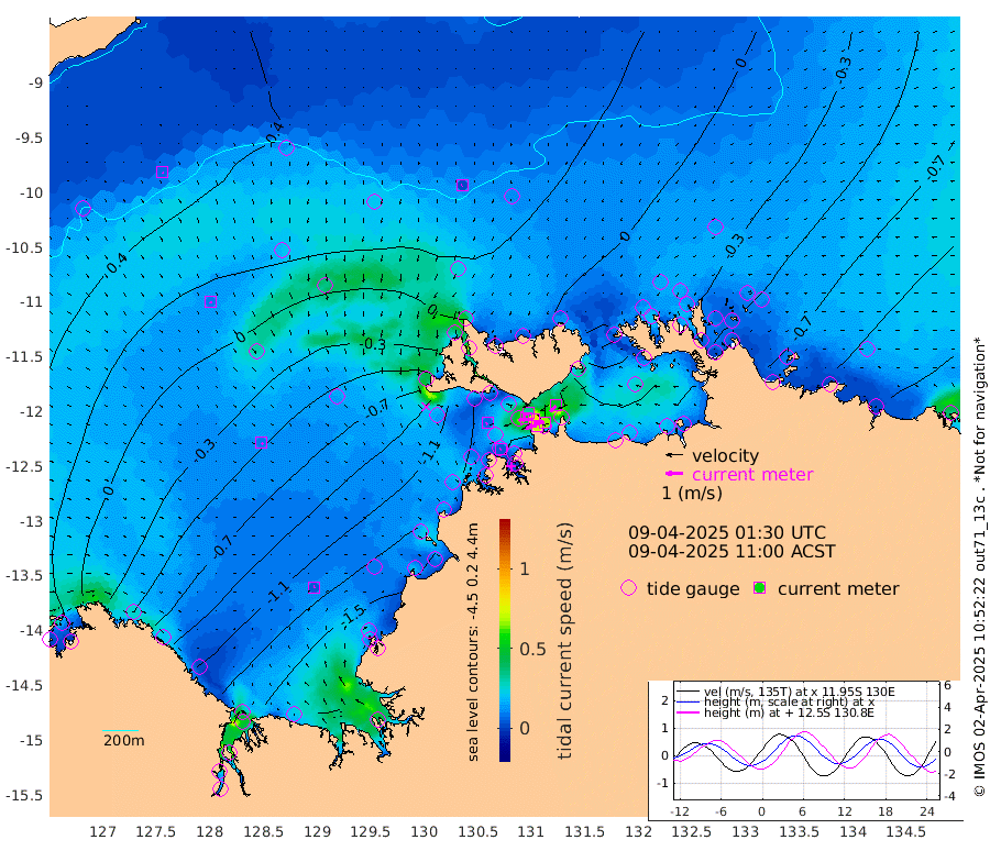 71cm/s -101T +4cm/s rms + 6cm/s 51T. Darwin_C1 52m 65cm/s -91T +4cm/s rms + 7cm/s -161T. Darwin_CW1 22m 46cm/s -106T +4cm/s rms + 8cm/s 61T. Darwin_CW2 34m 48cm/s -139T +3cm/s rms + 9cm/s 98T. Darwin_CW3 22m 79cm/s -90T +5cm/s rms + 7cm/s 88T. Darwin_C3 56m 33cm/s -115T +2cm/s rms + 9cm/s -126T. Darwin_CTbW 22m 3cm/s -118T +9cm/s rms + 2cm/s -110T. NWSLYN 196m 8cm/s -123T +1cm/s rms + 1cm/s -47T. DARBGF 30m 7cm/s 147T +7cm/s rms + 2cm/s -137T. ITFTIS 464m 9cm/s 159T +9cm/s rms + 1cm/s 74T. ITFMHB 146m 5cm/s 55T +4cm/s rms + 1cm/s -134T. ITFJBG 61m 10cm/s 124T +6cm/s rms + 4cm/s 121T. ITFFTB 108m 4cm/s -118T +4cm/s rms + 3cm/s 80T. NRSDAR 19m 27cm Carronade Island 28cm Guy Point 26cm Napier Broome Bay -41cm Lesueur Island -104cm Reveley Island -15cm Rocky Island -162cm Cape Domett -148cm Lacrosse Island -152cm Adolphus Island -139cm Pender Point -126cm Wyndham -5cm The Boxers -26cm Unnamed Shoal 45cm Loxton Shoal -176cm Pelican Island 8cm Calder Shoal 31cm Evans Shoal -190cm Quoin Island -161cm Port Keats -176cm Jones Point -177cm Catfish Island -116cm Cape Scott Offshore -149cm Cape Ford -132cm Anson Bay 17cm Goodrich Bank -113cm Peron Island North -111cm Point Jenny -109cm Native Point -123cm Fish Reef -130cm Tapa Bay -49cm Point Fawcett (Offshore) -144cm Burge Point -116cm Munkunuwa -88cm Beagle A -136cm Parsons Bank -130cm Fenton Patches 23cm Lynedoch Bank -136cm Hancox Shoal Area -138cm Nightcliff -156cm Darwin -140cm Charles Point Patches -125cm Glyde Point -117cm Chambers Bay -118cm Point Stuart -115cm Cape Hotham -96cm Christine Reef -126cm West Alligator Head -123cm East Field Island -96cm Two Hills Bay -42cm Newby Shoal -99cm Camp Point -125cm Medina Inlet South -28cm South Barlow Point -11cm St. Asaph Bay 13cm Cape Van Dieman 11cm Snake Bay 8cm Cache Point 55cm Echo Shoal -5cm Point Jahleel (Off) -46cm Cape Don -15cm Port Essington -8cm Smith Point - West -8cm NW Peacock Island 2cm North Of Jones Shoal -1cm Peacock Island -36cm Point David -12cm D'urville Point -13cm Money Shoal -38cm Copeland Island -48cm Cape Cockburn -32cm One Tree Point -51cm Hogmany Shoal -33cm New Year Island - West -36cm Grant Island -53cm Aurari Bay -68cm Cuthbert Point -56cm North Goulburn Island -90cm Paxie Shoal -98cm Entrance Island -122cm Yabooma Island