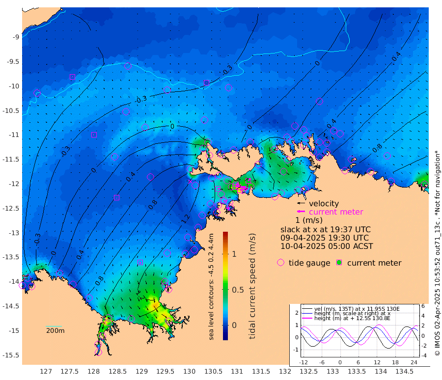 80cm/s 79T +4cm/s rms + 6cm/s 51T. Darwin_C1 52m 63cm/s 93T +4cm/s rms + 7cm/s -161T. Darwin_CW1 22m 60cm/s 72T +4cm/s rms + 8cm/s 61T. Darwin_CW2 34m 46cm/s 41T +3cm/s rms + 9cm/s 98T. Darwin_CW3 22m 89cm/s 89T +5cm/s rms + 7cm/s 88T. Darwin_C3 56m 35cm/s 66T +2cm/s rms + 9cm/s -126T. Darwin_CTbW 22m 2cm/s 12T +9cm/s rms + 2cm/s -110T. NWSLYN 196m 25cm/s 83T +1cm/s rms + 1cm/s -47T. DARBGF 30m 4cm/s -82T +7cm/s rms + 2cm/s -137T. ITFTIS 464m 4cm/s -103T +9cm/s rms + 1cm/s 74T. ITFMHB 146m 17cm/s 180T +4cm/s rms + 1cm/s -134T. ITFJBG 61m 6cm/s -161T +6cm/s rms + 4cm/s 121T. ITFFTB 108m 21cm/s 115T +4cm/s rms + 3cm/s 80T. NRSDAR 19m -73cm Carronade Island -77cm Guy Point -85cm Napier Broome Bay 4cm Lesueur Island 80cm Reveley Island -8cm Rocky Island 122cm Cape Domett 117cm Lacrosse Island 110cm Adolphus Island 51cm Pender Point 35cm Wyndham -9cm The Boxers 11cm Unnamed Shoal -61cm Loxton Shoal 151cm Pelican Island -15cm Calder Shoal -35cm Evans Shoal 139cm Quoin Island 151cm Port Keats 162cm Jones Point 141cm Catfish Island 120cm Cape Scott Offshore 150cm Cape Ford 141cm Anson Bay -19cm Goodrich Bank 127cm Peron Island North 121cm Point Jenny 117cm Native Point 139cm Fish Reef 138cm Tapa Bay 60cm Point Fawcett (Offshore) 151cm Burge Point 130cm Munkunuwa 103cm Beagle A 148cm Parsons Bank 143cm Fenton Patches -28cm Lynedoch Bank 144cm Hancox Shoal Area 152cm Nightcliff 162cm Darwin 146cm Charles Point Patches 116cm Glyde Point 95cm Chambers Bay 91cm Point Stuart 106cm Cape Hotham 76cm Christine Reef 95cm West Alligator Head 84cm East Field Island 81cm Two Hills Bay 41cm Newby Shoal 76cm Camp Point 135cm Medina Inlet South 39cm South Barlow Point 19cm St. Asaph Bay -13cm Cape Van Dieman -11cm Snake Bay -7cm Cache Point -67cm Echo Shoal 6cm Point Jahleel (Off) 44cm Cape Don 18cm Port Essington 16cm Smith Point - West 14cm NW Peacock Island 4cm North Of Jones Shoal 4cm Peacock Island 36cm Point David 20cm D'urville Point 13cm Money Shoal 40cm Copeland Island 55cm Cape Cockburn 34cm One Tree Point 47cm Hogmany Shoal 32cm New Year Island - West 35cm Grant Island 57cm Aurari Bay 67cm Cuthbert Point 56cm North Goulburn Island 76cm Paxie Shoal 92cm Entrance Island 120cm Yabooma Island