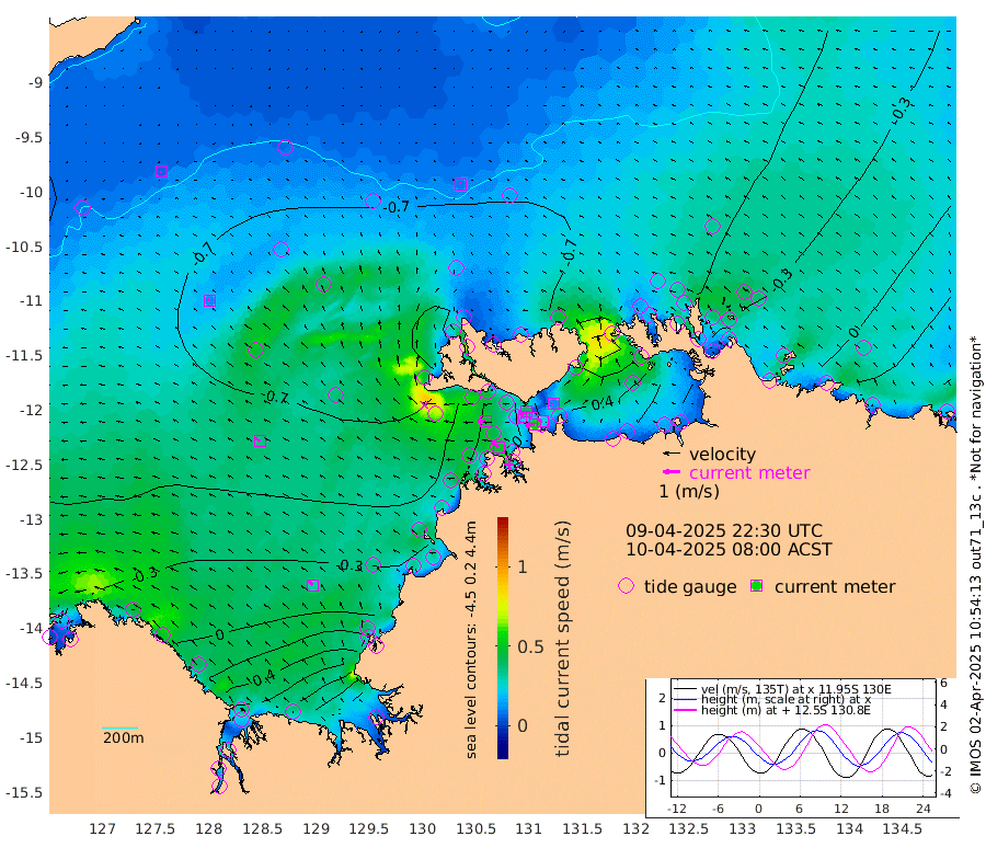 54cm/s -103T +4cm/s rms + 6cm/s 51T. Darwin_C1 52m 24cm/s -85T +4cm/s rms + 7cm/s -161T. Darwin_CW1 22m 22cm/s -107T +4cm/s rms + 8cm/s 61T. Darwin_CW2 34m 11cm/s -88T +3cm/s rms + 9cm/s 98T. Darwin_CW3 22m 16cm/s -96T +5cm/s rms + 7cm/s 88T. Darwin_C3 56m 40cm/s -116T +2cm/s rms + 9cm/s -126T. Darwin_CTbW 22m 10cm/s -30T +9cm/s rms + 2cm/s -110T. NWSLYN 196m 46cm/s -86T +1cm/s rms + 1cm/s -47T. DARBGF 30m 8cm/s -113T +7cm/s rms + 2cm/s -137T. ITFTIS 464m 13cm/s -42T +9cm/s rms + 1cm/s 74T. ITFMHB 146m 29cm/s -39T +4cm/s rms + 1cm/s -134T. ITFJBG 61m 34cm/s -55T +6cm/s rms + 4cm/s 121T. ITFFTB 108m 48cm/s -55T +4cm/s rms + 3cm/s 80T. NRSDAR 19m -8cm Carronade Island -4cm Guy Point -18cm Napier Broome Bay 0cm Lesueur Island 38cm Reveley Island 0cm Rocky Island 79cm Cape Domett 64cm Lacrosse Island 125cm Adolphus Island 149cm Pender Point 168cm Wyndham -66cm The Boxers -81cm Unnamed Shoal -60cm Loxton Shoal 69cm Pelican Island -69cm Calder Shoal -59cm Evans Shoal 163cm Quoin Island 27cm Port Keats 29cm Jones Point 106cm Catfish Island -32cm Cape Scott Offshore -29cm Cape Ford -40cm Anson Bay -65cm Goodrich Bank -35cm Peron Island North -48cm Point Jenny -50cm Native Point -40cm Fish Reef -41cm Tapa Bay -76cm Point Fawcett (Offshore) -18cm Burge Point -42cm Munkunuwa -51cm Beagle A -18cm Parsons Bank -23cm Fenton Patches -56cm Lynedoch Bank -9cm Hancox Shoal Area -20cm Nightcliff -9cm Darwin -28cm Charles Point Patches 21cm Glyde Point 65cm Chambers Bay 82cm Point Stuart 38cm Cape Hotham 62cm Christine Reef 96cm West Alligator Head 121cm East Field Island 43cm Two Hills Bay -57cm Newby Shoal 43cm Camp Point -38cm Medina Inlet South -72cm South Barlow Point -74cm St. Asaph Bay -70cm Cape Van Dieman -70cm Snake Bay -63cm Cache Point -52cm Echo Shoal -49cm Point Jahleel (Off) -25cm Cape Don -46cm Port Essington -48cm Smith Point - West -44cm NW Peacock Island -52cm North Of Jones Shoal -18cm Peacock Island -28cm Point David -45cm D'urville Point -37cm Money Shoal -22cm Copeland Island -26cm Cape Cockburn -30cm One Tree Point -20cm Hogmany Shoal -29cm New Year Island - West -25cm Grant Island -11cm Aurari Bay 7cm Cuthbert Point -12cm North Goulburn Island 16cm Paxie Shoal 39cm Entrance Island 75cm Yabooma Island