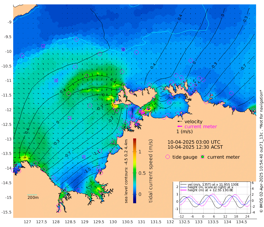 55cm/s -100T +4cm/s rms + 6cm/s 51T. Darwin_C1 52m 60cm/s -92T +4cm/s rms + 7cm/s -161T. Darwin_CW1 22m 42cm/s -106T +4cm/s rms + 8cm/s 61T. Darwin_CW2 34m 49cm/s -139T +3cm/s rms + 9cm/s 98T. Darwin_CW3 22m 82cm/s -91T +5cm/s rms + 7cm/s 88T. Darwin_C3 56m 16cm/s -116T +2cm/s rms + 9cm/s -126T. Darwin_CTbW 22m 4cm/s -170T +9cm/s rms + 2cm/s -110T. NWSLYN 196m 17cm/s 113T +1cm/s rms + 1cm/s -47T. DARBGF 30m 8cm/s 114T +7cm/s rms + 2cm/s -137T. ITFTIS 464m 14cm/s 145T +9cm/s rms + 1cm/s 74T. ITFMHB 146m 16cm/s 114T +4cm/s rms + 1cm/s -134T. ITFJBG 61m 26cm/s 122T +6cm/s rms + 4cm/s 121T. ITFFTB 108m 22cm/s 137T +4cm/s rms + 3cm/s 80T. NRSDAR 19m 50cm Carronade Island 47cm Guy Point 51cm Napier Broome Bay -24cm Lesueur Island -111cm Reveley Island -15cm Rocky Island -183cm Cape Domett -161cm Lacrosse Island -192cm Adolphus Island -191cm Pender Point -182cm Wyndham 30cm The Boxers 15cm Unnamed Shoal 71cm Loxton Shoal -196cm Pelican Island 43cm Calder Shoal 58cm Evans Shoal -252cm Quoin Island -160cm Port Keats -177cm Jones Point -203cm Catfish Island -95cm Cape Scott Offshore -116cm Cape Ford -108cm Anson Bay 47cm Goodrich Bank -89cm Peron Island North -78cm Point Jenny -76cm Native Point -92cm Fish Reef -103cm Tapa Bay -9cm Point Fawcett (Offshore) -120cm Burge Point -94cm Munkunuwa -50cm Beagle A -120cm Parsons Bank -103cm Fenton Patches 48cm Lynedoch Bank -123cm Hancox Shoal Area -117cm Nightcliff -142cm Darwin -118cm Charles Point Patches -121cm Glyde Point -128cm Chambers Bay -135cm Point Stuart -116cm Cape Hotham -105cm Christine Reef -148cm West Alligator Head -153cm East Field Island -100cm Two Hills Bay 0cm Newby Shoal -103cm Camp Point -100cm Medina Inlet South 7cm South Barlow Point 25cm St. Asaph Bay 45cm Cape Van Dieman 42cm Snake Bay 40cm Cache Point 81cm Echo Shoal 21cm Point Jahleel (Off) -27cm Cape Don 9cm Port Essington 18cm Smith Point - West 16cm NW Peacock Island 29cm North Of Jones Shoal 8cm Peacock Island -19cm Point David 13cm D'urville Point 10cm Money Shoal -22cm Copeland Island -26cm Cape Cockburn -13cm One Tree Point -35cm Hogmany Shoal -13cm New Year Island - West -19cm Grant Island -40cm Aurari Bay -60cm Cuthbert Point -41cm North Goulburn Island -86cm Paxie Shoal -101cm Entrance Island -136cm Yabooma Island