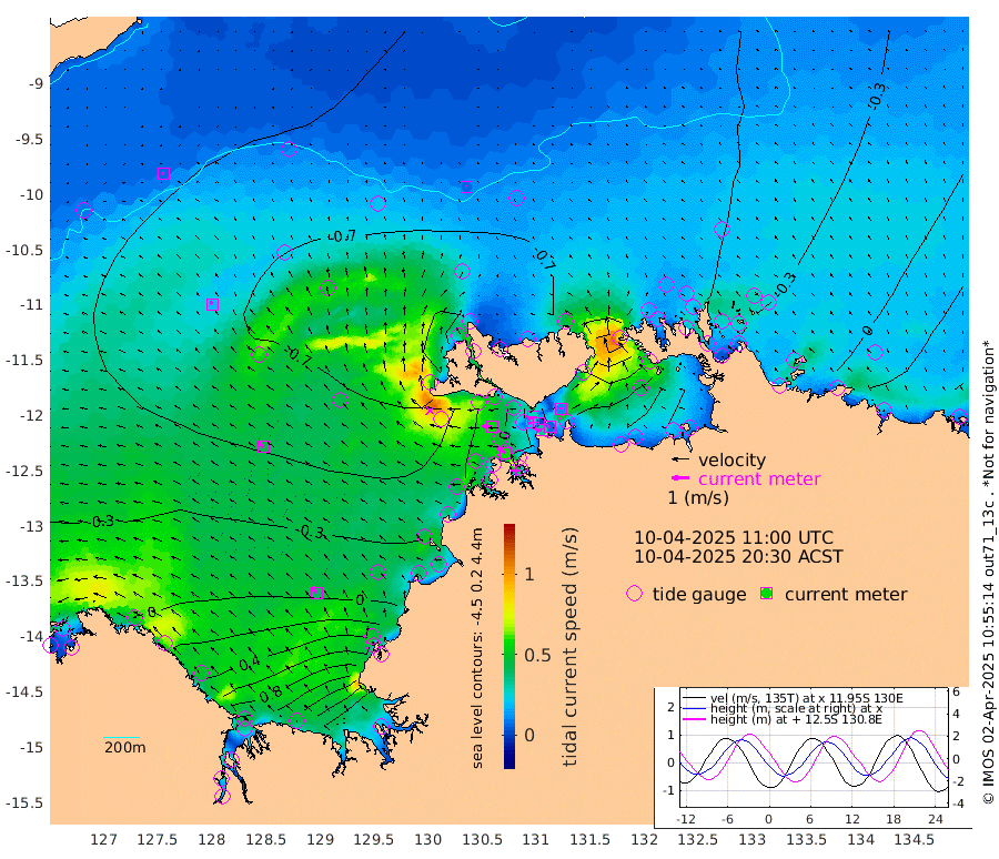 33cm/s -102T +4cm/s rms + 6cm/s 51T. Darwin_C1 52m 7cm/s -83T +4cm/s rms + 7cm/s -161T. Darwin_CW1 22m 19cm/s -111T +4cm/s rms + 8cm/s 61T. Darwin_CW2 34m 11cm/s 11T +3cm/s rms + 9cm/s 98T. Darwin_CW3 22m 3cm/s 167T +5cm/s rms + 7cm/s 88T. Darwin_C3 56m 29cm/s -116T +2cm/s rms + 9cm/s -126T. Darwin_CTbW 22m 7cm/s -20T +9cm/s rms + 2cm/s -110T. NWSLYN 196m 56cm/s -85T +1cm/s rms + 1cm/s -47T. DARBGF 30m 6cm/s -78T +7cm/s rms + 2cm/s -137T. ITFTIS 464m 19cm/s -25T +9cm/s rms + 1cm/s 74T. ITFMHB 146m 41cm/s -34T +4cm/s rms + 1cm/s -134T. ITFJBG 61m 44cm/s -51T +6cm/s rms + 4cm/s 121T. ITFFTB 108m 58cm/s -54T +4cm/s rms + 3cm/s 80T. NRSDAR 19m 19cm Carronade Island 25cm Guy Point 27cm Napier Broome Bay 24cm Lesueur Island 56cm Reveley Island 41cm Rocky Island 111cm Cape Domett 85cm Lacrosse Island 153cm Adolphus Island 222cm Pender Point 236cm Wyndham -48cm The Boxers -57cm Unnamed Shoal -43cm Loxton Shoal 92cm Pelican Island -61cm Calder Shoal -54cm Evans Shoal 202cm Quoin Island 37cm Port Keats 46cm Jones Point 137cm Catfish Island -30cm Cape Scott Offshore -35cm Cape Ford -40cm Anson Bay -60cm Goodrich Bank -44cm Peron Island North -54cm Point Jenny -53cm Native Point -51cm Fish Reef -41cm Tapa Bay -81cm Point Fawcett (Offshore) -26cm Burge Point -45cm Munkunuwa -66cm Beagle A -24cm Parsons Bank -36cm Fenton Patches -48cm Lynedoch Bank -14cm Hancox Shoal Area -33cm Nightcliff -10cm Darwin -28cm Charles Point Patches 27cm Glyde Point 74cm Chambers Bay 94cm Point Stuart 37cm Cape Hotham 67cm Christine Reef 110cm West Alligator Head 138cm East Field Island 49cm Two Hills Bay -60cm Newby Shoal 55cm Camp Point -41cm Medina Inlet South -77cm South Barlow Point -78cm St. Asaph Bay -66cm Cape Van Dieman -65cm Snake Bay -63cm Cache Point -44cm Echo Shoal -50cm Point Jahleel (Off) -24cm Cape Don -47cm Port Essington -55cm Smith Point - West -49cm NW Peacock Island -59cm North Of Jones Shoal -21cm Peacock Island -29cm Point David -53cm D'urville Point -41cm Money Shoal -27cm Copeland Island -40cm Cape Cockburn -34cm One Tree Point -20cm Hogmany Shoal -30cm New Year Island - West -25cm Grant Island -19cm Aurari Bay 3cm Cuthbert Point -18cm North Goulburn Island 22cm Paxie Shoal 33cm Entrance Island 55cm Yabooma Island