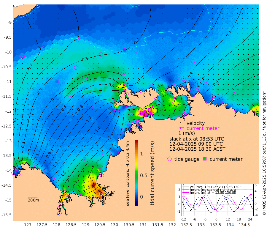166cm/s 78T +4cm/s rms + 6cm/s 51T. Darwin_C1 52m 141cm/s 92T +4cm/s rms + 7cm/s -161T. Darwin_CW1 22m 111cm/s 72T +4cm/s rms + 8cm/s 61T. Darwin_CW2 34m 95cm/s 45T +3cm/s rms + 9cm/s 98T. Darwin_CW3 22m 177cm/s 89T +5cm/s rms + 7cm/s 88T. Darwin_C3 56m 80cm/s 65T +2cm/s rms + 9cm/s -126T. Darwin_CTbW 22m 8cm/s -8T +9cm/s rms + 2cm/s -110T. NWSLYN 196m 28cm/s 76T +1cm/s rms + 1cm/s -47T. DARBGF 30m 6cm/s -57T +7cm/s rms + 2cm/s -137T. ITFTIS 464m 9cm/s -50T +9cm/s rms + 1cm/s 74T. ITFMHB 146m 16cm/s -151T +4cm/s rms + 1cm/s -134T. ITFJBG 61m 12cm/s -82T +6cm/s rms + 4cm/s 121T. ITFFTB 108m 20cm/s 97T +4cm/s rms + 3cm/s 80T. NRSDAR 19m -95cm Carronade Island -103cm Guy Point -90cm Napier Broome Bay 27cm Lesueur Island 135cm Reveley Island 91cm Rocky Island 227cm Cape Domett 197cm Lacrosse Island 227cm Adolphus Island 152cm Pender Point 123cm Wyndham 17cm The Boxers 41cm Unnamed Shoal -55cm Loxton Shoal 252cm Pelican Island -4cm Calder Shoal -36cm Evans Shoal 273cm Quoin Island 256cm Port Keats 255cm Jones Point 207cm Catfish Island 182cm Cape Scott Offshore 201cm Cape Ford 211cm Anson Bay -11cm Goodrich Bank 186cm Peron Island North 179cm Point Jenny 178cm Native Point 203cm Fish Reef 207cm Tapa Bay 85cm Point Fawcett (Offshore) 231cm Burge Point 201cm Munkunuwa 156cm Beagle A 227cm Parsons Bank 220cm Fenton Patches -19cm Lynedoch Bank 217cm Hancox Shoal Area 228cm Nightcliff 257cm Darwin 230cm Charles Point Patches 182cm Glyde Point 131cm Chambers Bay 127cm Point Stuart 148cm Cape Hotham 114cm Christine Reef 134cm West Alligator Head 119cm East Field Island 116cm Two Hills Bay 92cm Newby Shoal 118cm Camp Point 213cm Medina Inlet South 73cm South Barlow Point 36cm St. Asaph Bay -6cm Cape Van Dieman 4cm Snake Bay -4cm Cache Point -83cm Echo Shoal 16cm Point Jahleel (Off) 69cm Cape Don 30cm Port Essington 26cm Smith Point - West 21cm NW Peacock Island 4cm North Of Jones Shoal 4cm Peacock Island 41cm Point David 29cm D'urville Point 18cm Money Shoal 44cm Copeland Island 60cm Cape Cockburn 42cm One Tree Point 45cm Hogmany Shoal 42cm New Year Island - West 45cm Grant Island 67cm Aurari Bay 81cm Cuthbert Point 64cm North Goulburn Island 87cm Paxie Shoal 99cm Entrance Island 112cm Yabooma Island
