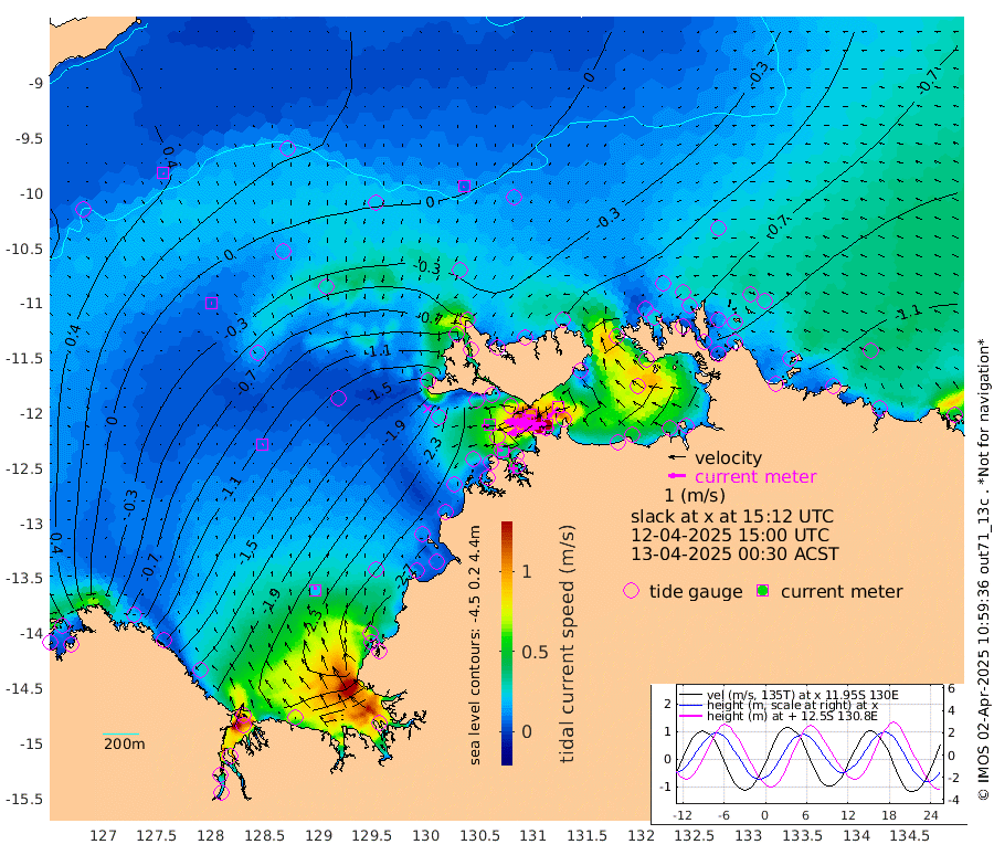 186cm/s -101T +4cm/s rms + 6cm/s 51T. Darwin_C1 52m 166cm/s -91T +4cm/s rms + 7cm/s -161T. Darwin_CW1 22m 116cm/s -106T +4cm/s rms + 8cm/s 61T. Darwin_CW2 34m 85cm/s -135T +3cm/s rms + 9cm/s 98T. Darwin_CW3 22m 183cm/s -91T +5cm/s rms + 7cm/s 88T. Darwin_C3 56m 103cm/s -115T +2cm/s rms + 9cm/s -126T. Darwin_CTbW 22m 7cm/s -172T +9cm/s rms + 2cm/s -110T. NWSLYN 196m 44cm/s -98T +1cm/s rms + 1cm/s -47T. DARBGF 30m 6cm/s 126T +7cm/s rms + 2cm/s -137T. ITFTIS 464m 5cm/s 89T +9cm/s rms + 1cm/s 74T. ITFMHB 146m 21cm/s 5T +4cm/s rms + 1cm/s -134T. ITFJBG 61m 6cm/s 44T +6cm/s rms + 4cm/s 121T. ITFFTB 108m 33cm/s -73T +4cm/s rms + 3cm/s 80T. NRSDAR 19m 69cm Carronade Island 74cm Guy Point 72cm Napier Broome Bay -66cm Lesueur Island -171cm Reveley Island -80cm Rocky Island -255cm Cape Domett -237cm Lacrosse Island -248cm Adolphus Island -148cm Pender Point -123cm Wyndham -46cm The Boxers -69cm Unnamed Shoal 28cm Loxton Shoal -281cm Pelican Island -34cm Calder Shoal 7cm Evans Shoal -297cm Quoin Island -296cm Port Keats -284cm Jones Point -235cm Catfish Island -231cm Cape Scott Offshore -250cm Cape Ford -261cm Anson Bay -16cm Goodrich Bank -238cm Peron Island North -225cm Point Jenny -223cm Native Point -252cm Fish Reef -254cm Tapa Bay -132cm Point Fawcett (Offshore) -278cm Burge Point -243cm Munkunuwa -204cm Beagle A -268cm Parsons Bank -267cm Fenton Patches -4cm Lynedoch Bank -260cm Hancox Shoal Area -282cm Nightcliff -301cm Darwin -276cm Charles Point Patches -211cm Glyde Point -150cm Chambers Bay -143cm Point Stuart -179cm Cape Hotham -135cm Christine Reef -149cm West Alligator Head -128cm East Field Island -139cm Two Hills Bay -139cm Newby Shoal -137cm Camp Point -259cm Medina Inlet South -112cm South Barlow Point -76cm St. Asaph Bay -22cm Cape Van Dieman -33cm Snake Bay -28cm Cache Point 53cm Echo Shoal -46cm Point Jahleel (Off) -96cm Cape Don -55cm Port Essington -55cm Smith Point - West -48cm NW Peacock Island -38cm North Of Jones Shoal -15cm Peacock Island -63cm Point David -56cm D'urville Point -41cm Money Shoal -65cm Copeland Island -94cm Cape Cockburn -67cm One Tree Point -73cm Hogmany Shoal -66cm New Year Island - West -68cm Grant Island -88cm Aurari Bay -95cm Cuthbert Point -86cm North Goulburn Island -101cm Paxie Shoal -110cm Entrance Island -125cm Yabooma Island