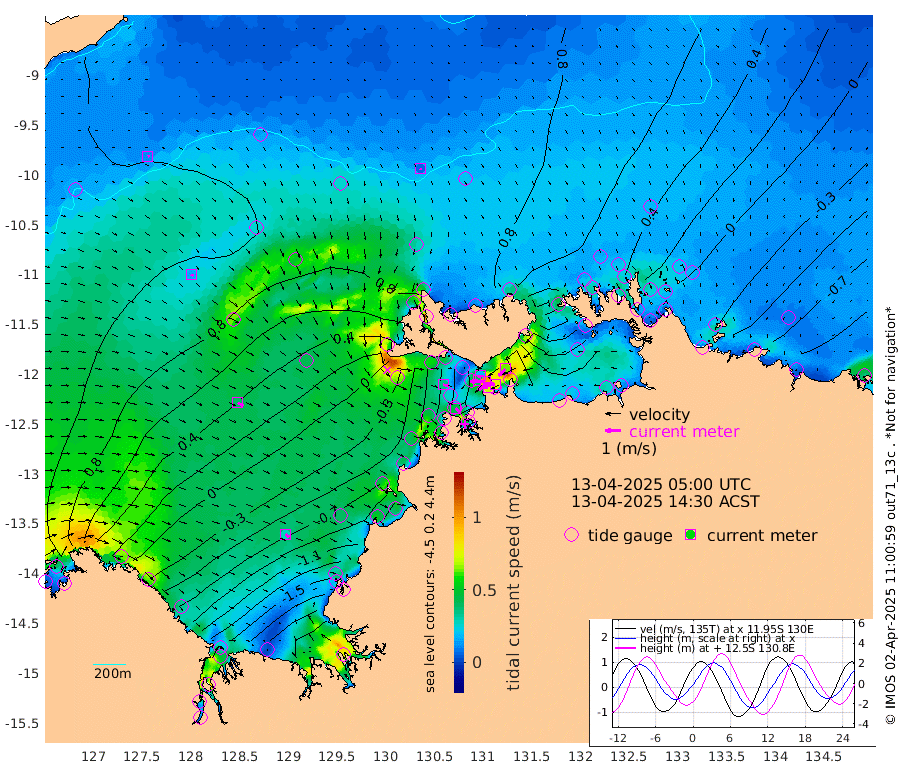 70cm/s -100T +4cm/s rms + 6cm/s 51T. Darwin_C1 52m 77cm/s -92T +4cm/s rms + 7cm/s -161T. Darwin_CW1 22m 41cm/s -105T +4cm/s rms + 8cm/s 61T. Darwin_CW2 34m 63cm/s -137T +3cm/s rms + 9cm/s 98T. Darwin_CW3 22m 98cm/s -91T +5cm/s rms + 7cm/s 88T. Darwin_C3 56m 19cm/s -115T +2cm/s rms + 9cm/s -126T. Darwin_CTbW 22m 8cm/s 152T +9cm/s rms + 2cm/s -110T. NWSLYN 196m 36cm/s 103T +1cm/s rms + 1cm/s -47T. DARBGF 30m 11cm/s 71T +7cm/s rms + 2cm/s -137T. ITFTIS 464m 16cm/s 118T +9cm/s rms + 1cm/s 74T. ITFMHB 146m 29cm/s 121T +4cm/s rms + 1cm/s -134T. ITFJBG 61m 40cm/s 115T +6cm/s rms + 4cm/s 121T. ITFFTB 108m 44cm/s 134T +4cm/s rms + 3cm/s 80T. NRSDAR 19m 71cm Carronade Island 66cm Guy Point 73cm Napier Broome Bay 2cm Lesueur Island -106cm Reveley Island -40cm Rocky Island -189cm Cape Domett -159cm Lacrosse Island -226cm Adolphus Island -235cm Pender Point -234cm Wyndham 70cm The Boxers 67cm Unnamed Shoal 101cm Loxton Shoal -206cm Pelican Island 87cm Calder Shoal 86cm Evans Shoal -315cm Quoin Island -140cm Port Keats -156cm Jones Point -291cm Catfish Island -64cm Cape Scott Offshore -21cm Cape Ford -71cm Anson Bay 83cm Goodrich Bank -52cm Peron Island North -29cm Point Jenny -26cm Native Point -47cm Fish Reef -57cm Tapa Bay 39cm Point Fawcett (Offshore) -68cm Burge Point -51cm Munkunuwa 4cm Beagle A -83cm Parsons Bank -55cm Fenton Patches 78cm Lynedoch Bank -92cm Hancox Shoal Area -77cm Nightcliff -106cm Darwin -75cm Charles Point Patches -104cm Glyde Point -136cm Chambers Bay -151cm Point Stuart -106cm Cape Hotham -111cm Christine Reef -171cm West Alligator Head -184cm East Field Island -104cm Two Hills Bay 54cm Newby Shoal -95cm Camp Point -57cm Medina Inlet South 52cm South Barlow Point 69cm St. Asaph Bay 85cm Cape Van Dieman 81cm Snake Bay 78cm Cache Point 105cm Echo Shoal 52cm Point Jahleel (Off) -4cm Cape Don 39cm Port Essington 45cm Smith Point - West 43cm NW Peacock Island 59cm North Of Jones Shoal 19cm Peacock Island 8cm Point David 41cm D'urville Point 41cm Money Shoal 2cm Copeland Island 7cm Cape Cockburn 13cm One Tree Point -7cm Hogmany Shoal 15cm New Year Island - West 7cm Grant Island -21cm Aurari Bay -48cm Cuthbert Point -17cm North Goulburn Island -69cm Paxie Shoal -90cm Entrance Island -132cm Yabooma Island