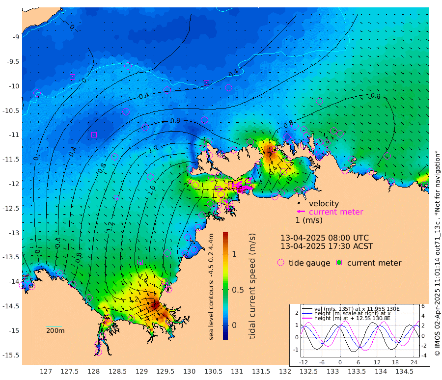 155cm/s 77T +4cm/s rms + 6cm/s 51T. Darwin_C1 52m 125cm/s 88T +4cm/s rms + 7cm/s -161T. Darwin_CW1 22m 96cm/s 75T +4cm/s rms + 8cm/s 61T. Darwin_CW2 34m 68cm/s 48T +3cm/s rms + 9cm/s 98T. Darwin_CW3 22m 133cm/s 88T +5cm/s rms + 7cm/s 88T. Darwin_C3 56m 90cm/s 64T +2cm/s rms + 9cm/s -126T. Darwin_CTbW 22m 3cm/s 56T +9cm/s rms + 2cm/s -110T. NWSLYN 196m 66cm/s 88T +1cm/s rms + 1cm/s -47T. DARBGF 30m 6cm/s 16T +7cm/s rms + 2cm/s -137T. ITFTIS 464m 4cm/s 133T +9cm/s rms + 1cm/s 74T. ITFMHB 146m 37cm/s 162T +4cm/s rms + 1cm/s -134T. ITFJBG 61m 24cm/s 134T +6cm/s rms + 4cm/s 121T. ITFFTB 108m 66cm/s 116T +4cm/s rms + 3cm/s 80T. NRSDAR 19m -89cm Carronade Island -99cm Guy Point -86cm Napier Broome Bay 12cm Lesueur Island 72cm Reveley Island 48cm Rocky Island 107cm Cape Domett 98cm Lacrosse Island 72cm Adolphus Island -40cm Pender Point -81cm Wyndham 65cm The Boxers 96cm Unnamed Shoal 5cm Loxton Shoal 136cm Pelican Island 60cm Calder Shoal 22cm Evans Shoal 61cm Quoin Island 193cm Port Keats 180cm Jones Point -10cm Catfish Island 178cm Cape Scott Offshore 218cm Cape Ford 212cm Anson Bay 52cm Goodrich Bank 190cm Peron Island North 198cm Point Jenny 200cm Native Point 210cm Fish Reef 214cm Tapa Bay 138cm Point Fawcett (Offshore) 225cm Burge Point 213cm Munkunuwa 189cm Beagle A 216cm Parsons Bank 221cm Fenton Patches 35cm Lynedoch Bank 199cm Hancox Shoal Area 224cm Nightcliff 232cm Darwin 224cm Charles Point Patches 131cm Glyde Point 39cm Chambers Bay 15cm Point Stuart 87cm Cape Hotham 36cm Christine Reef 4cm West Alligator Head -32cm East Field Island 46cm Two Hills Bay 140cm Newby Shoal 55cm Camp Point 218cm Medina Inlet South 134cm South Barlow Point 102cm St. Asaph Bay 60cm Cape Van Dieman 70cm Snake Bay 55cm Cache Point -26cm Echo Shoal 59cm Point Jahleel (Off) 78cm Cape Don 67cm Port Essington 68cm Smith Point - West 62cm NW Peacock Island 55cm North Of Jones Shoal 21cm Peacock Island 63cm Point David 70cm D'urville Point 55cm Money Shoal 61cm Copeland Island 82cm Cape Cockburn 65cm One Tree Point 55cm Hogmany Shoal 65cm New Year Island - West 64cm Grant Island 69cm Aurari Bay 61cm Cuthbert Point 67cm North Goulburn Island 55cm Paxie Shoal 52cm Entrance Island 38cm Yabooma Island